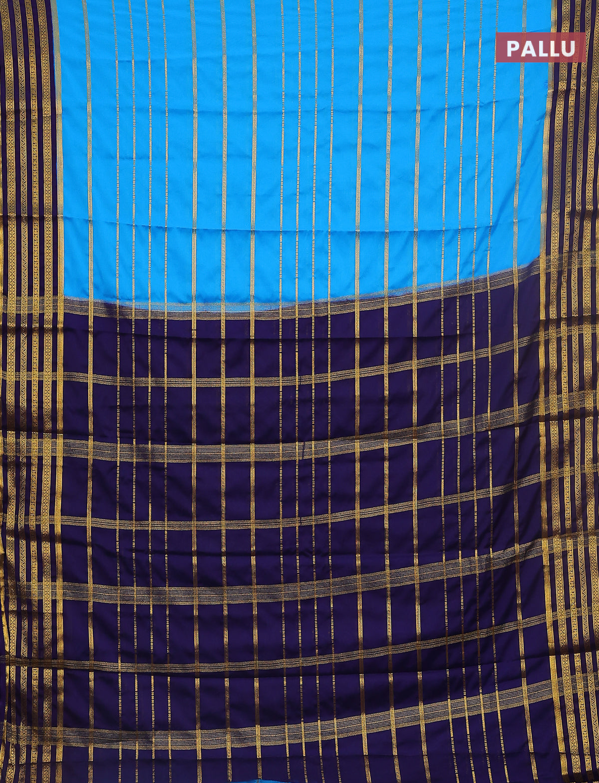 Semi mysore silk saree light blue and navy blue with allover zari stripes pattern and zari woven border