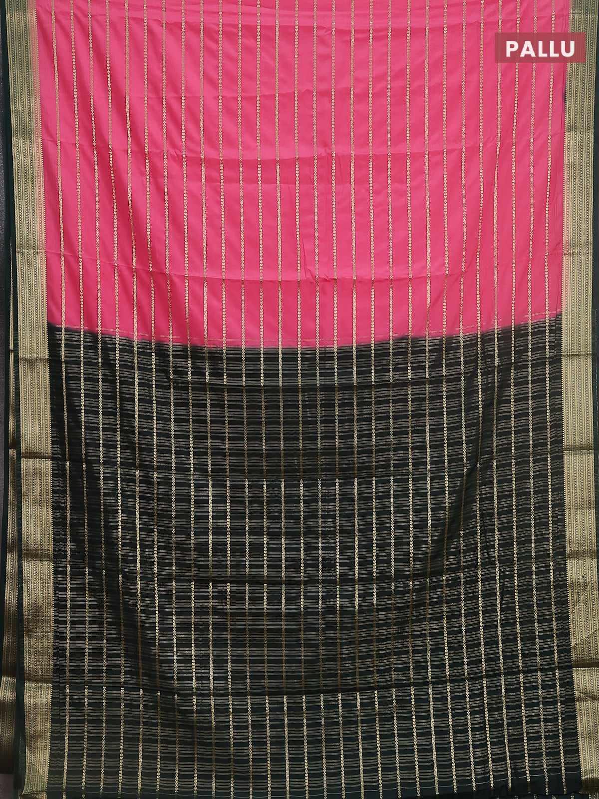 Semi mysore silk saree light pink and dark green with allover veldhari weaves and zari woven border