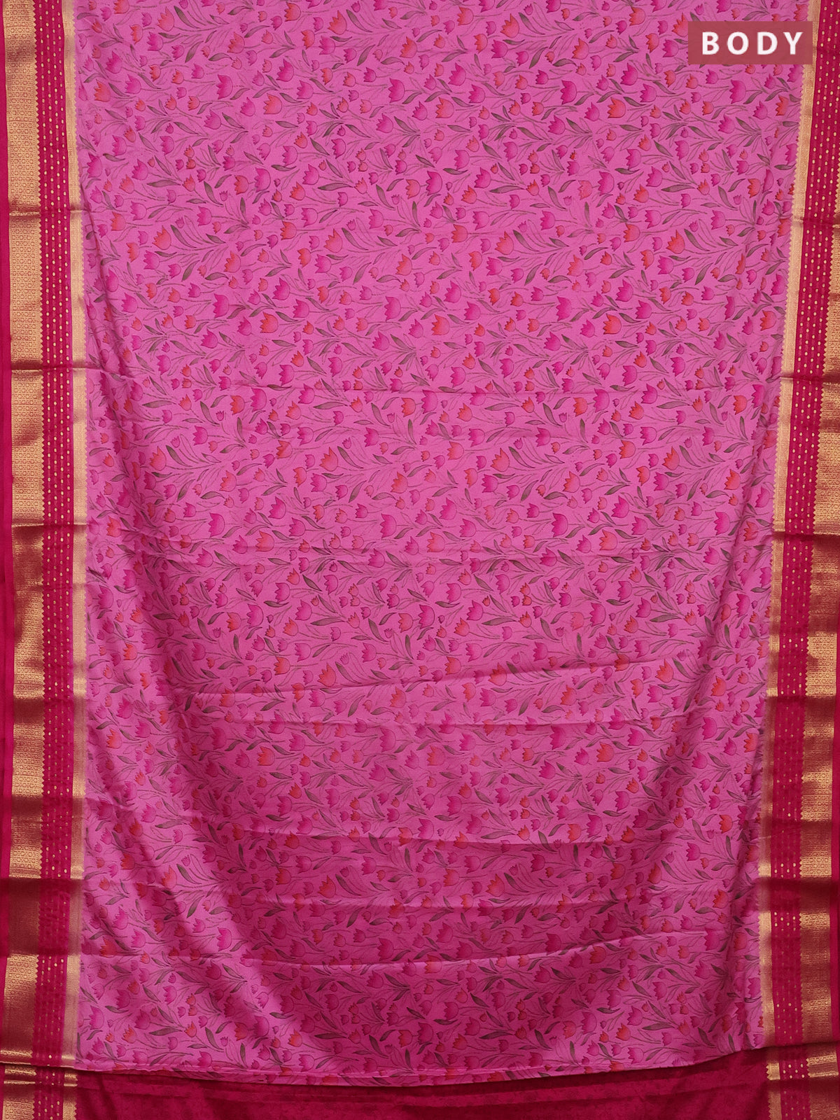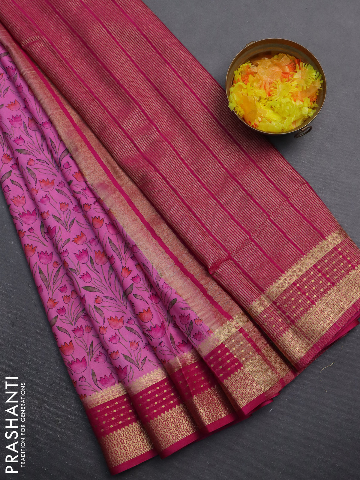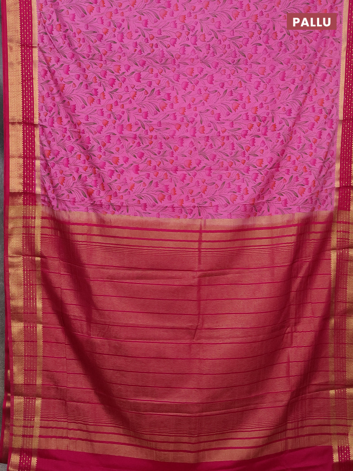 Semi mysore silk saree light pink and pink with floral prints and zari woven border