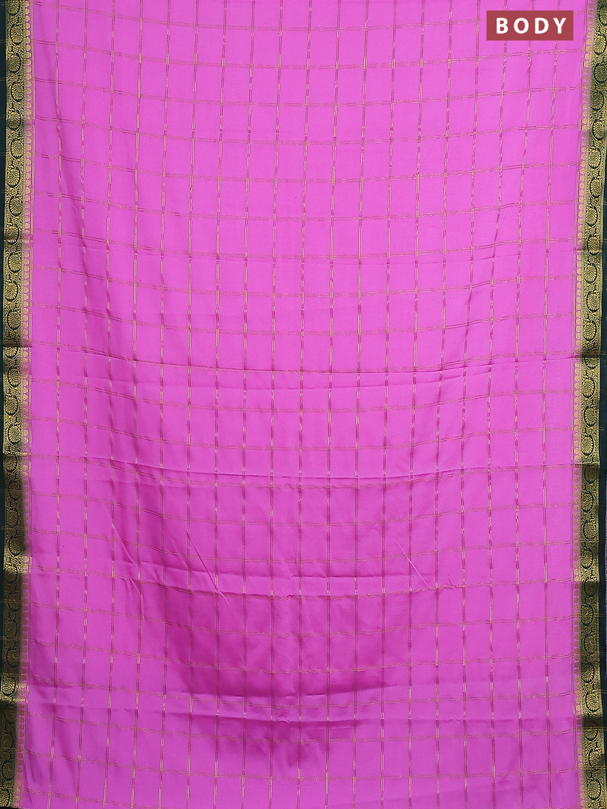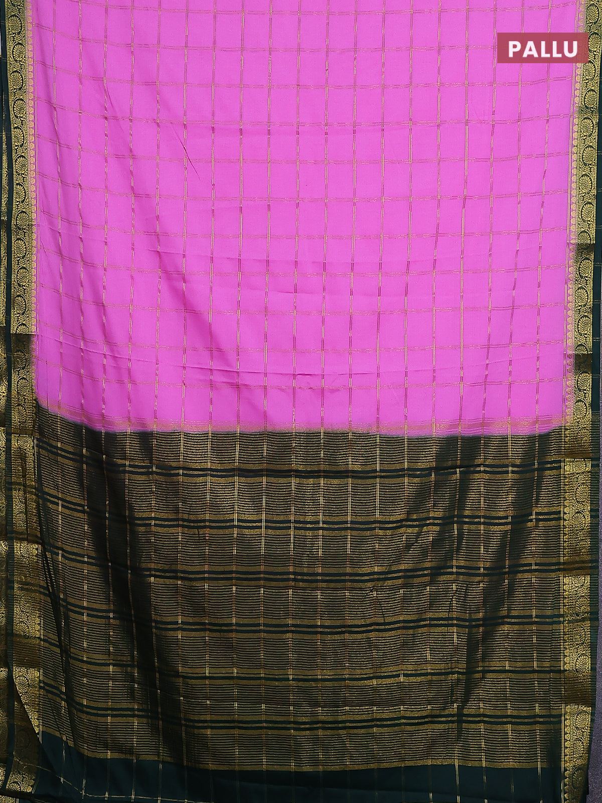 Semi mysore silk saree lotus pink and bottle green with allover zari checked pattern and zari woven border