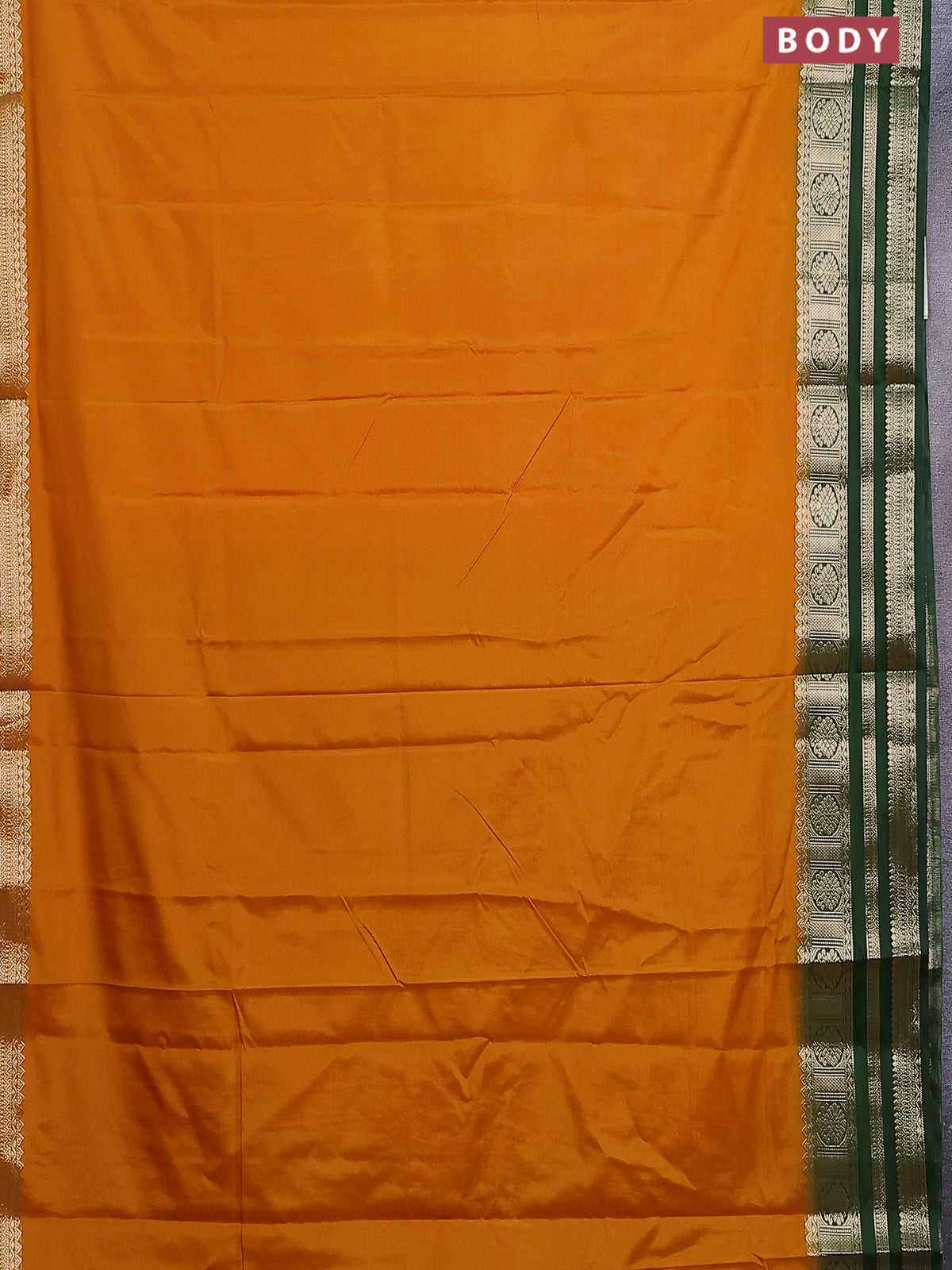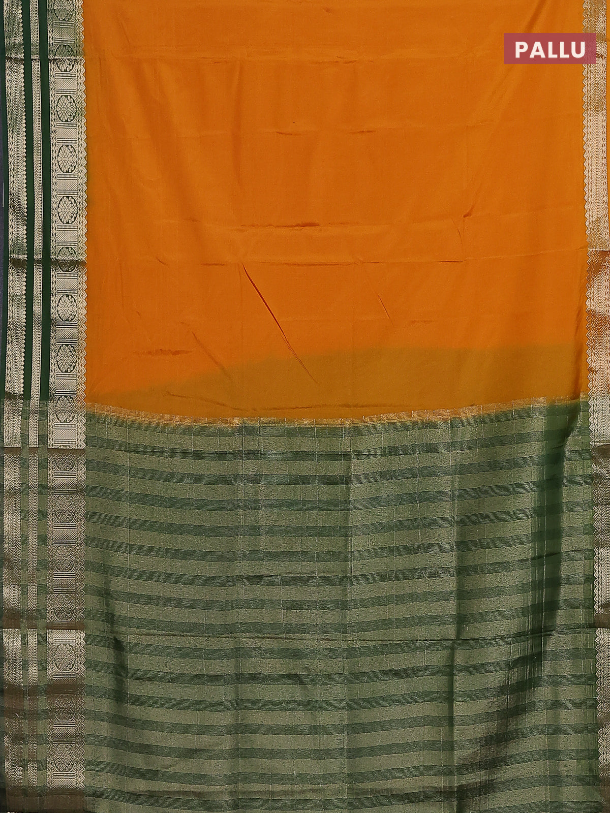 Semi mysore silk saree mustard yellow and sap green with plain body and zari woven border
