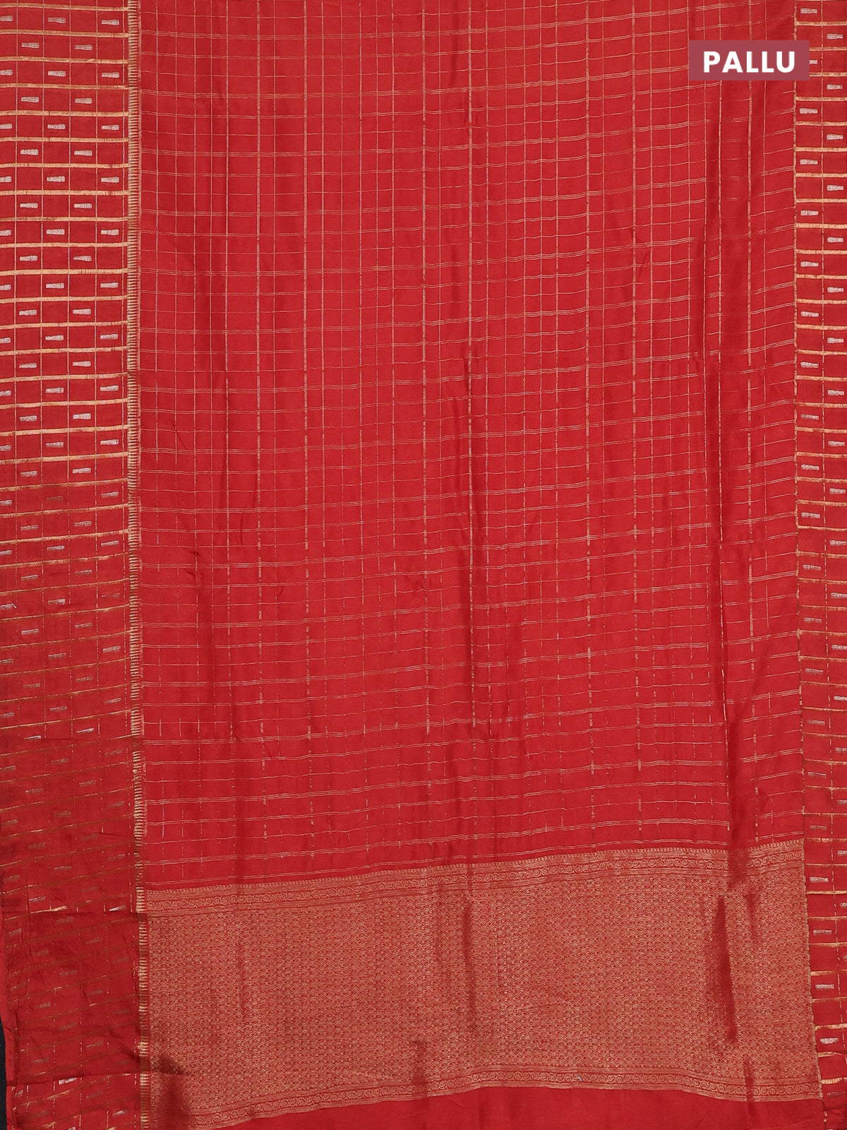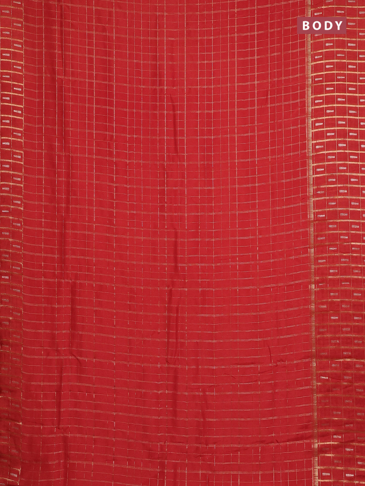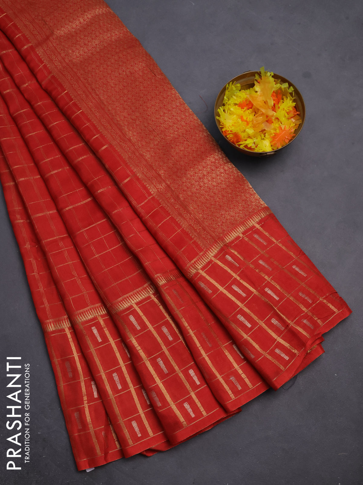 Semi mysore silk saree orange with allover zari checked pattern and zari woven butta border