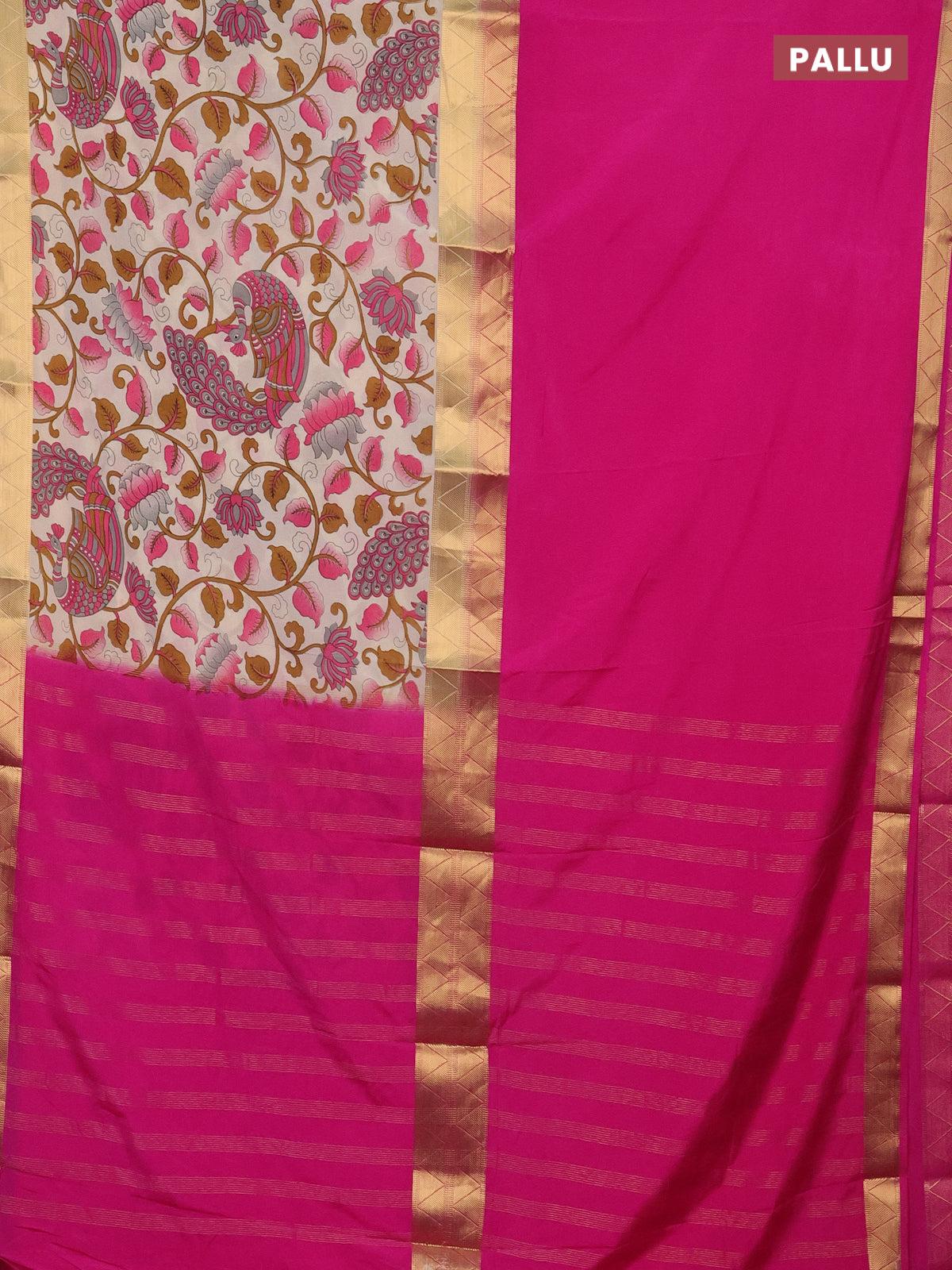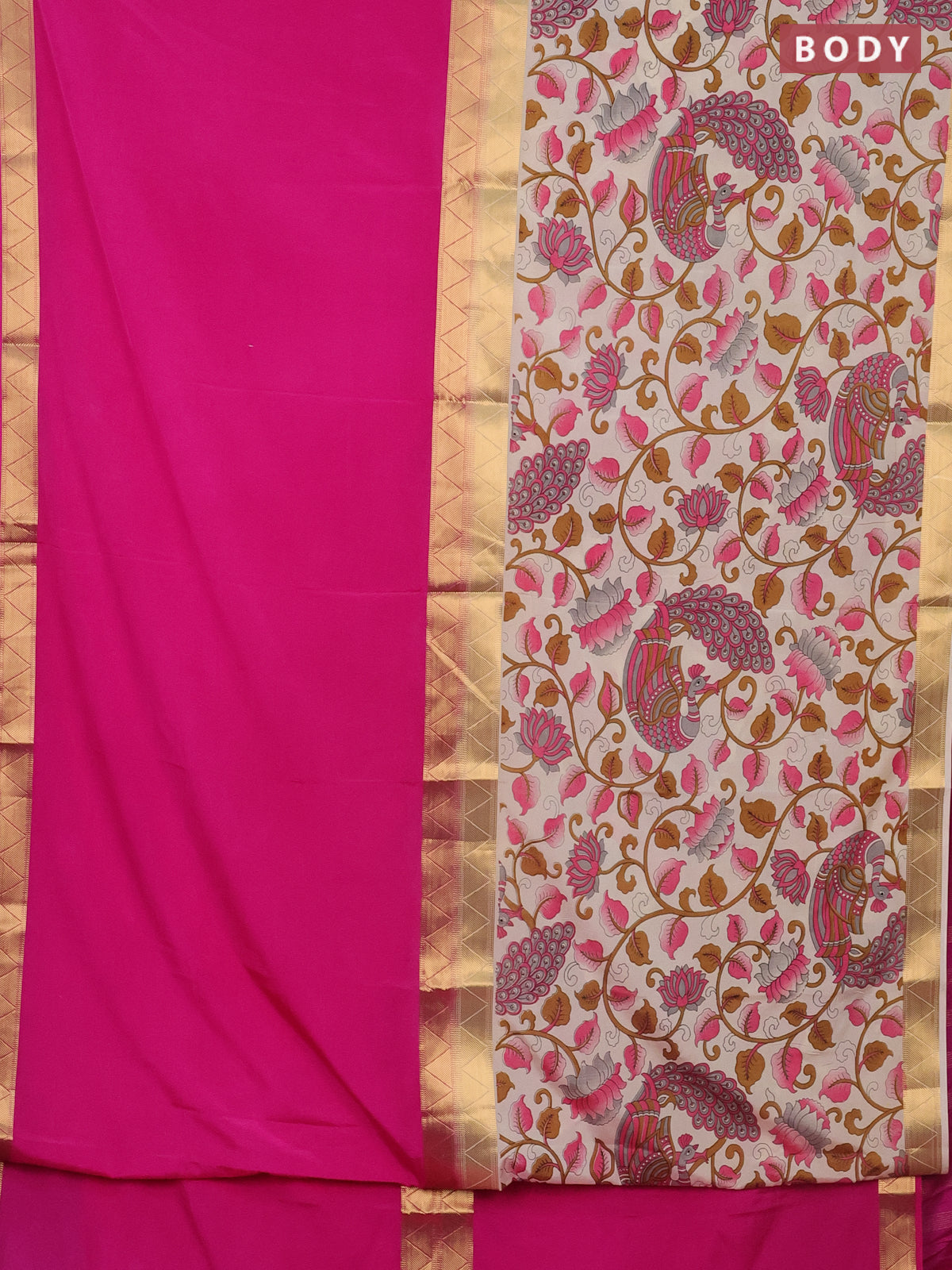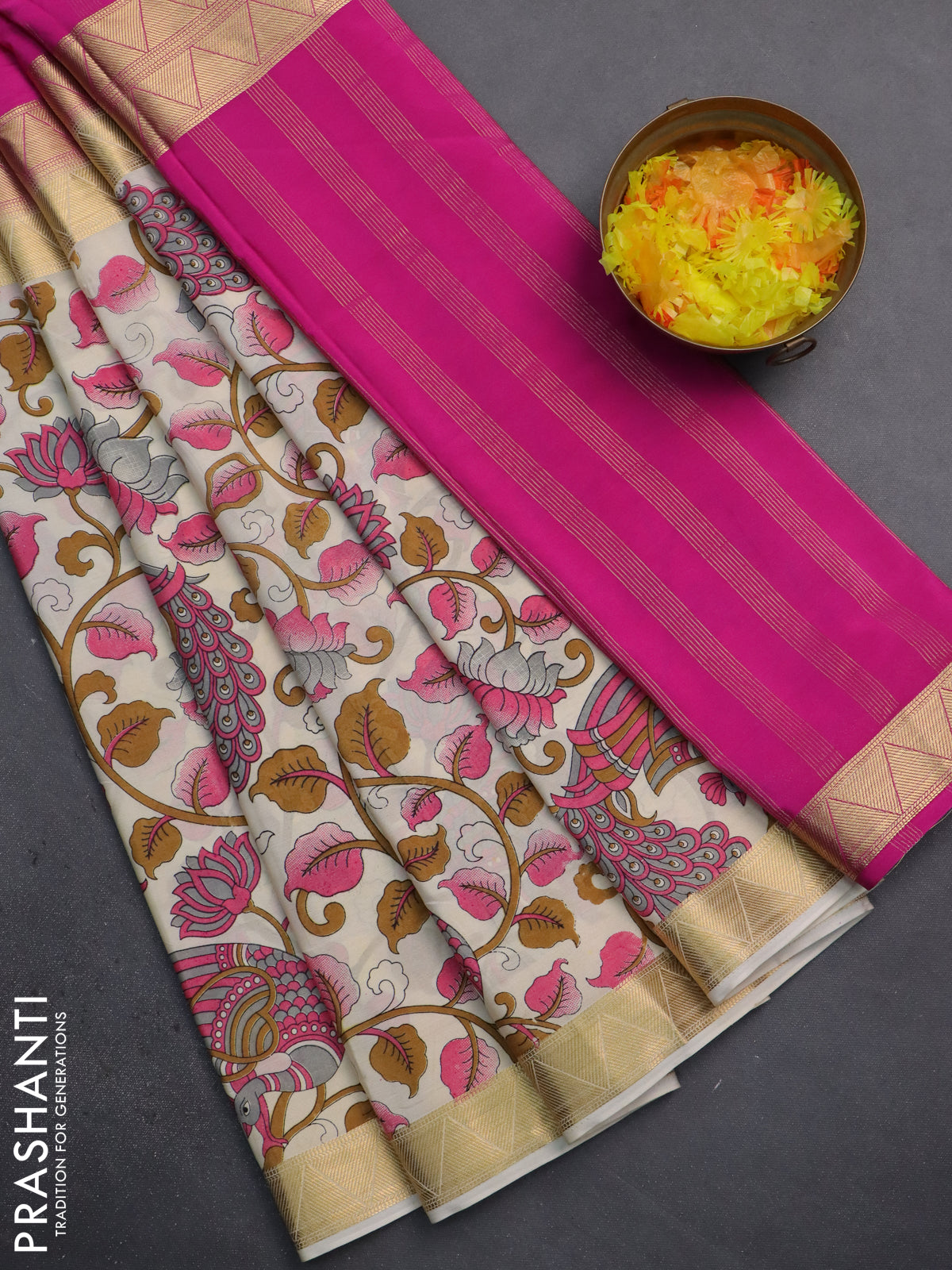 Semi mysore silk saree pink and cream with half & half style and long kalamkari printed border