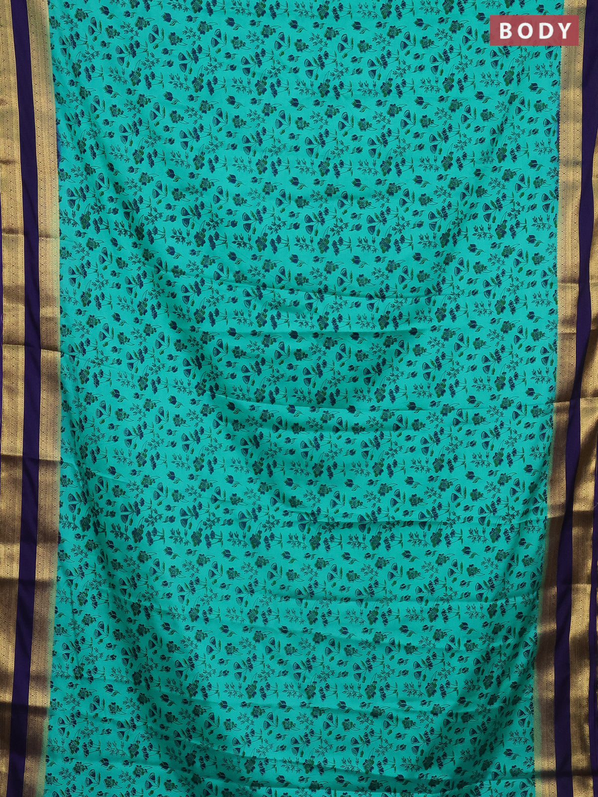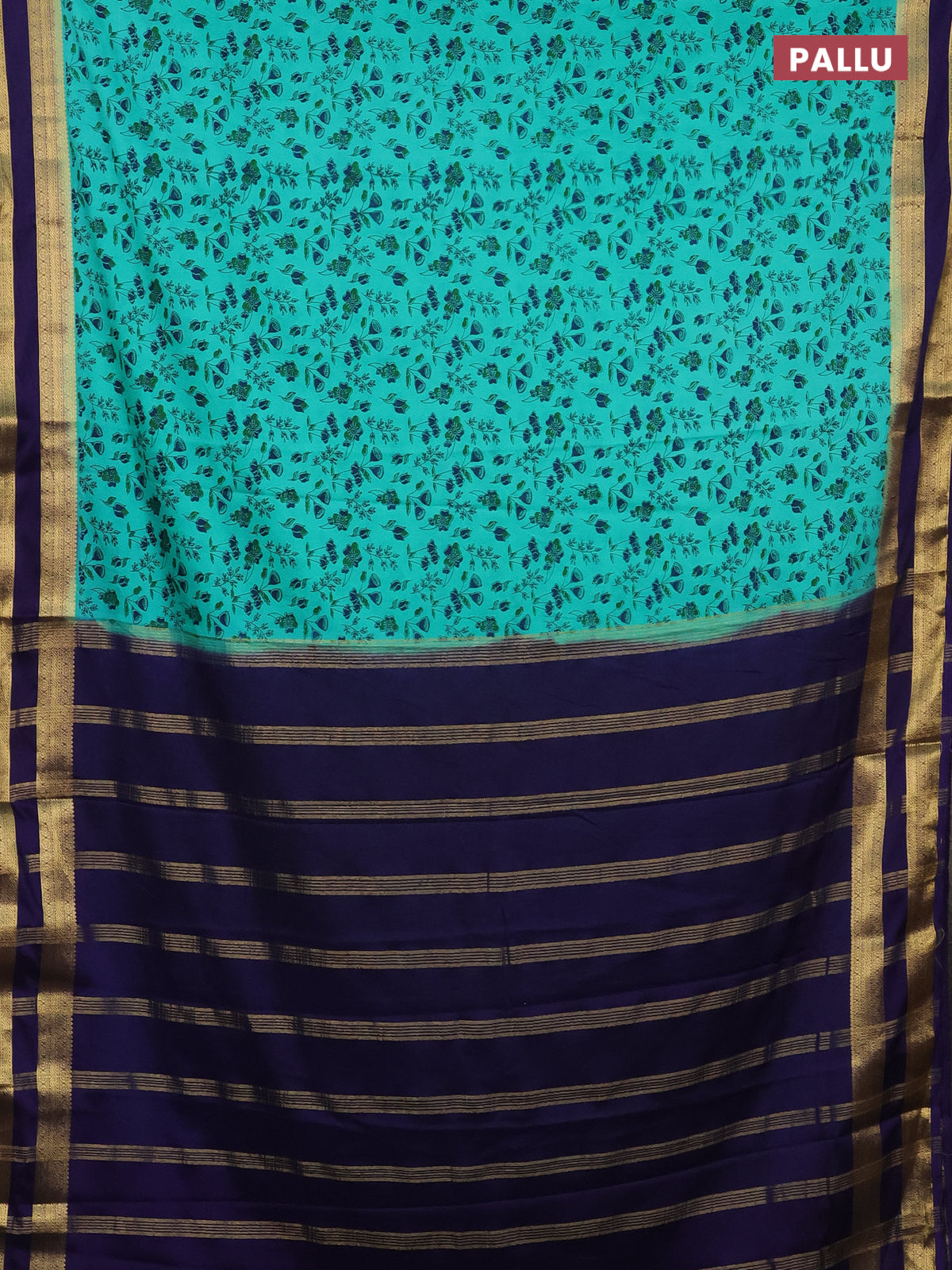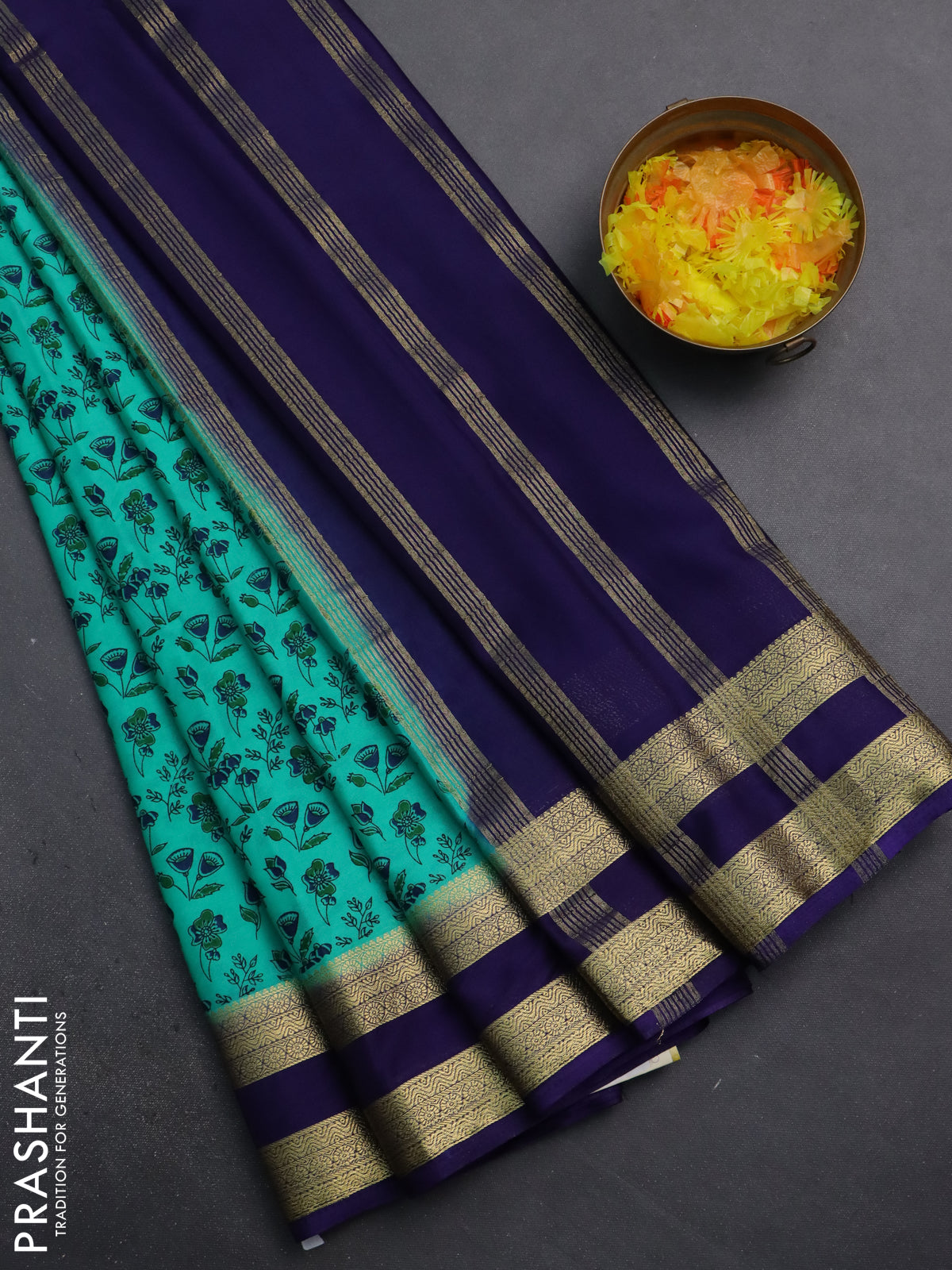Semi mysore silk saree teal green and navy blue with allover prints and rettapet zari woven border