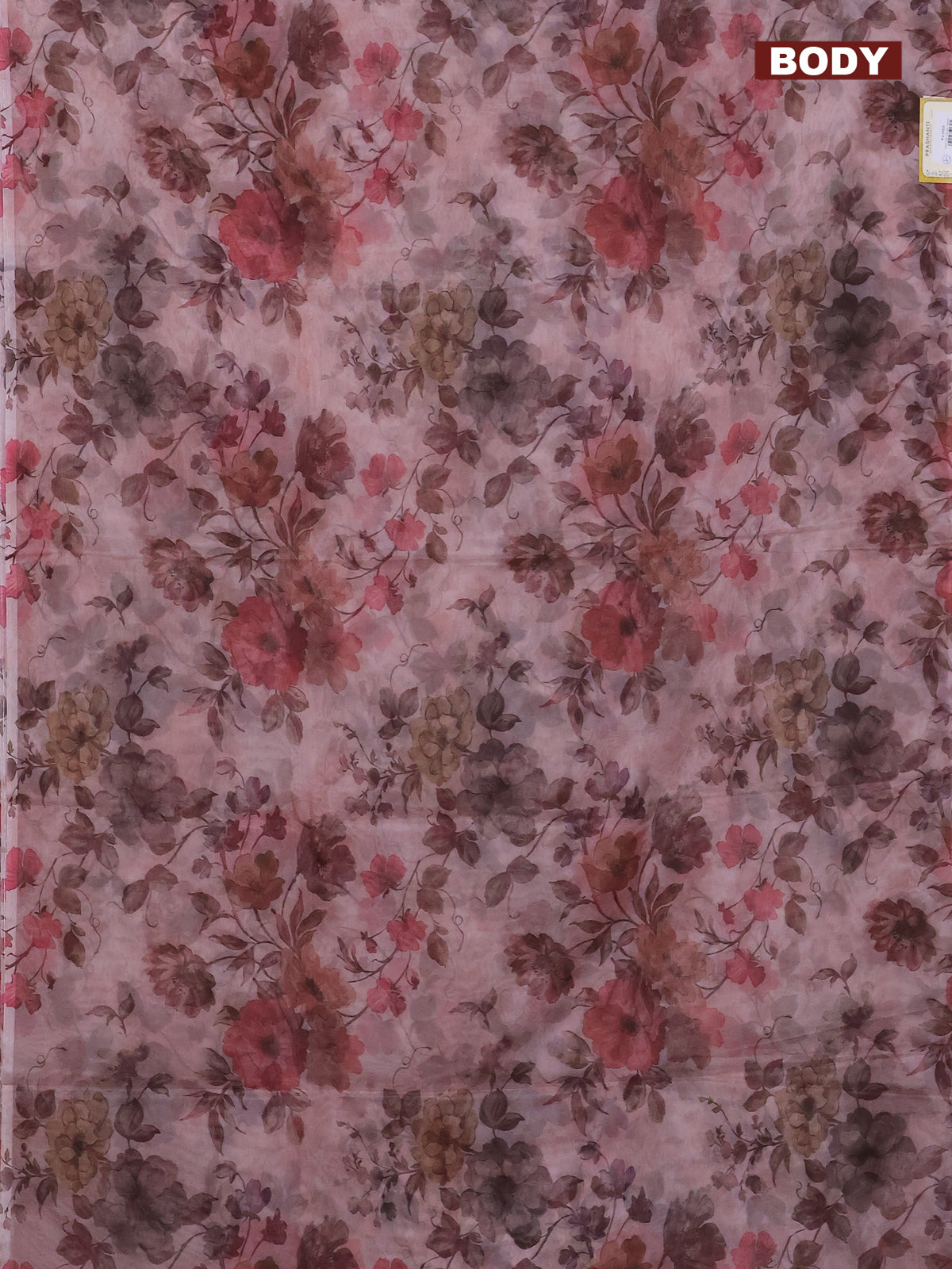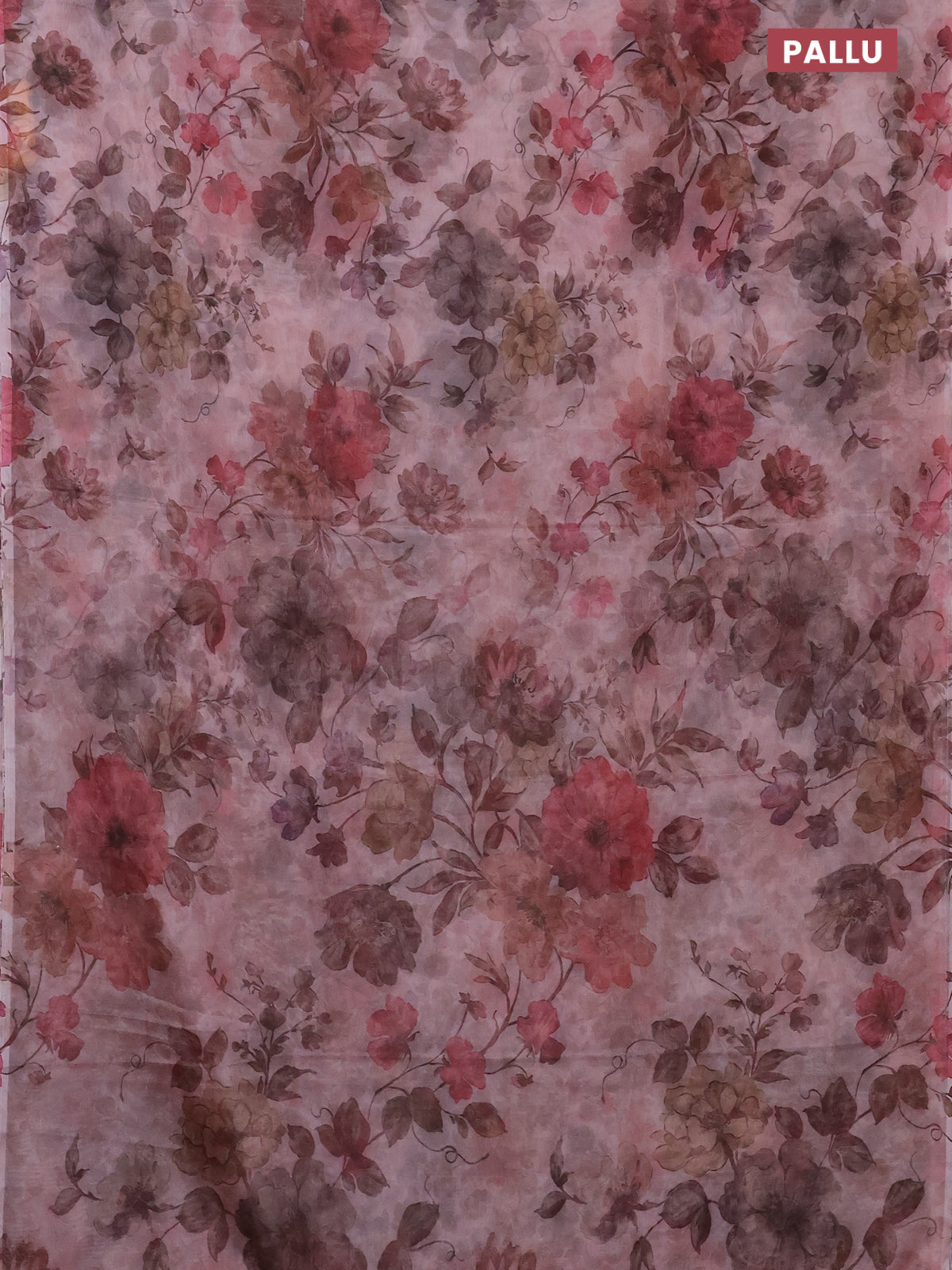Semi organza saree pastel peach with allover floral prints in borderless style