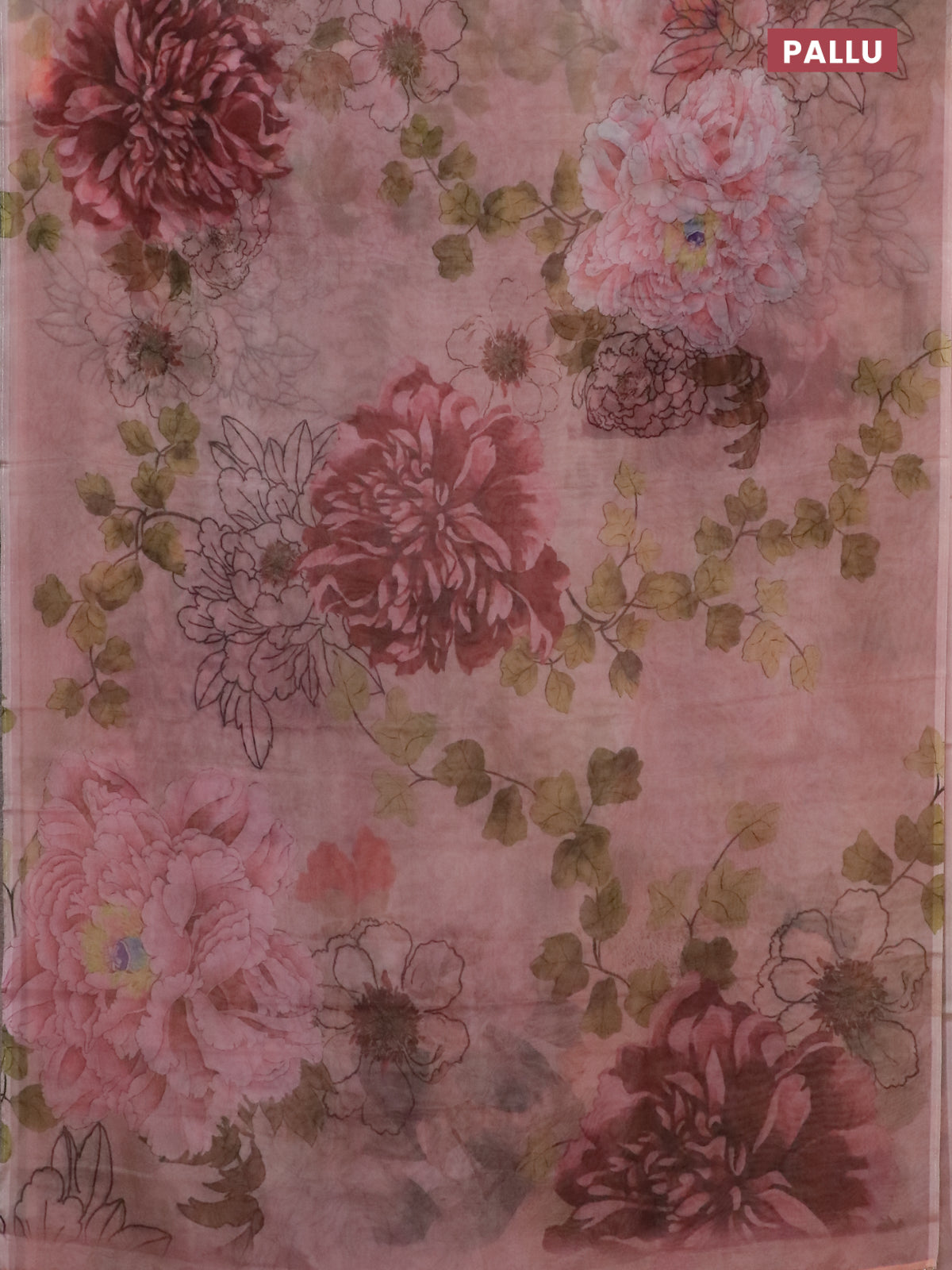 Semi organza saree pastel peach with allover floral prints in borderless style