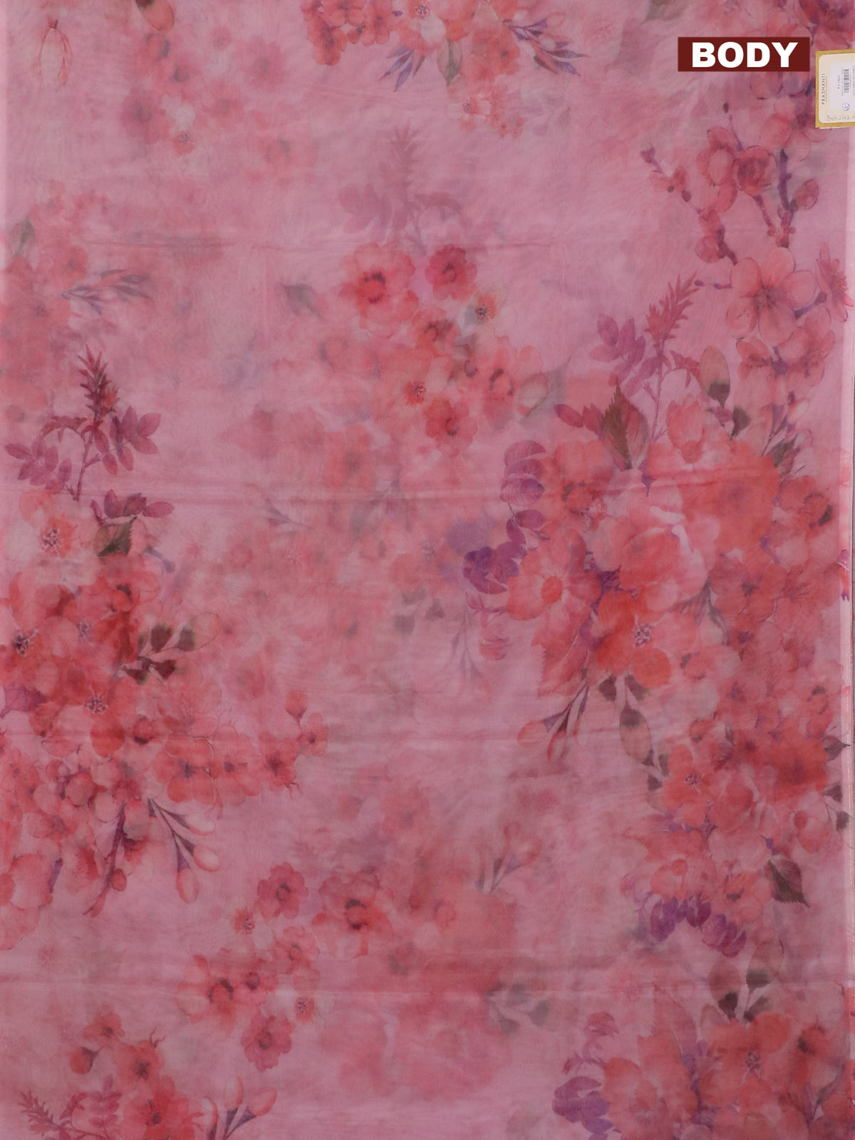 Semi organza saree peach pink with allover floral prints in borderless style