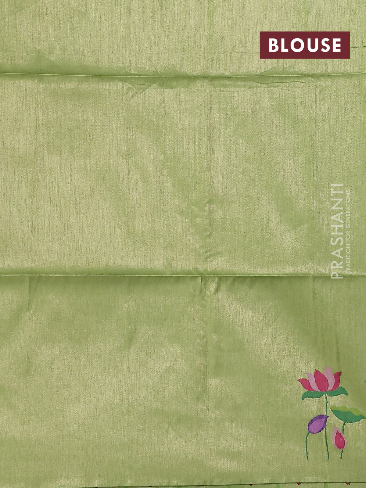 Semi paithani saree light green with zari woven buttas and pichwai design paithani weaving pallu