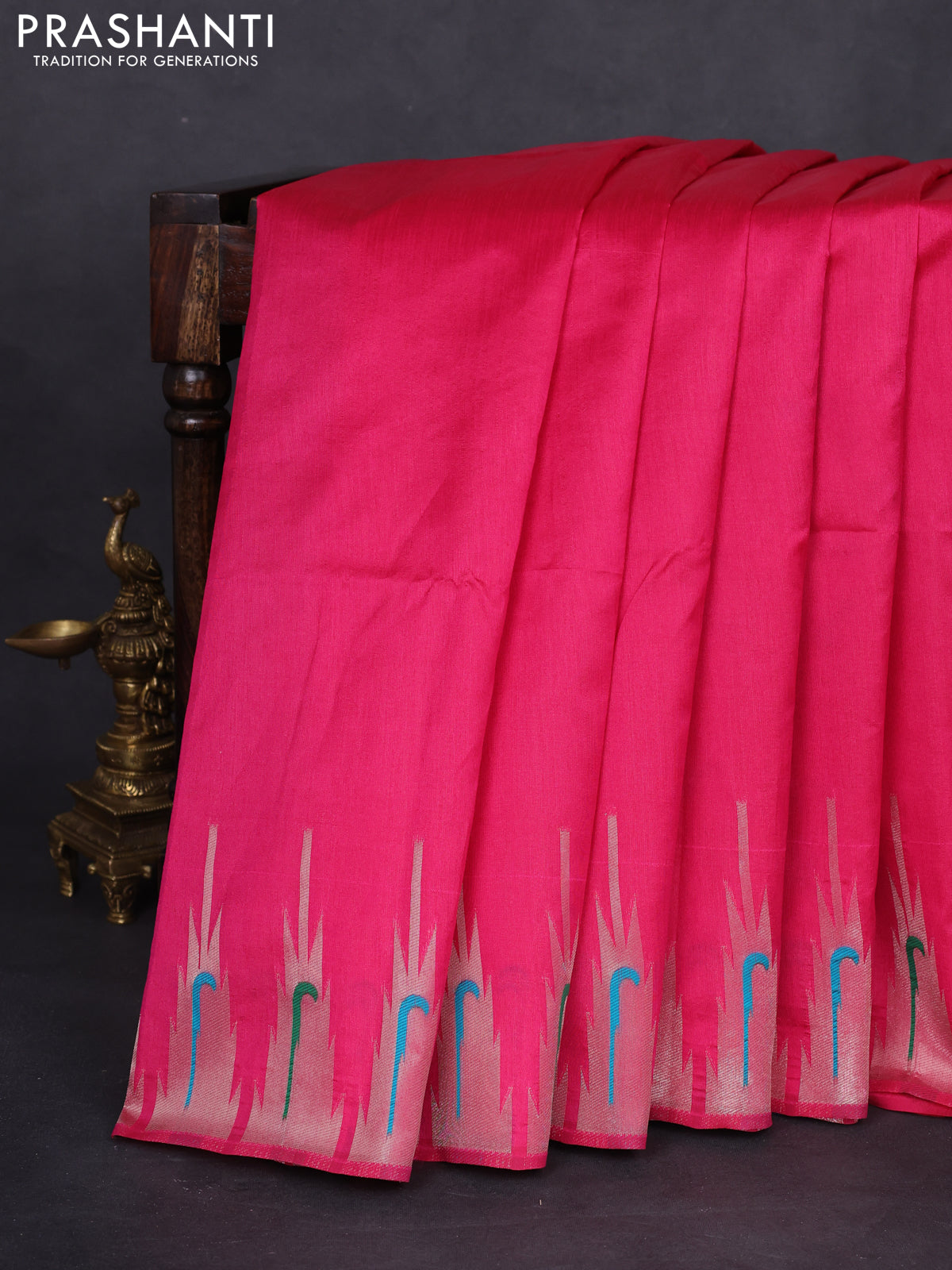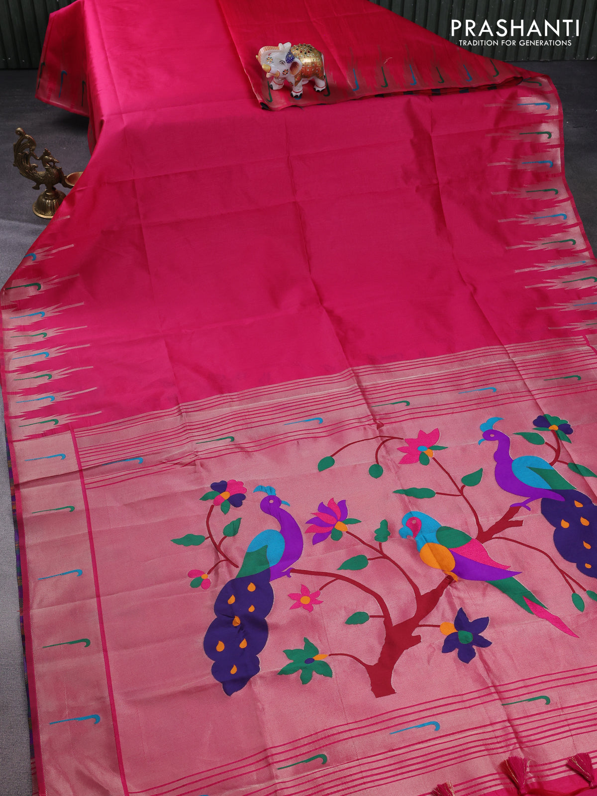 Semi paithani saree pink with plain body and peacock design paithani pallu