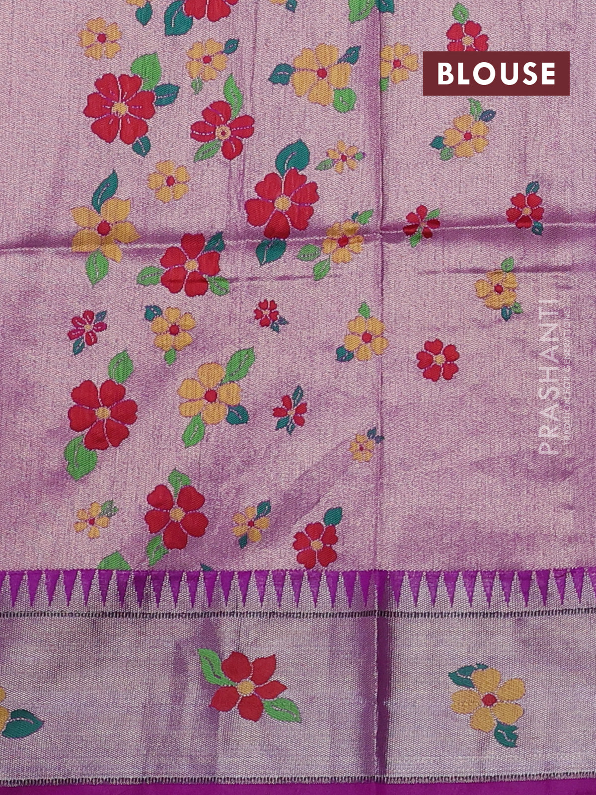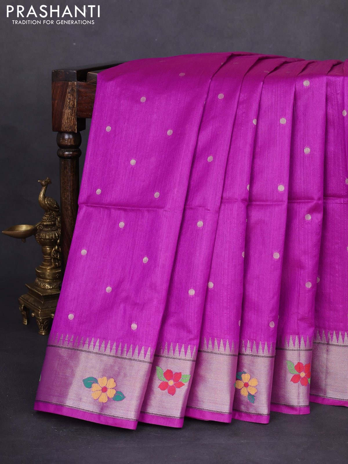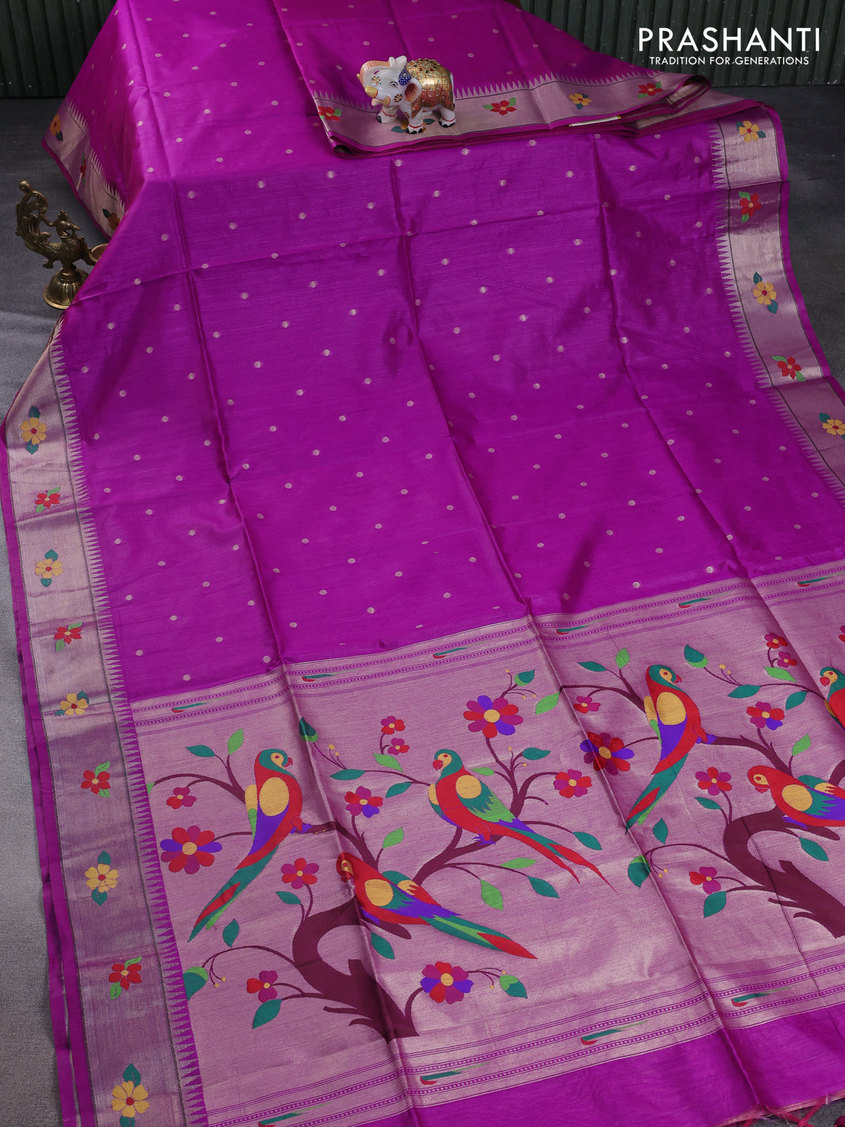 Semi paithani saree purple with allover zari woven buttas and parrot design paithani pallu