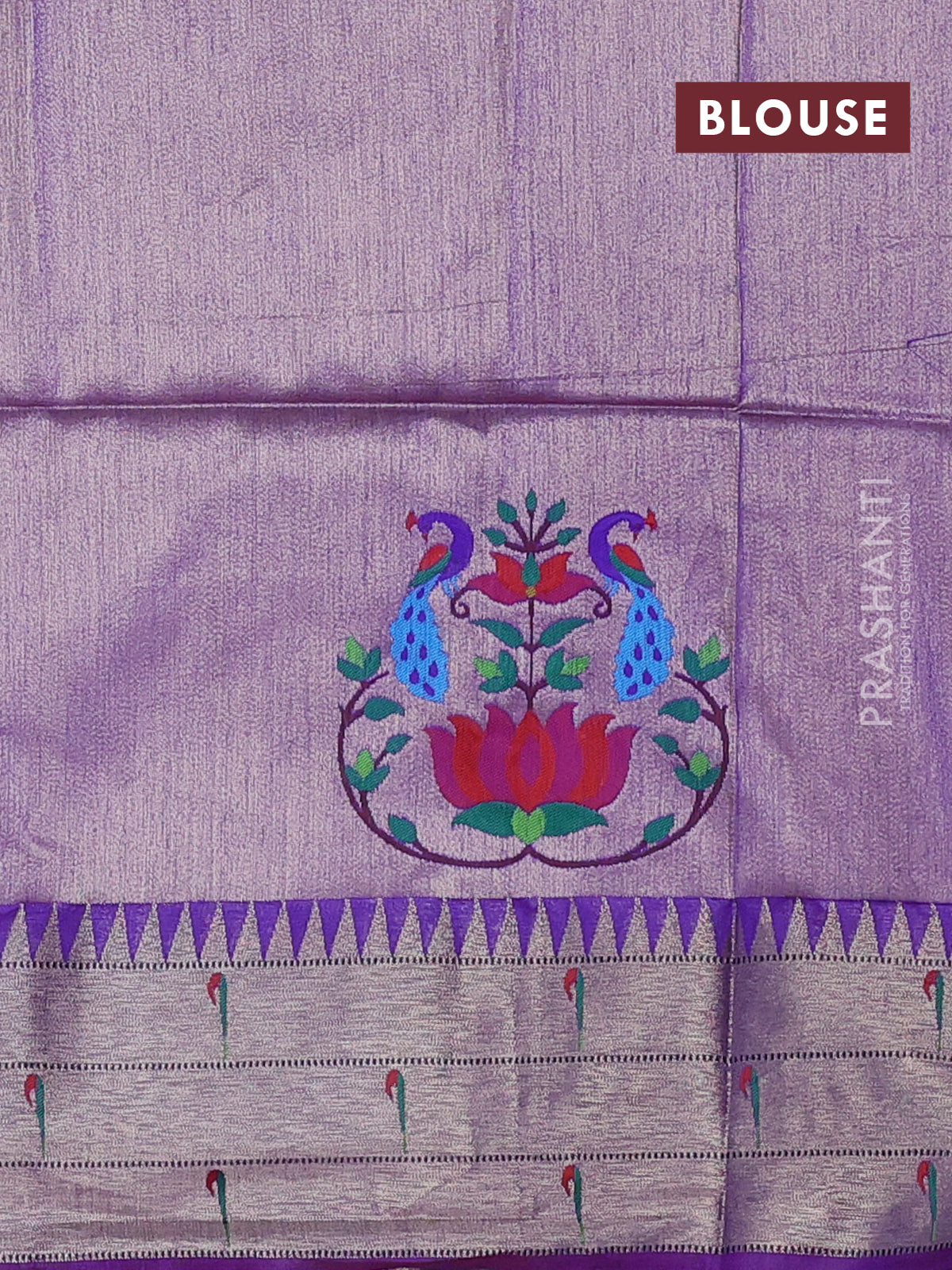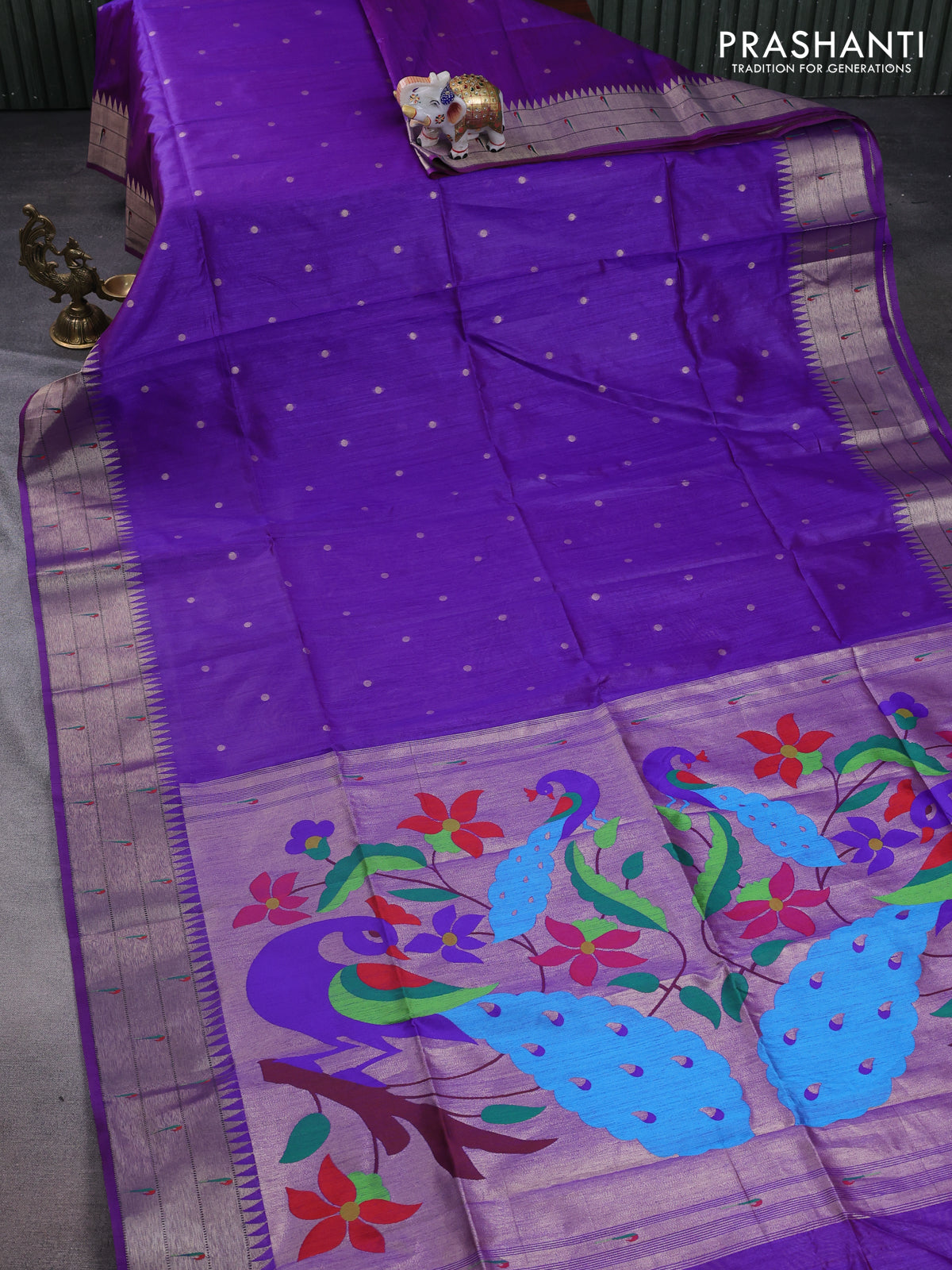 Semi paithani saree purple with allover zari woven buttas and peacock design paithani pallu