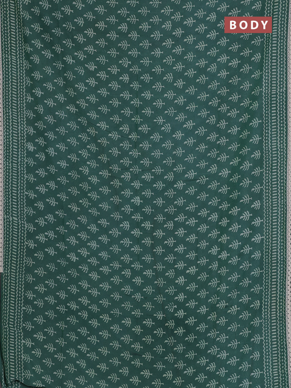 Semi pashmina silk saree green and cream with allover butta prints and crocia lace work border