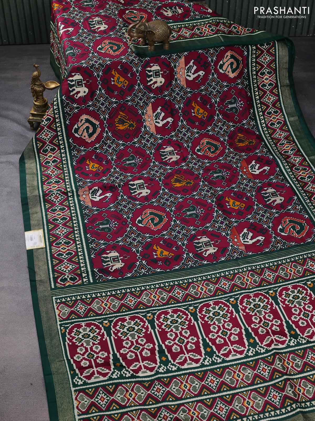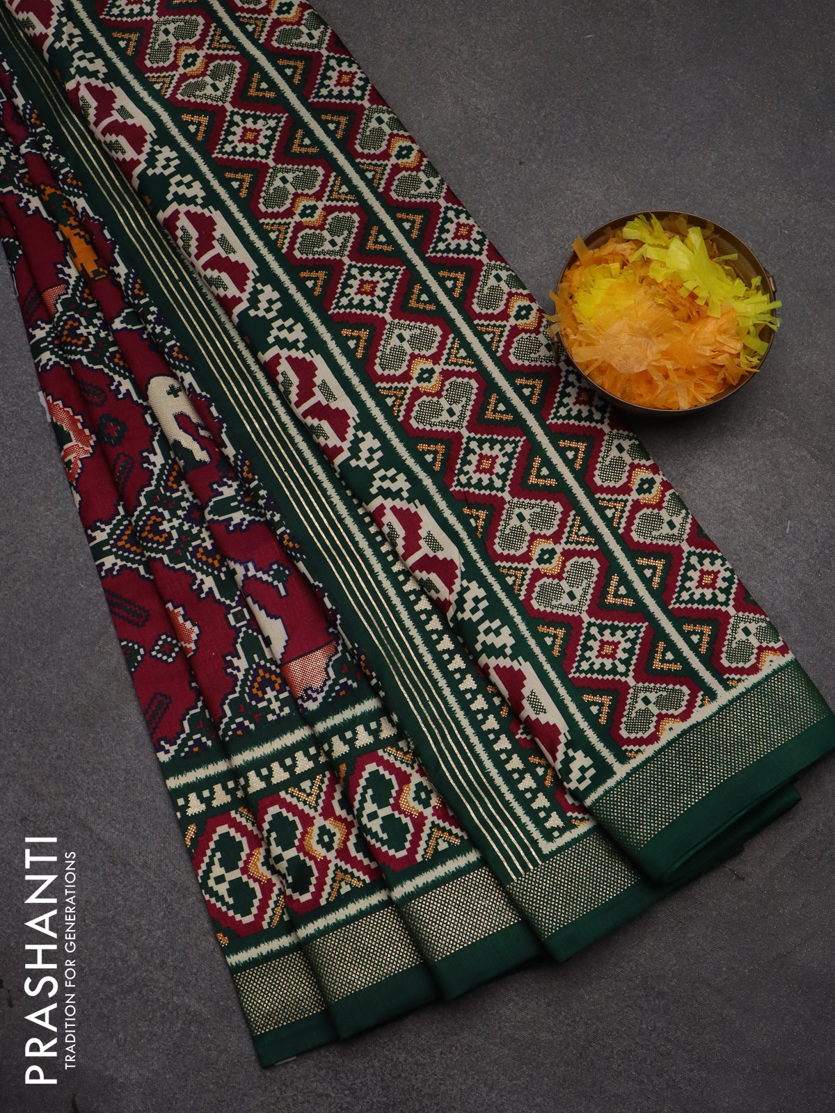 Semi pochampally saree wine shade and dark green with allover patola prints and zari woven border