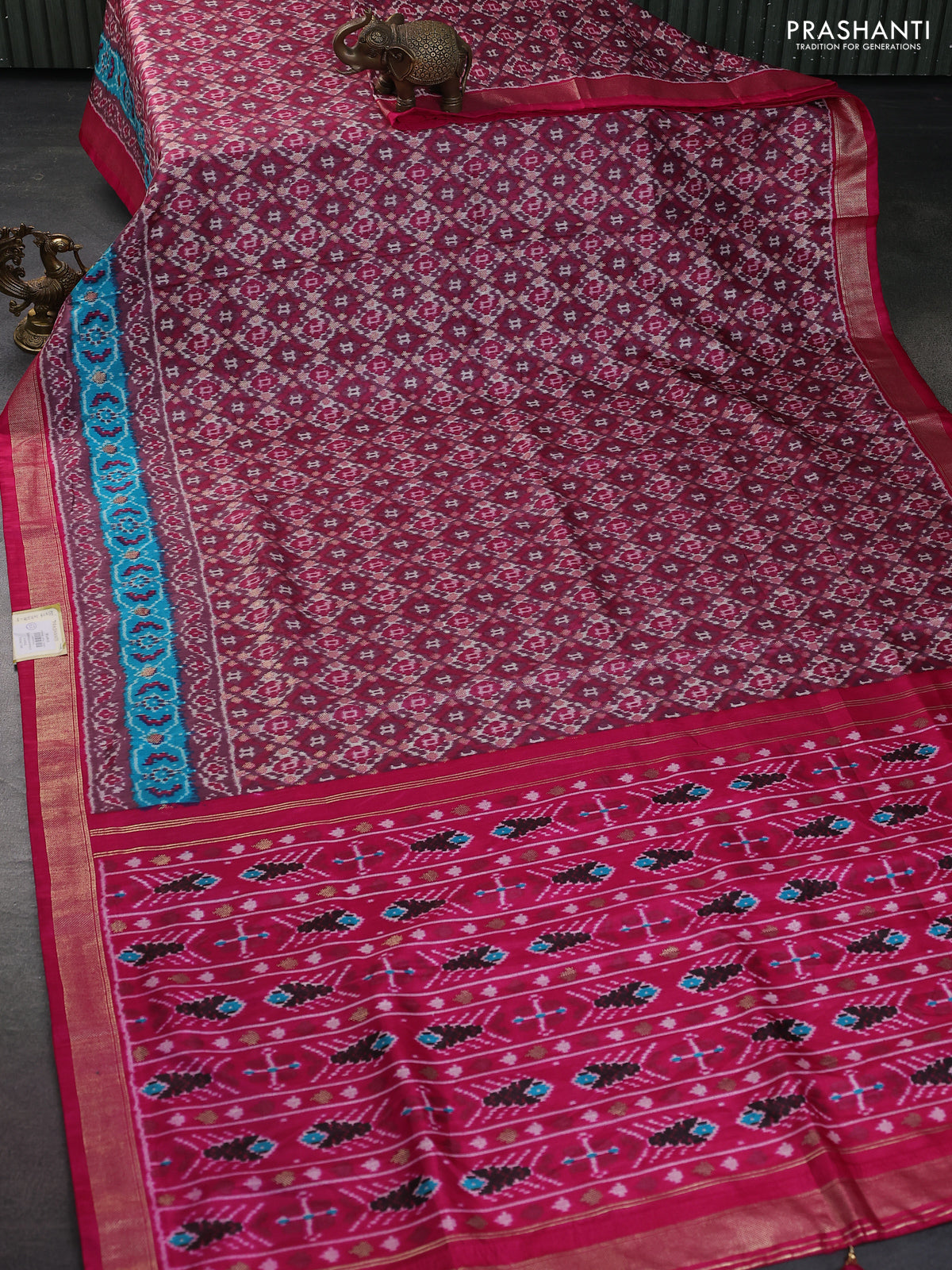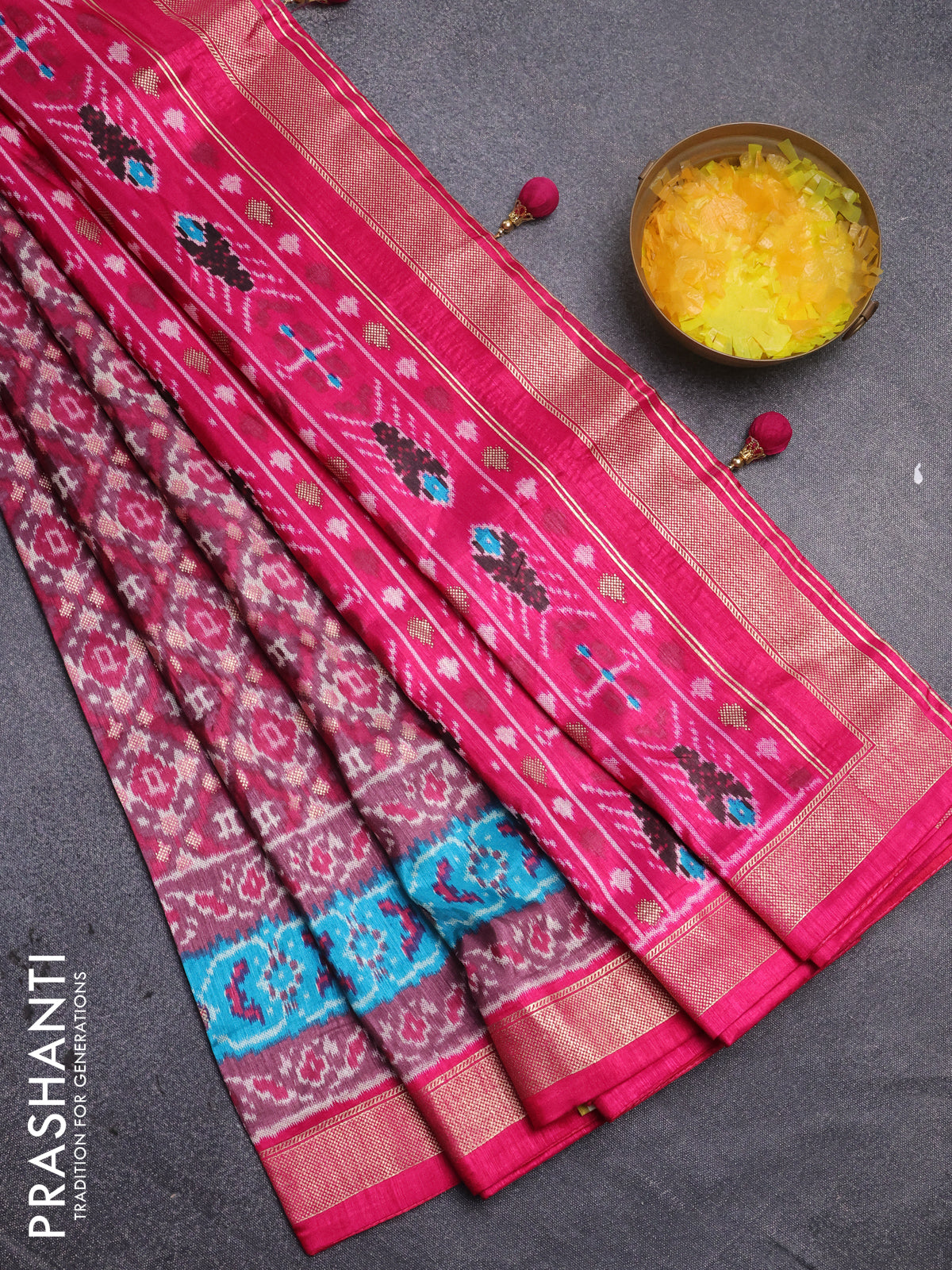 Semi pochampally silk saree mauve pink and pink with allover ikat weaves and zari woven border