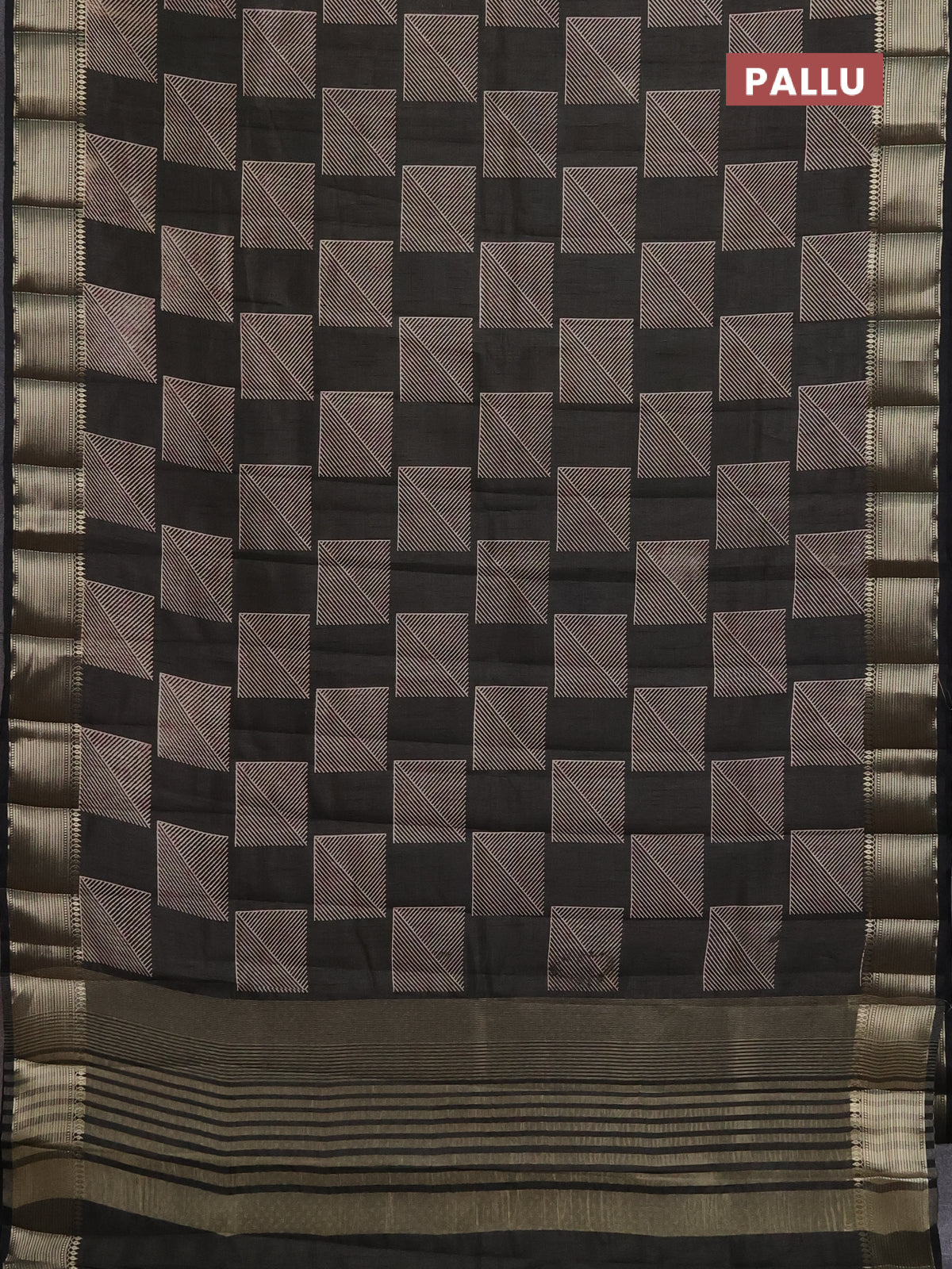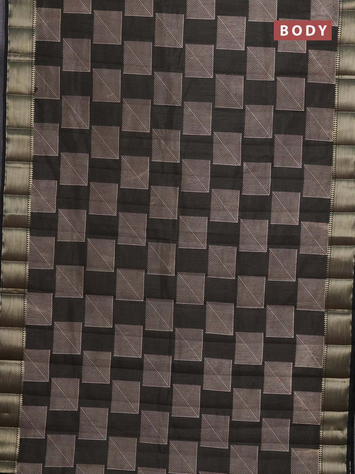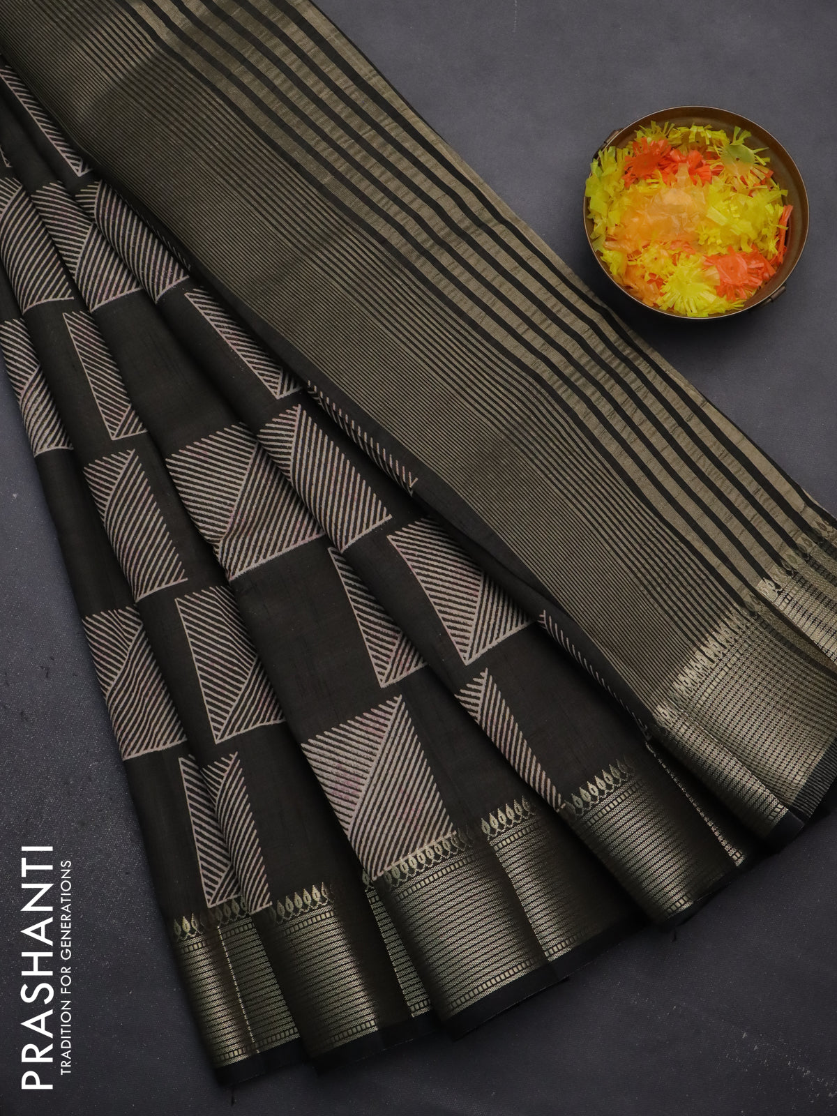 Semi raw silk saree black with geometric butta prints and zari woven border