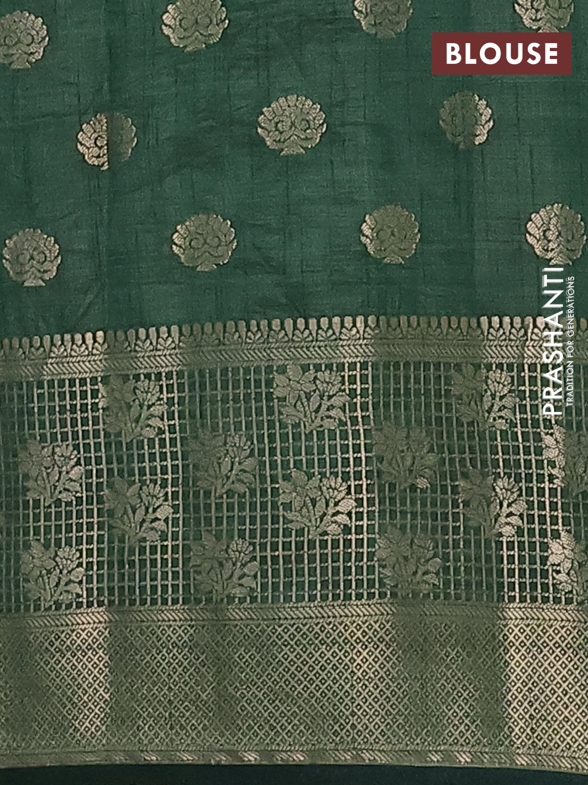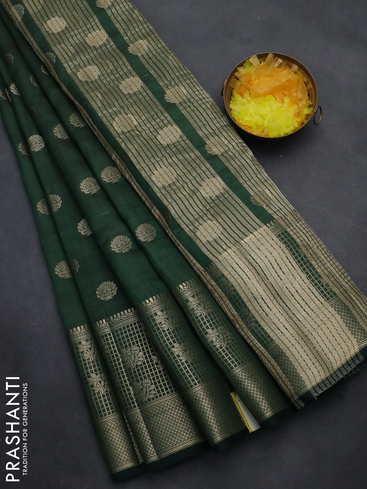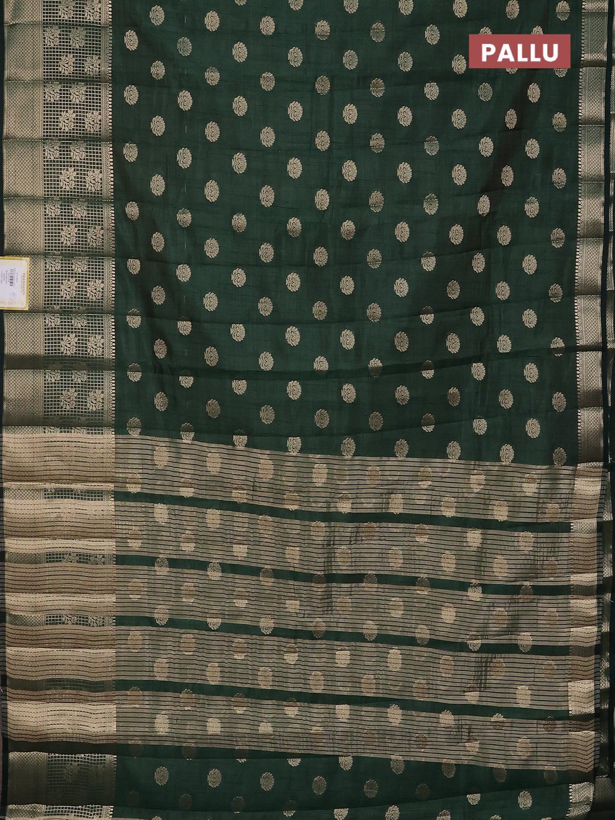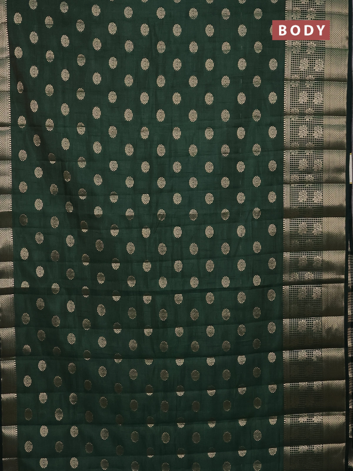 Semi raw silk saree bottle green with allover zari woven 1000 buttas and long zari woven border