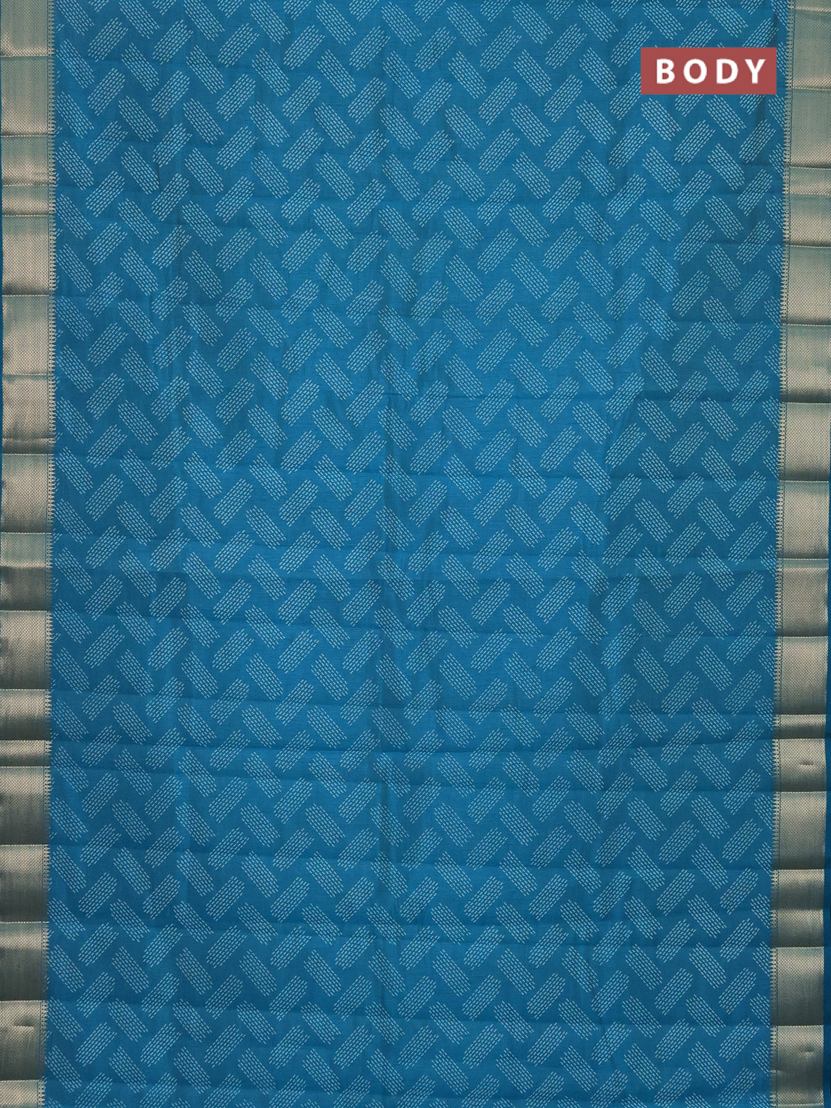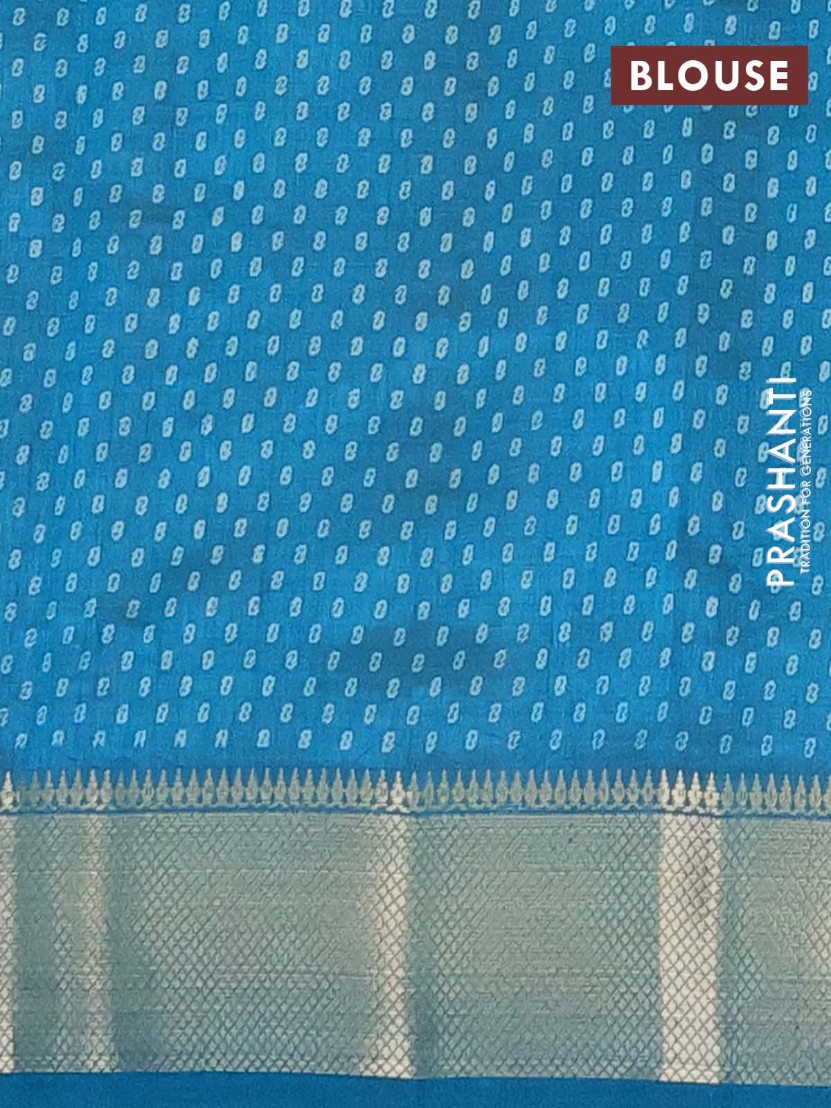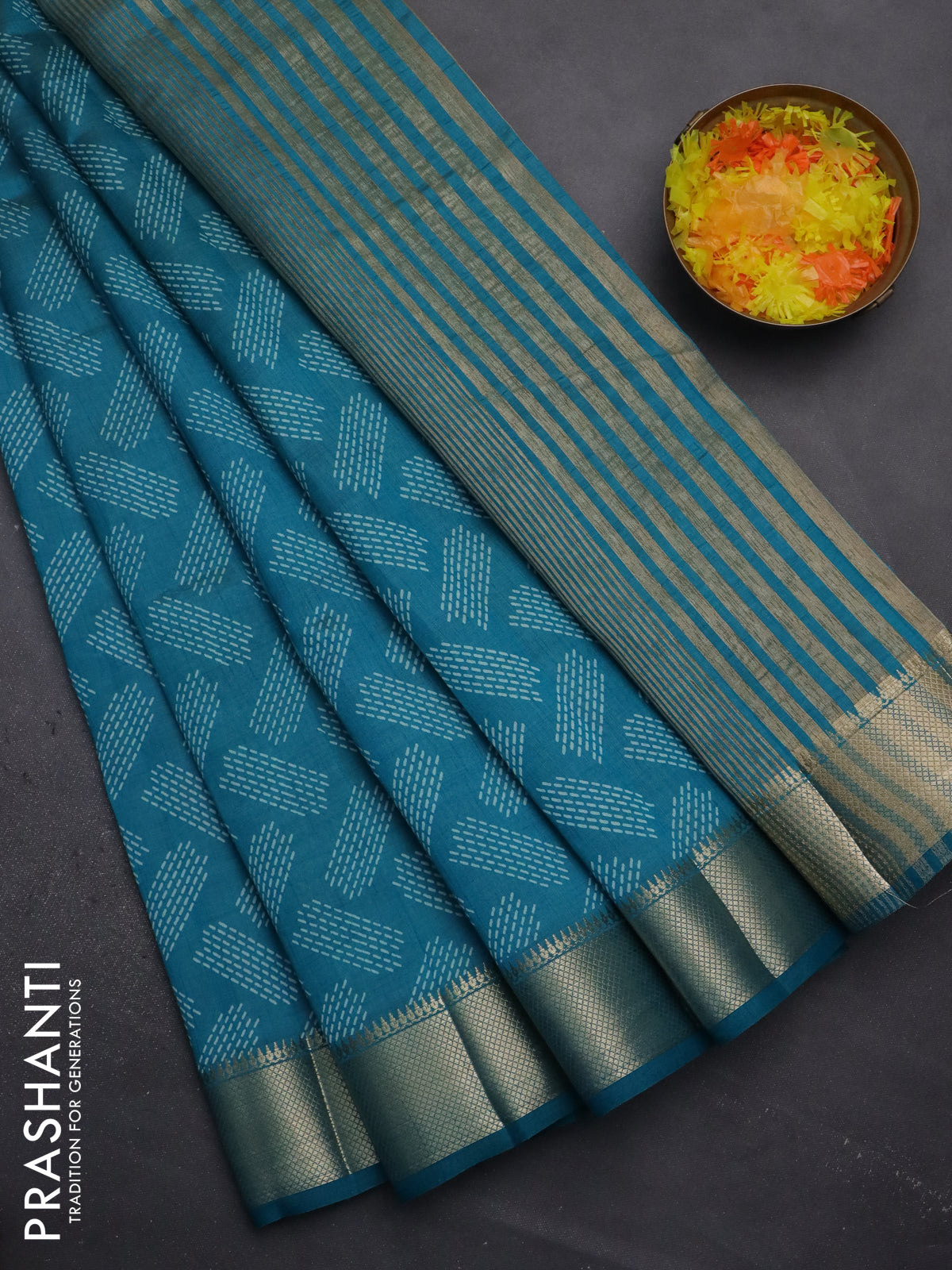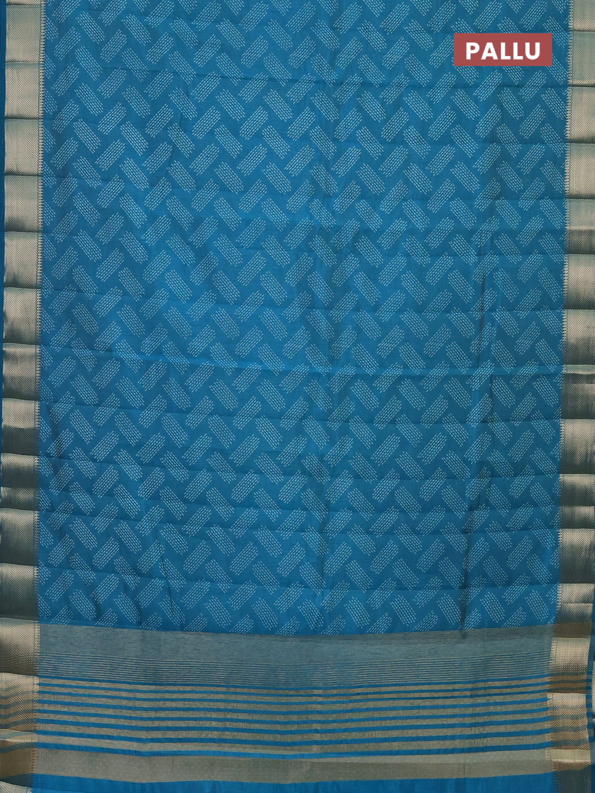 Semi raw silk saree cs blue with allover prints and zari woven border