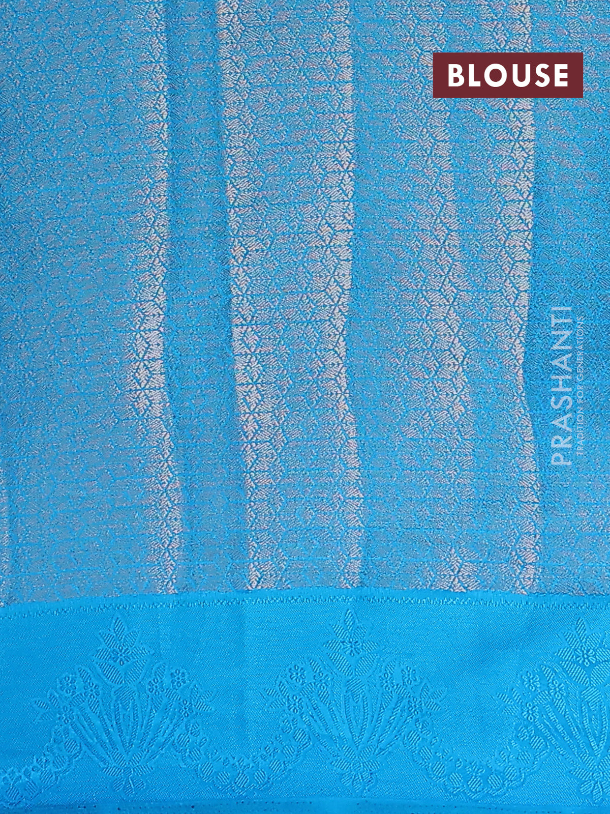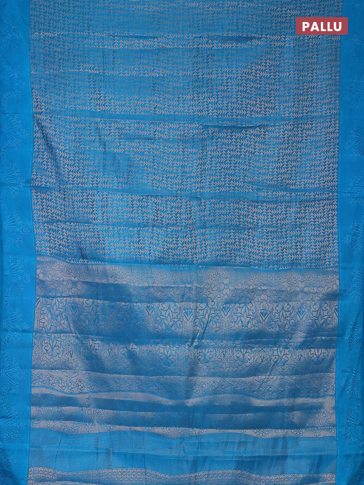 Semi raw silk saree cs blue with allover zari weaves and simple border