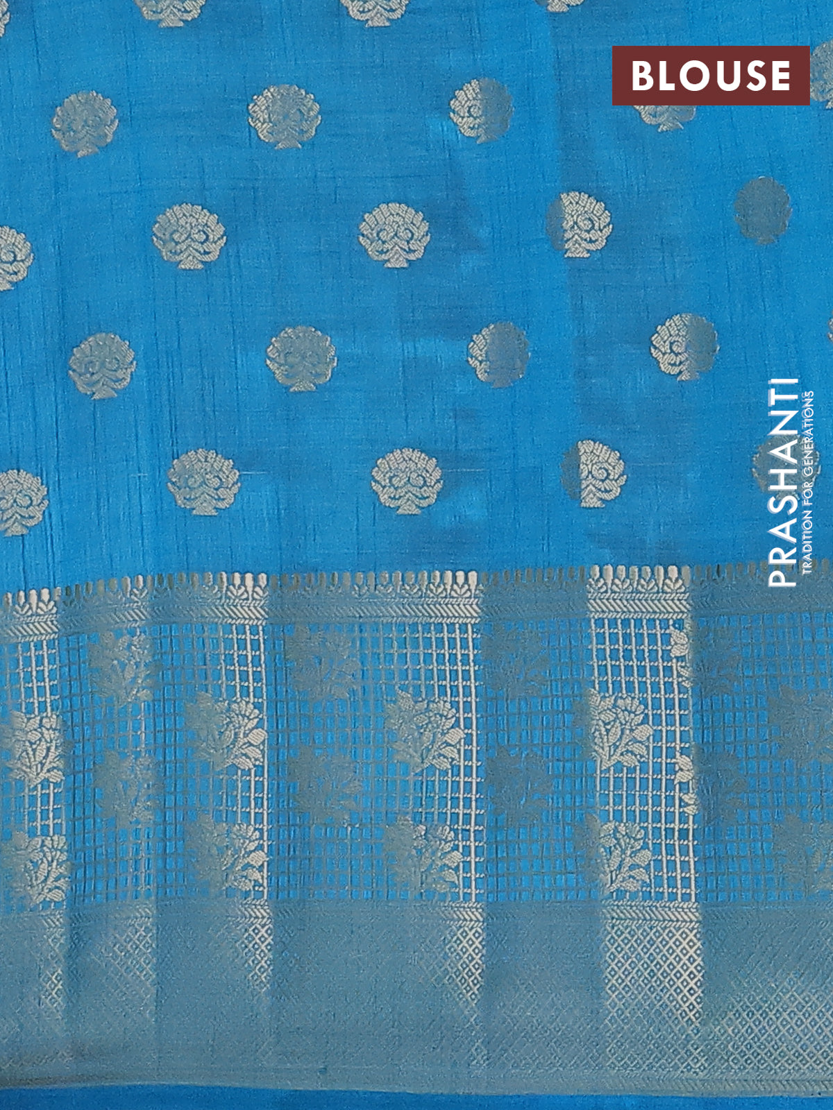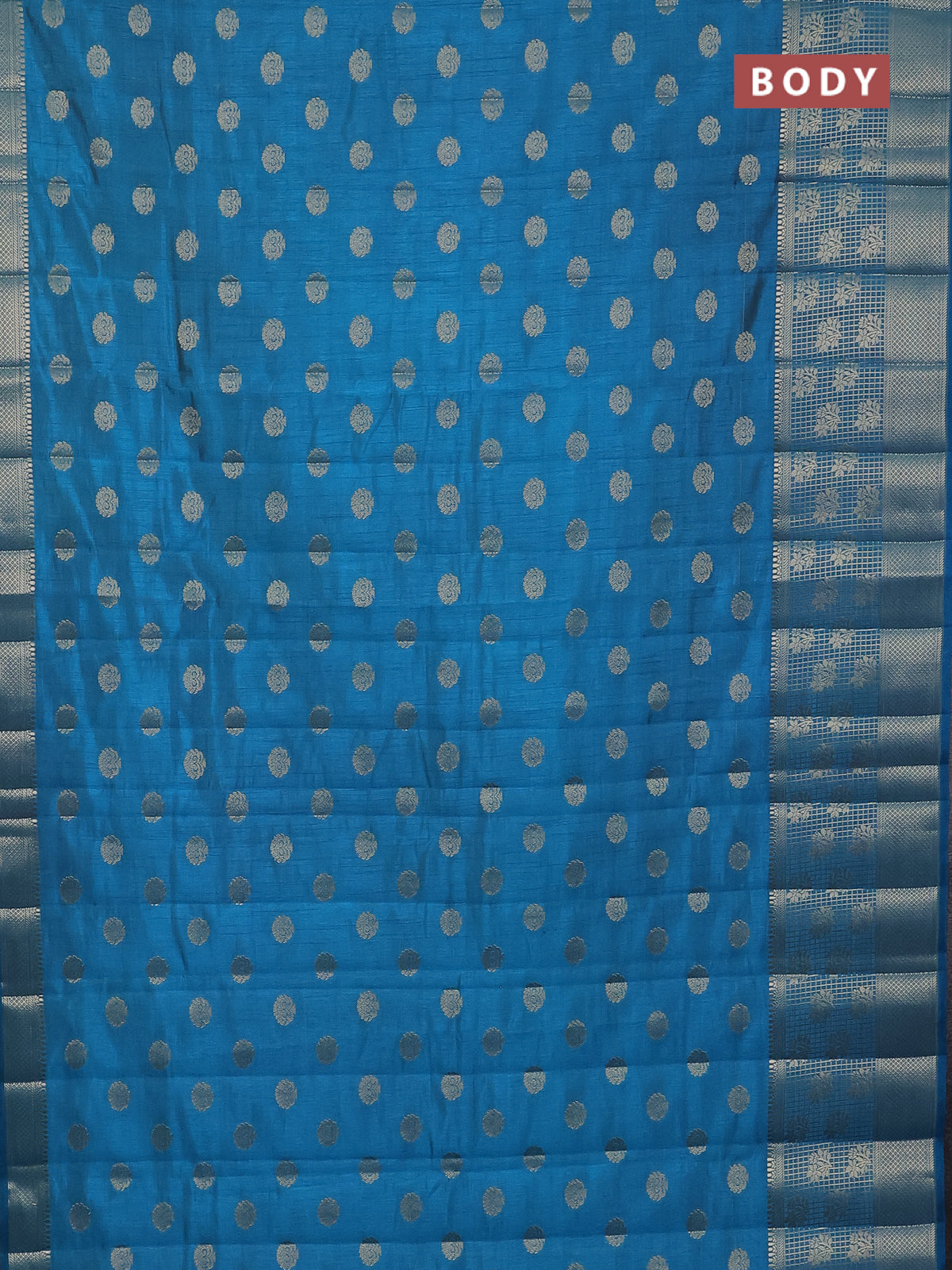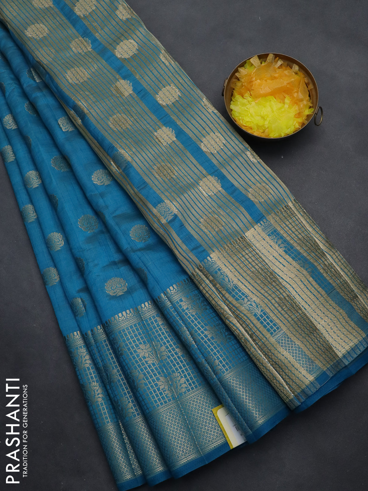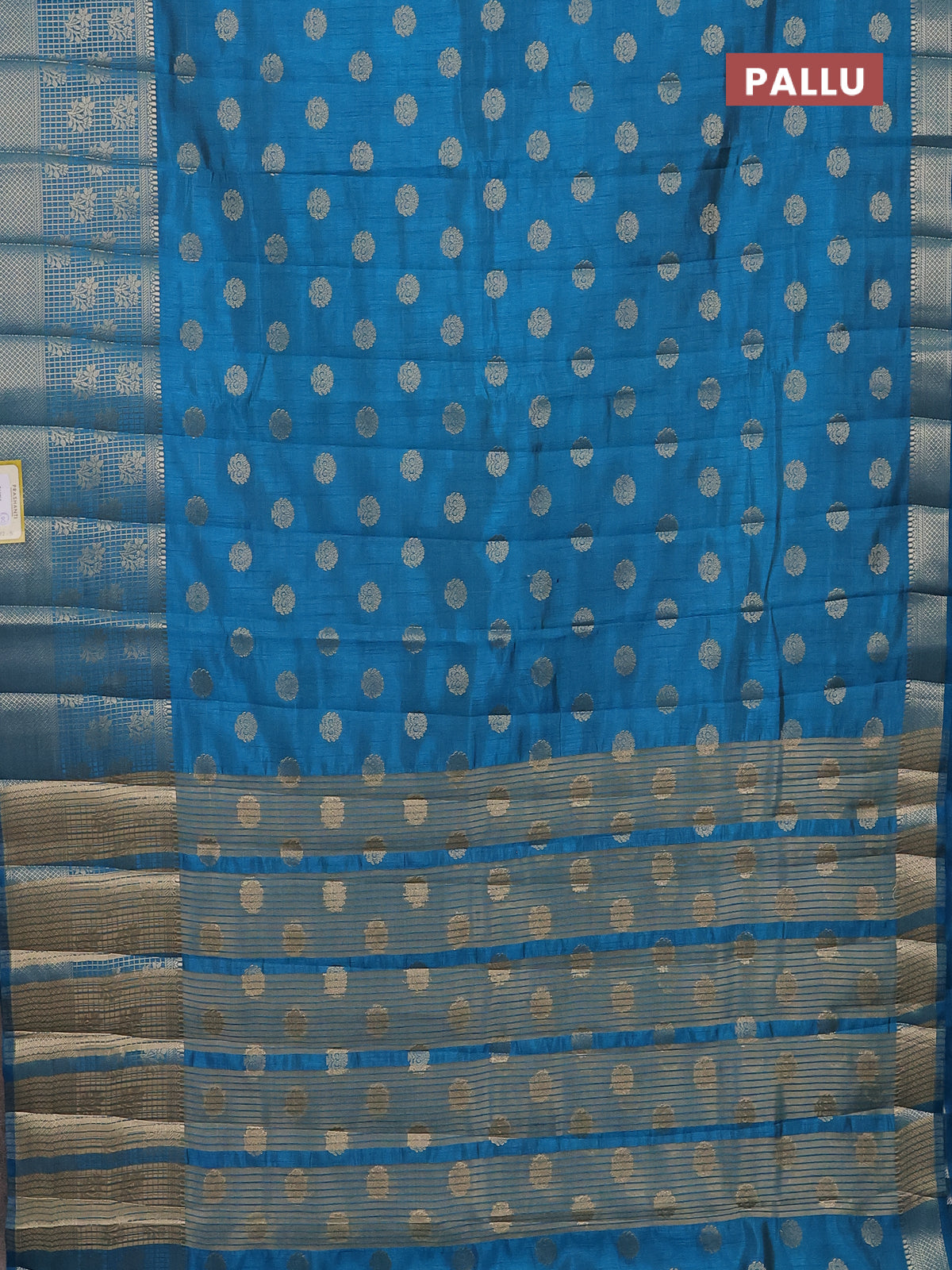 Semi raw silk saree cs blue with allover zari woven 1000 buttas and long zari woven border