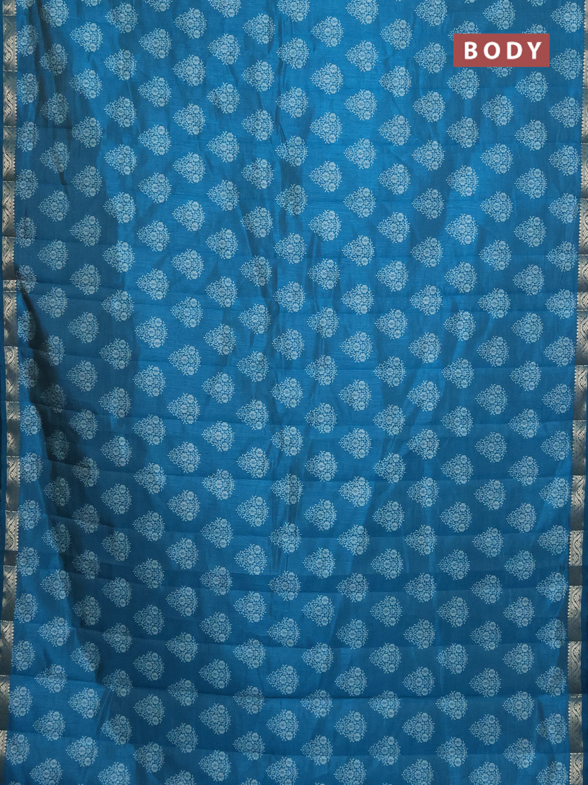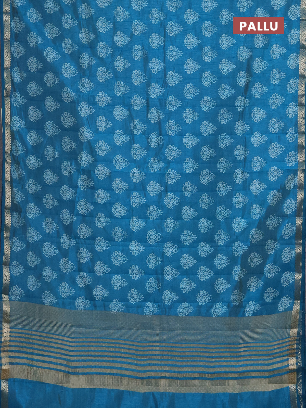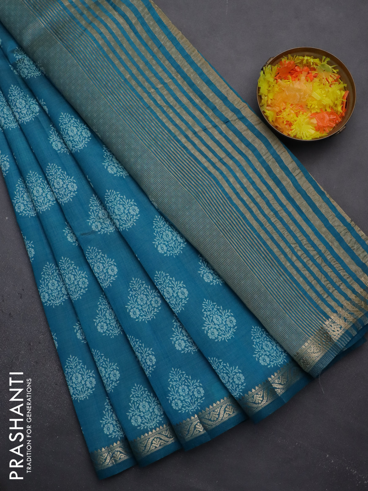 Semi raw silk saree cs blue with butta prints and zari woven border
