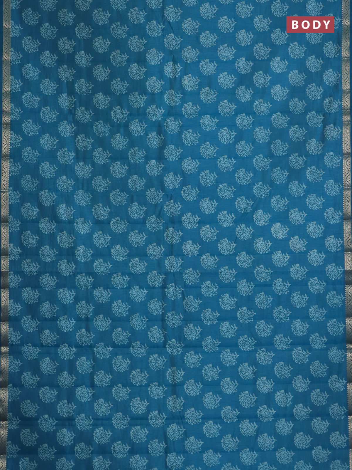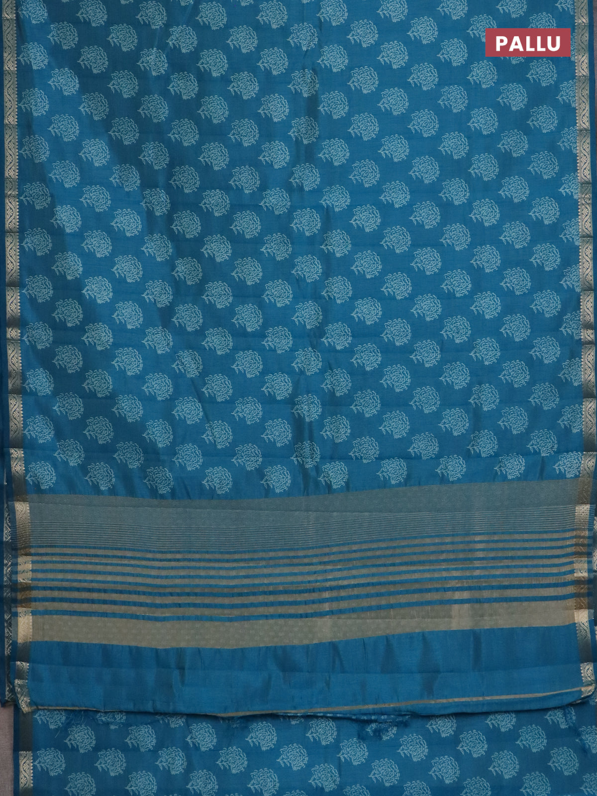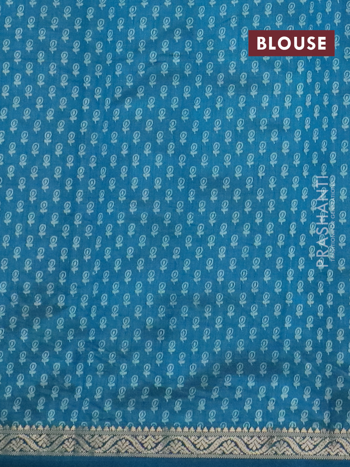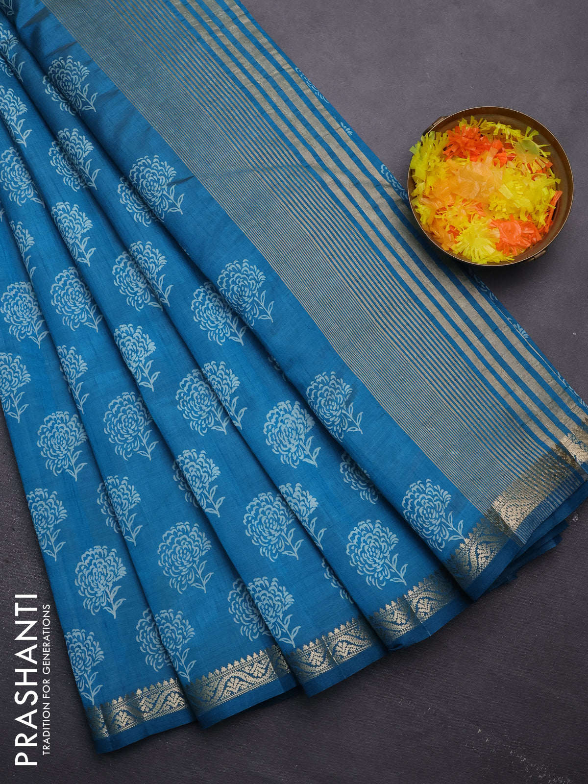 Semi raw silk saree cs blue with floral butta prints and zari woven border