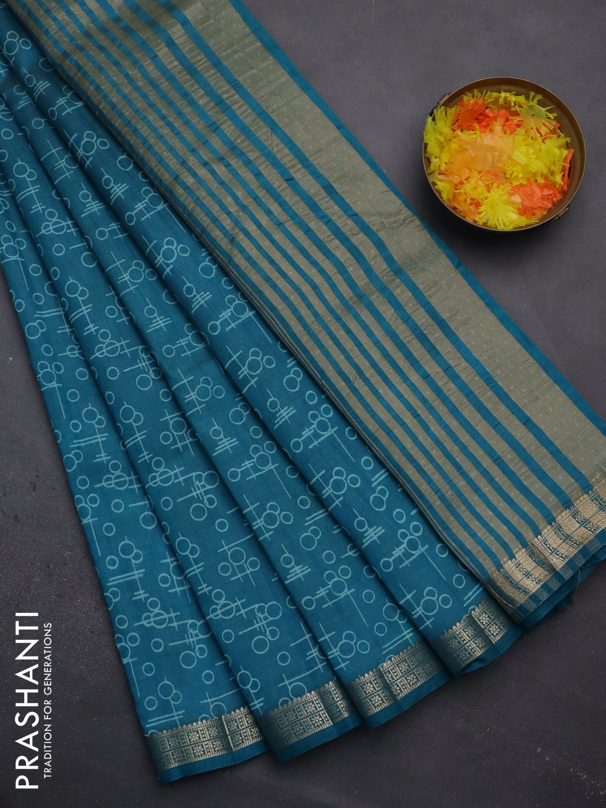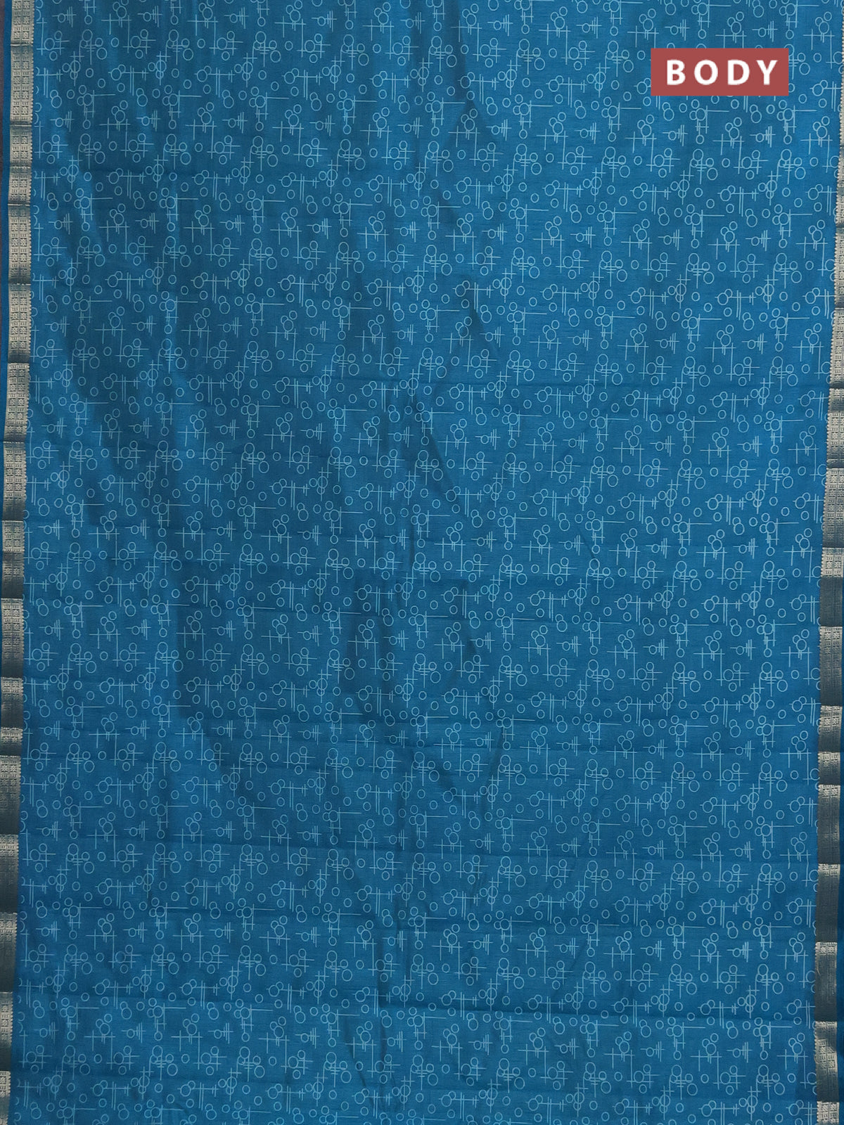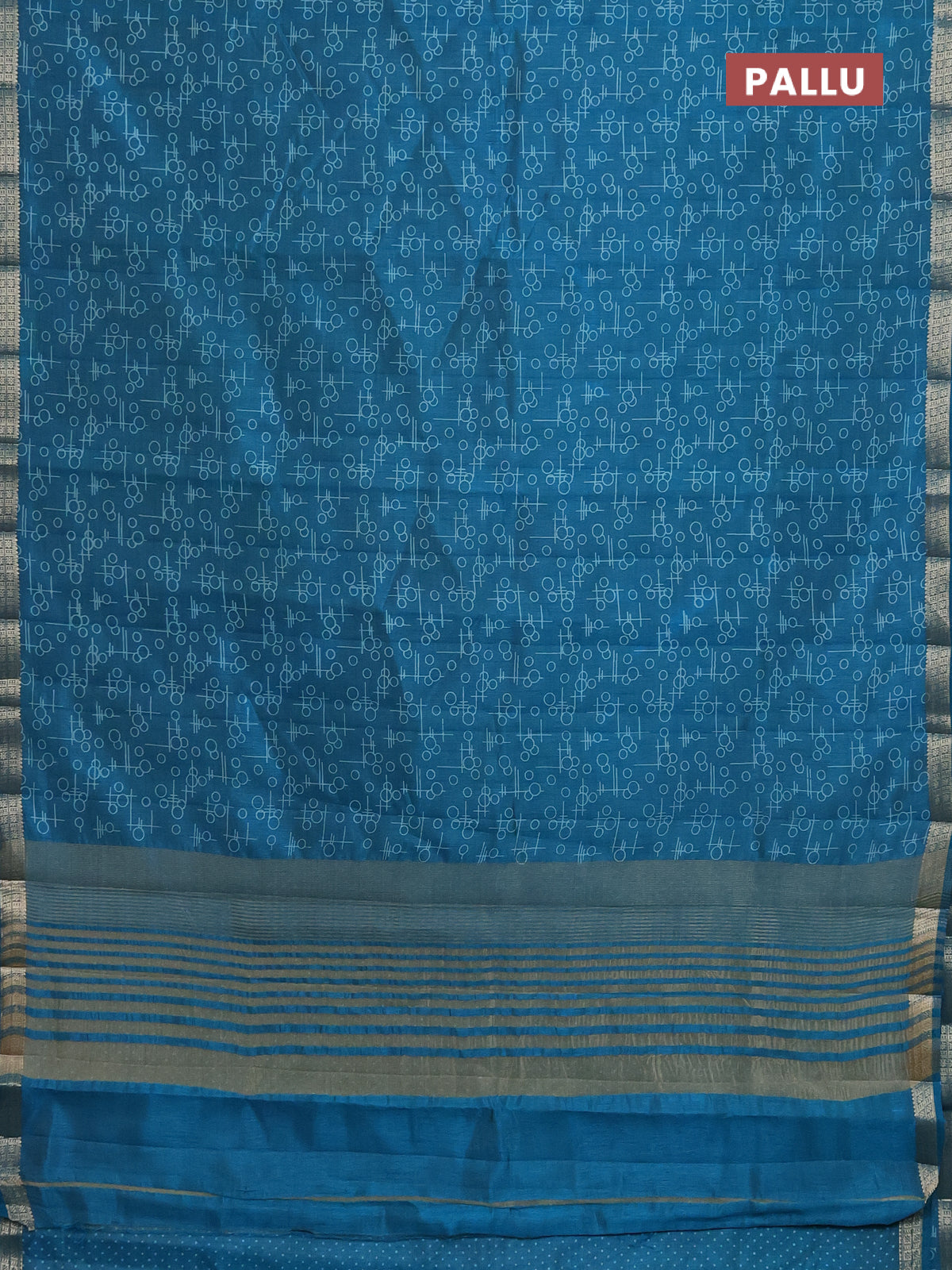 Semi raw silk saree cs blue with geometric prints and zari woven border
