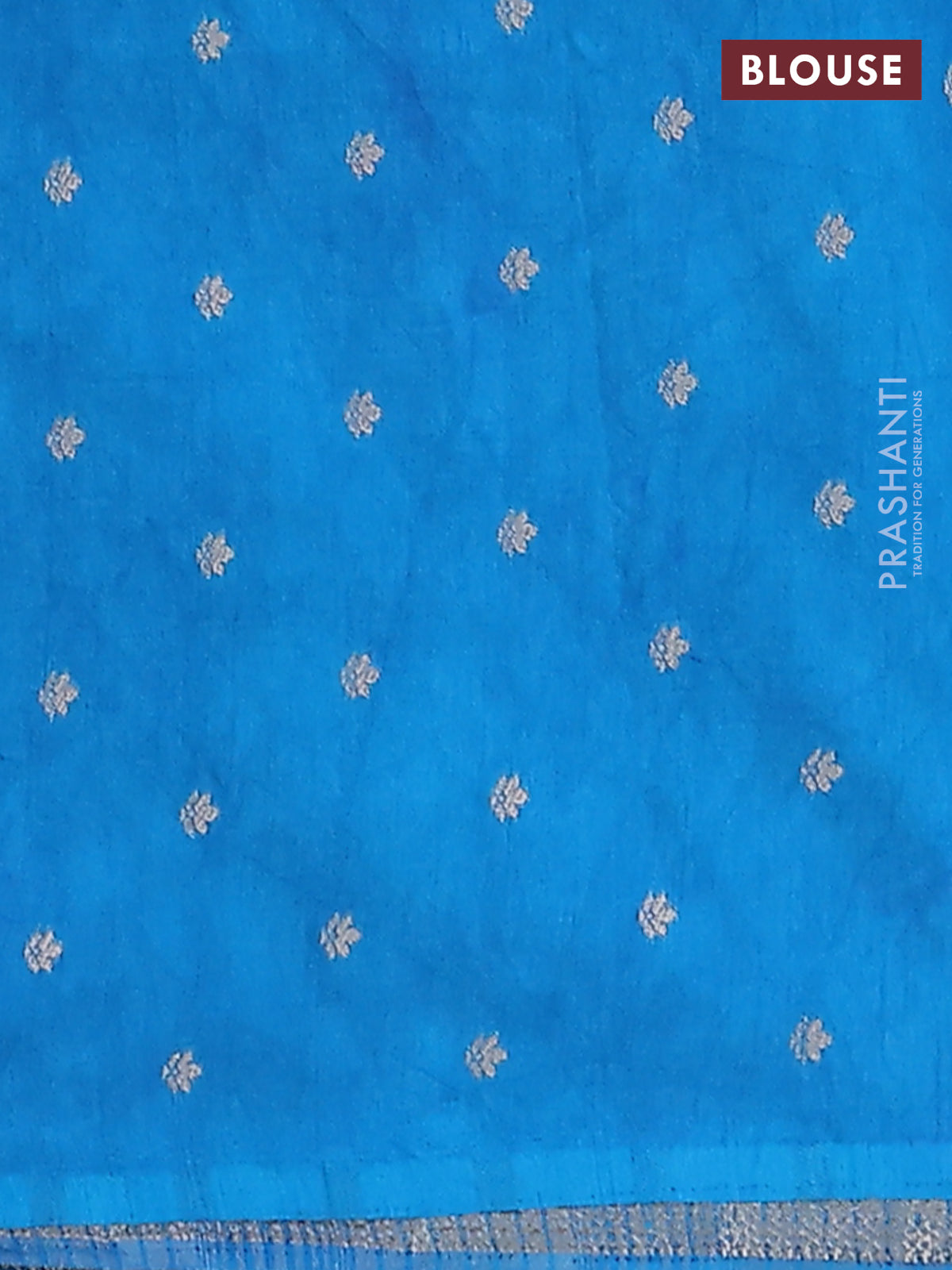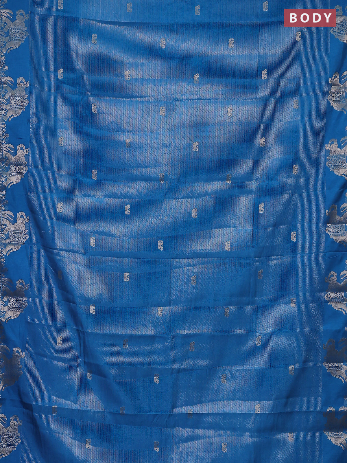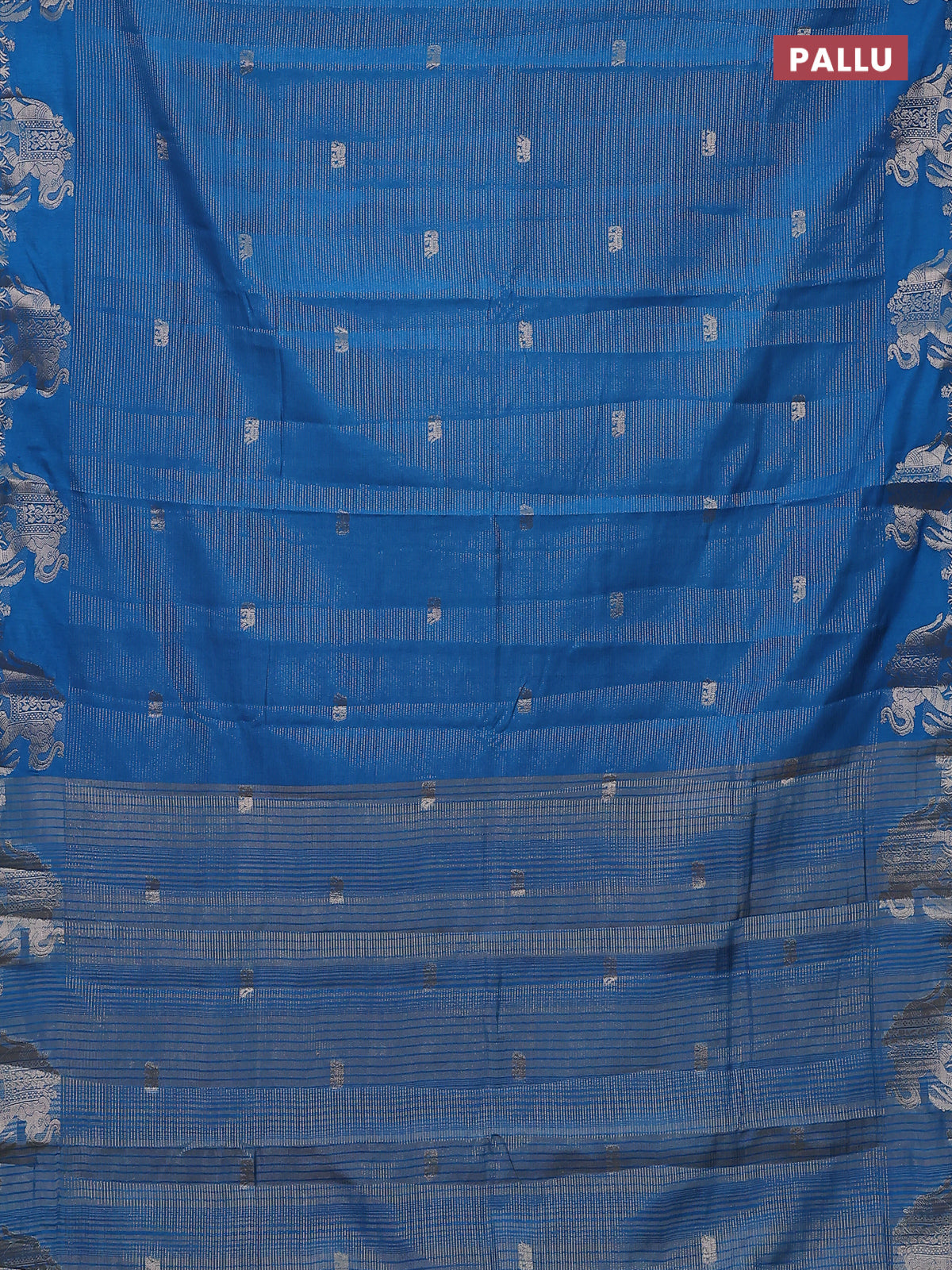 Semi raw silk saree cs blue with zari weaves & elephant buttas and elephant design zari woven border
