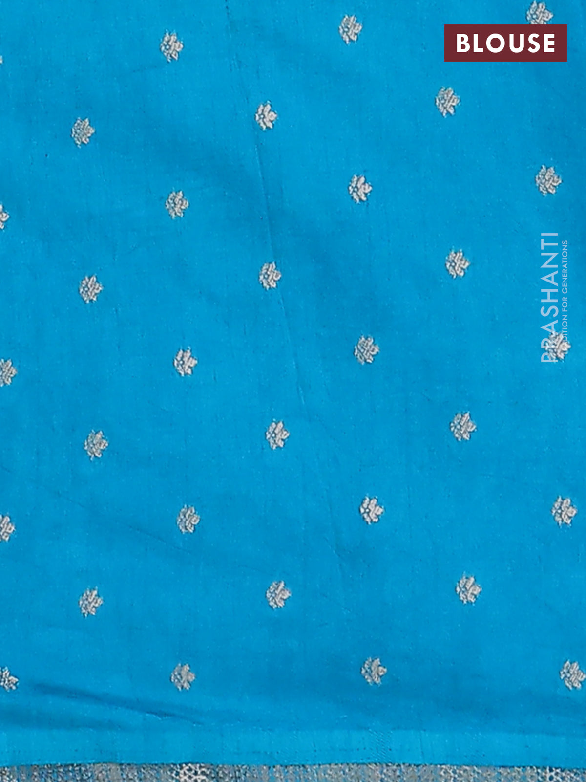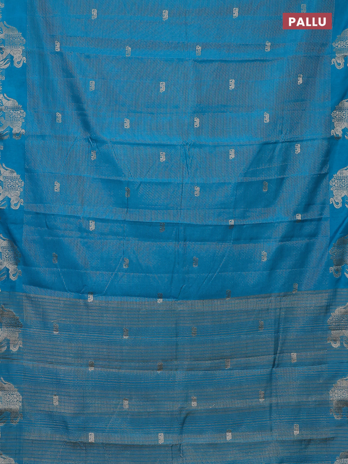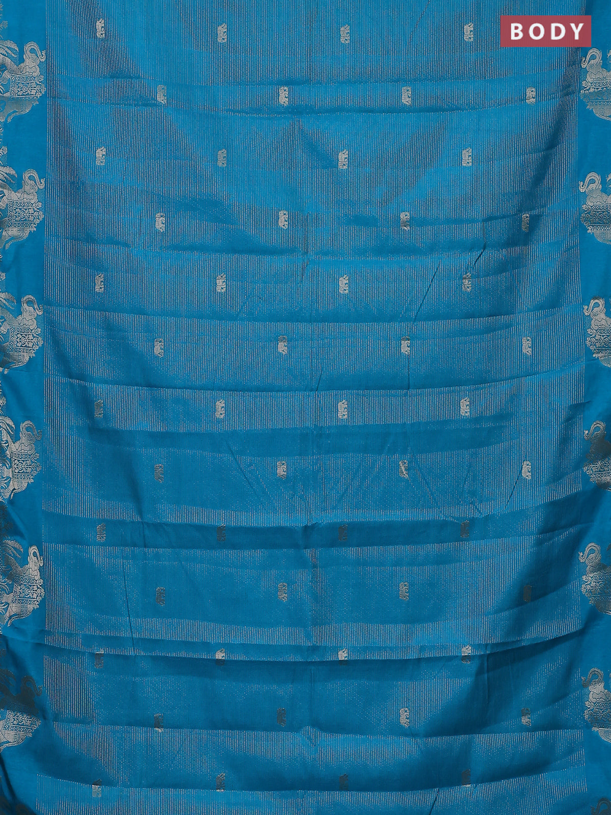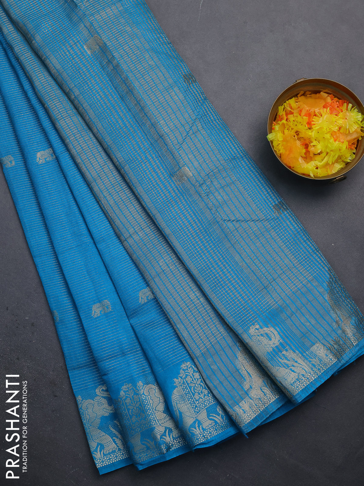 Semi raw silk saree cs blue with zari weaves & elephant buttas and elephant design zari woven border