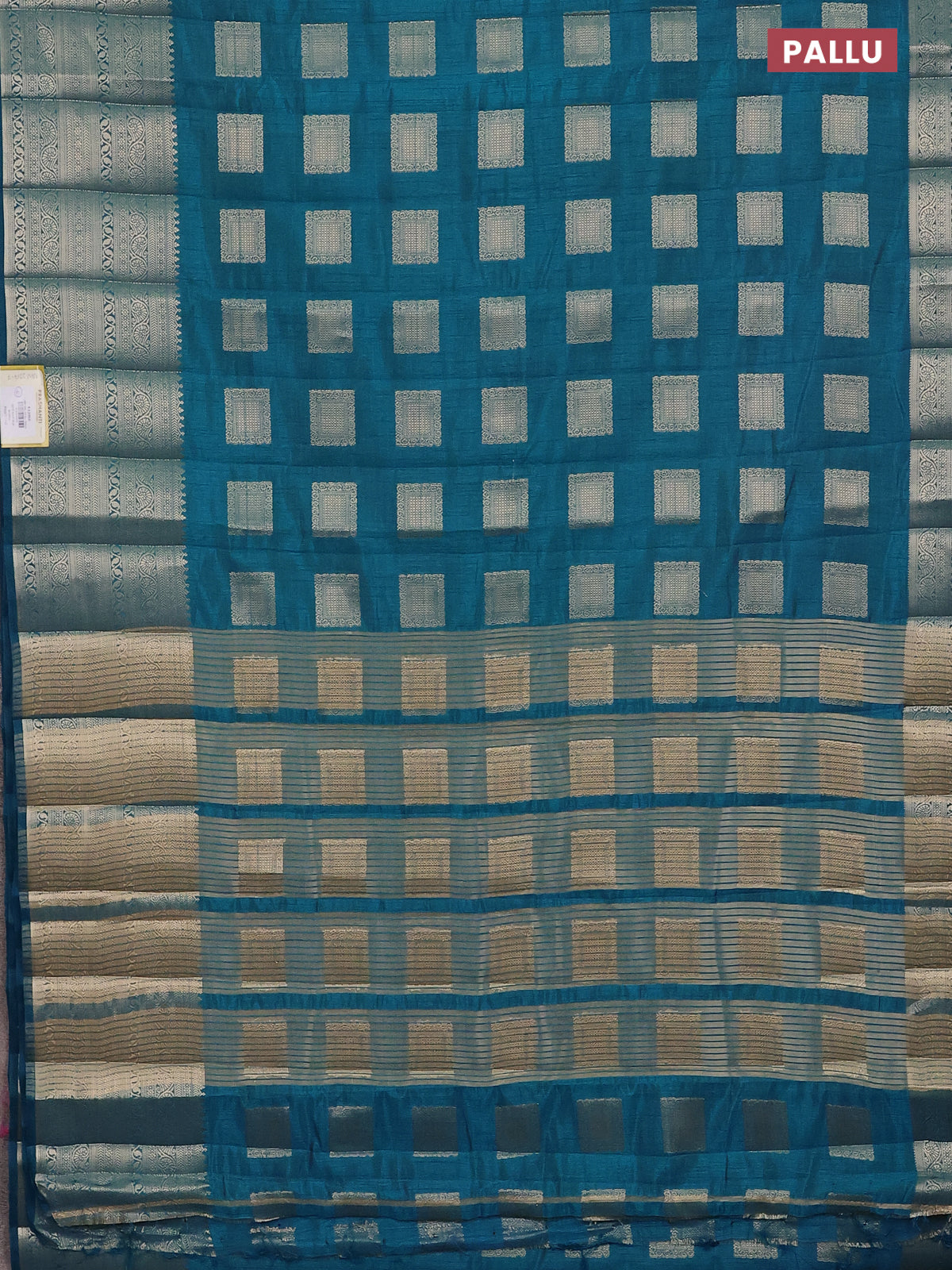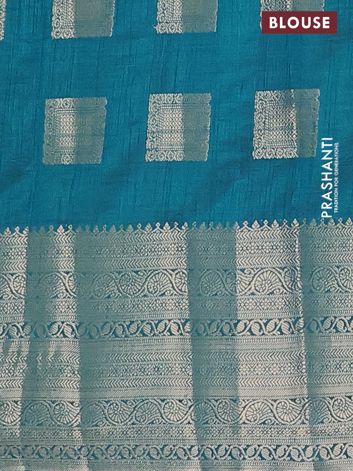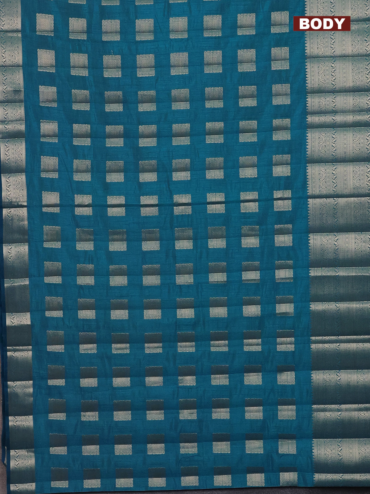 Semi raw silk saree cs blue with zari woven box type buttas and long zari woven border