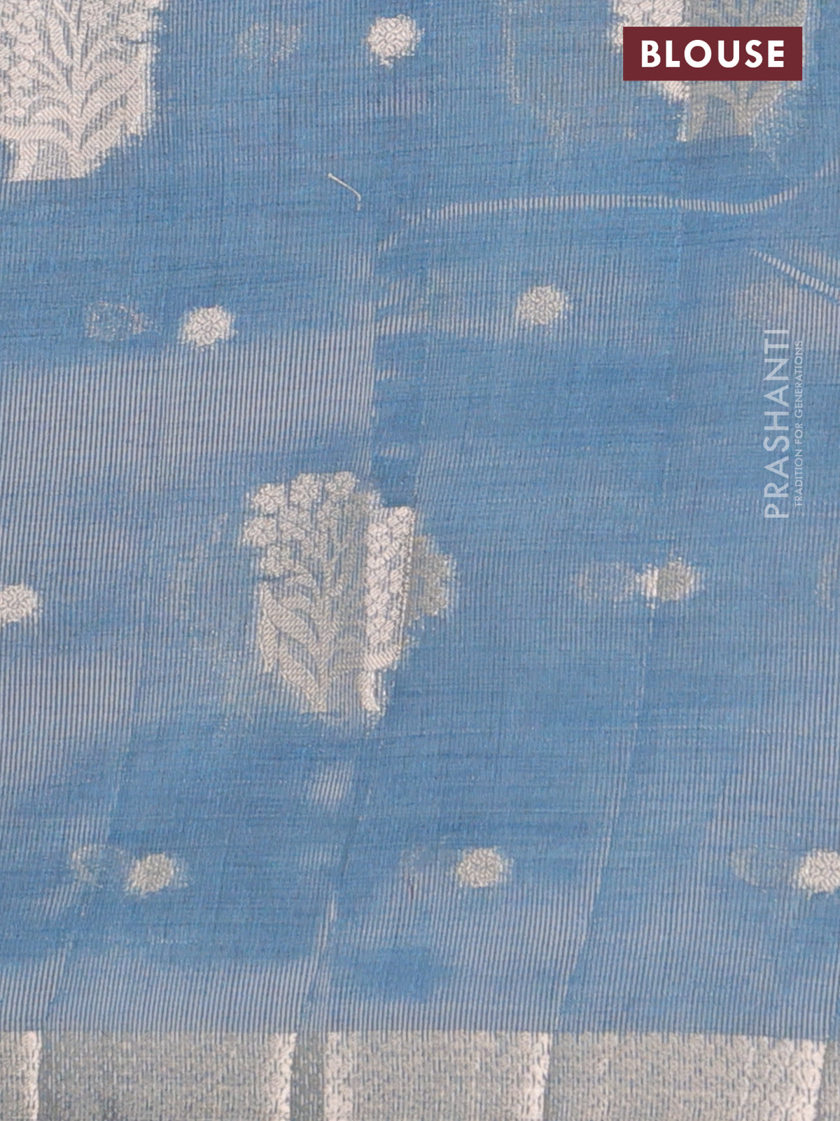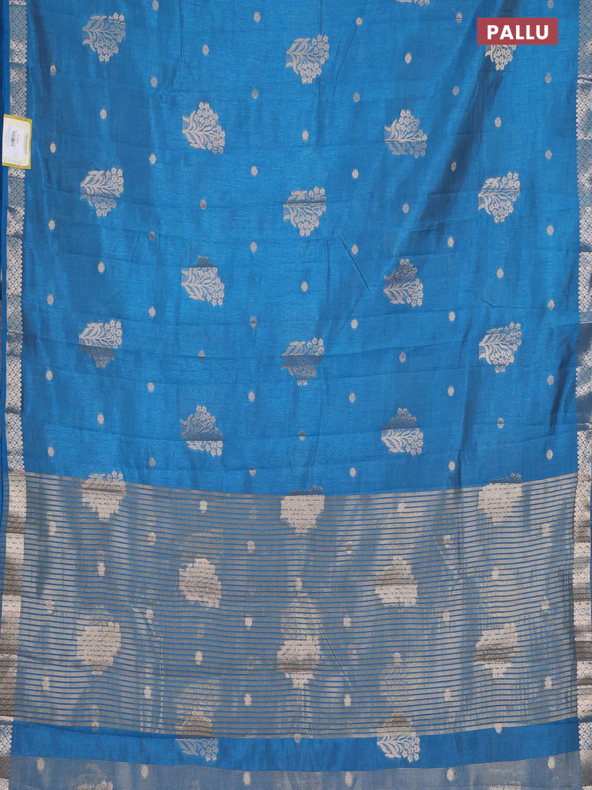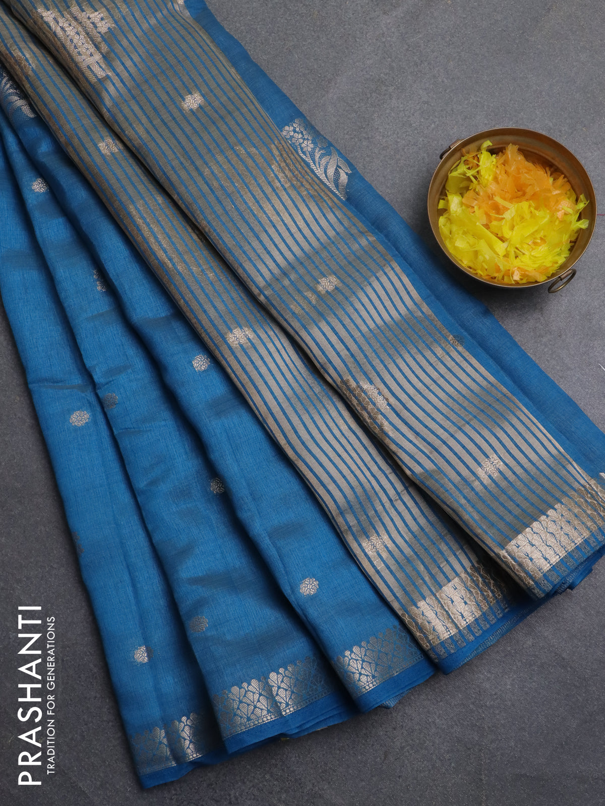 Semi raw silk saree cs blue with zari woven buttas and zari woven border