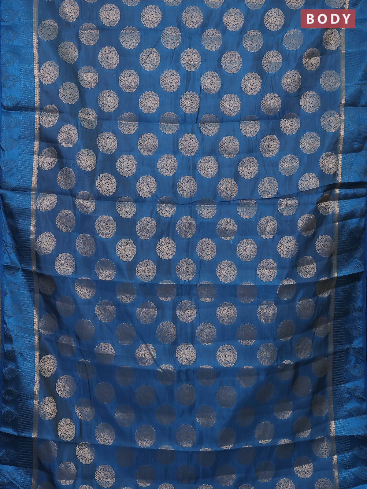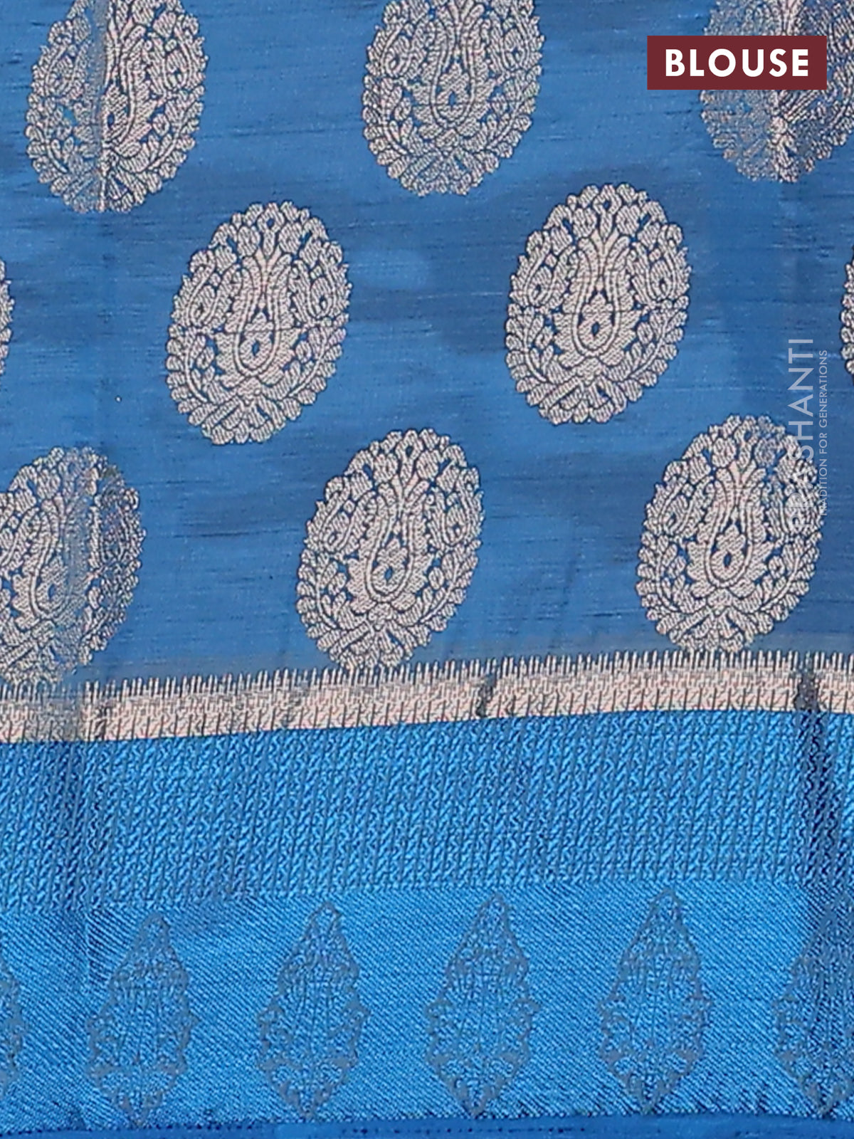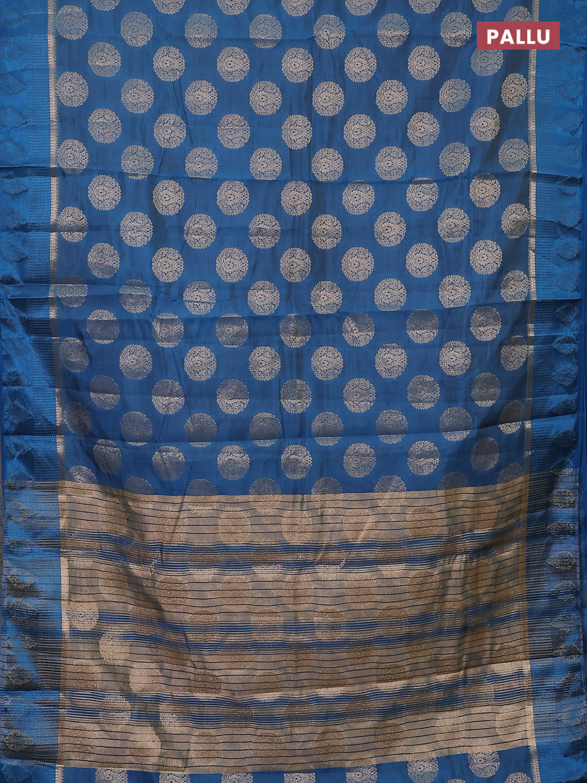 Semi raw silk saree cs blue with zari woven buttas and zari woven simple border
