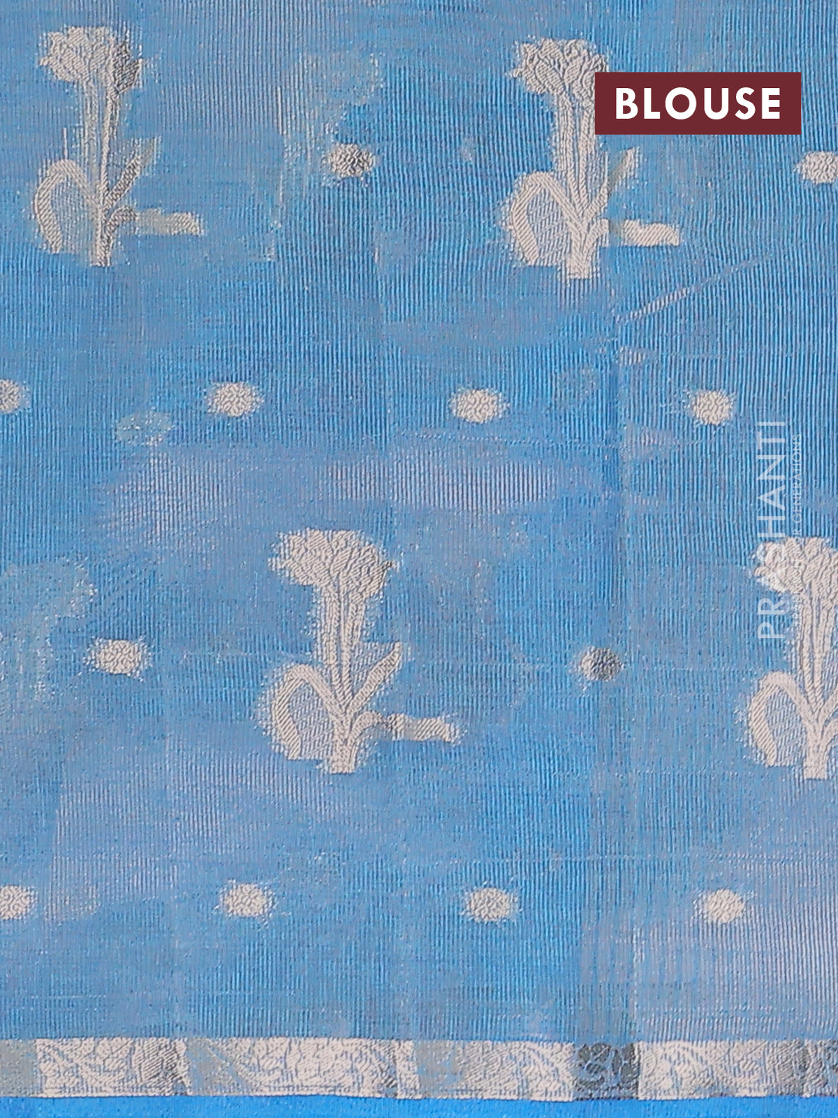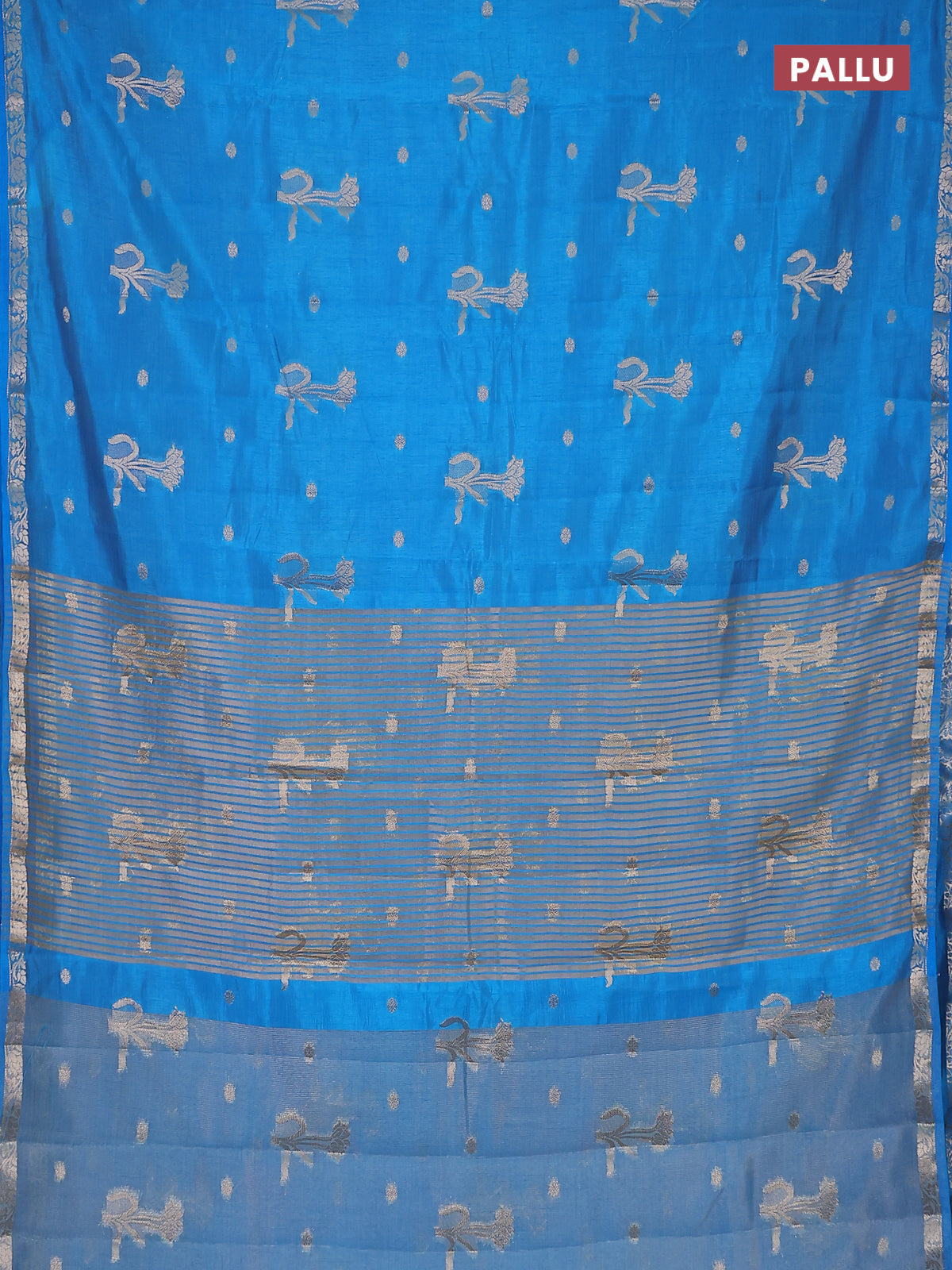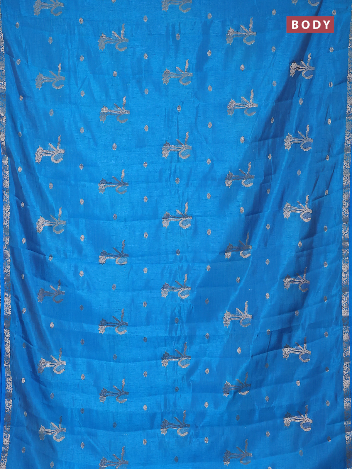 Semi raw silk saree cs blue with zari woven floral buttas and small zari woven border
