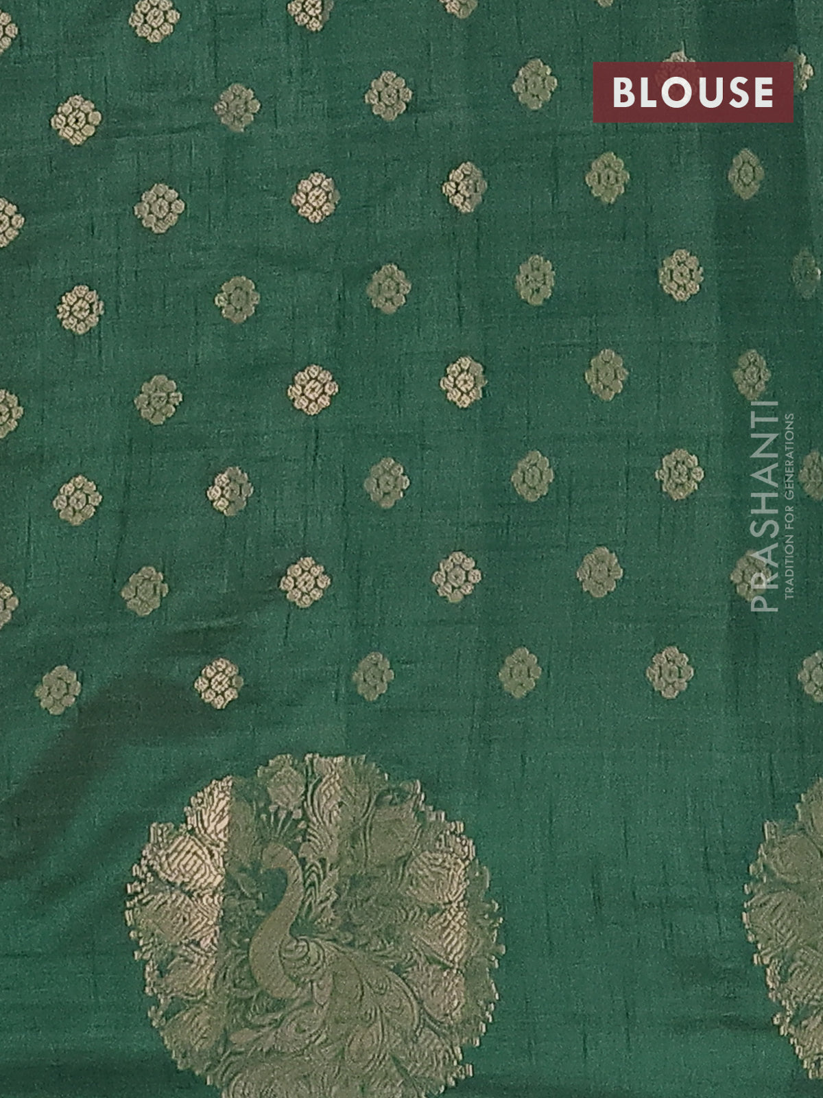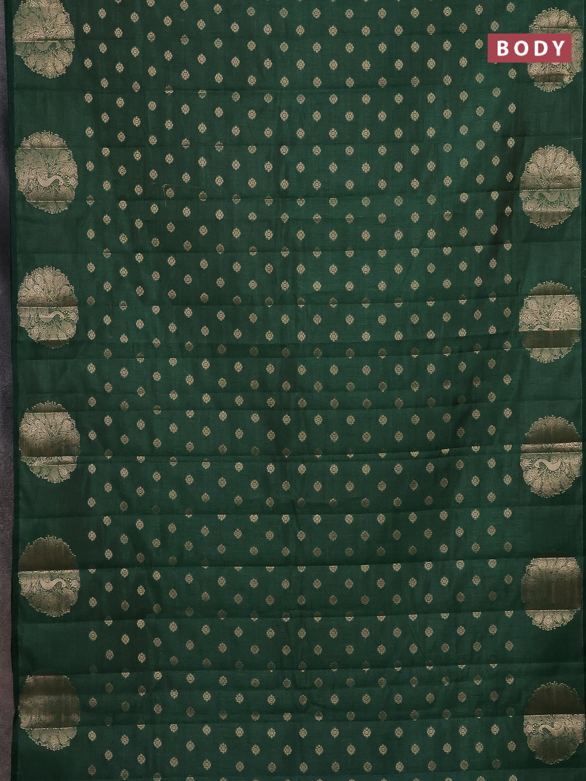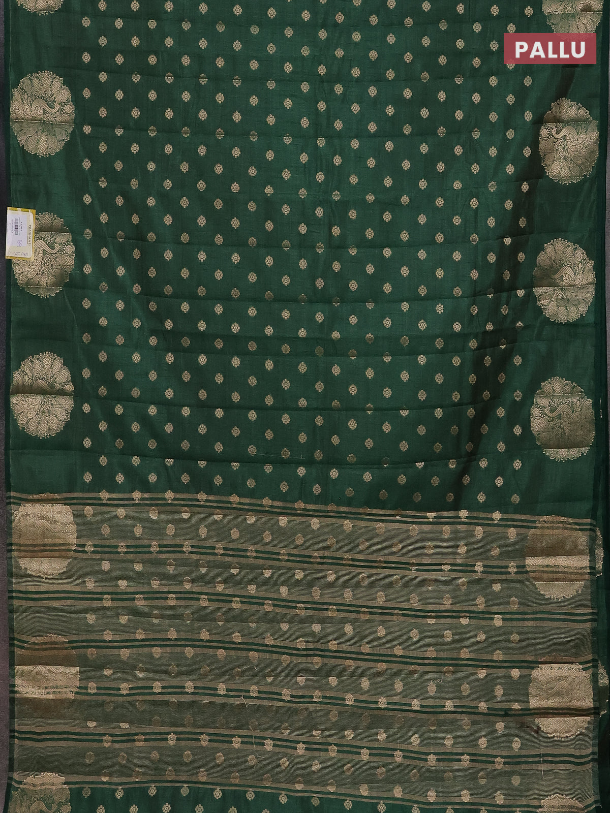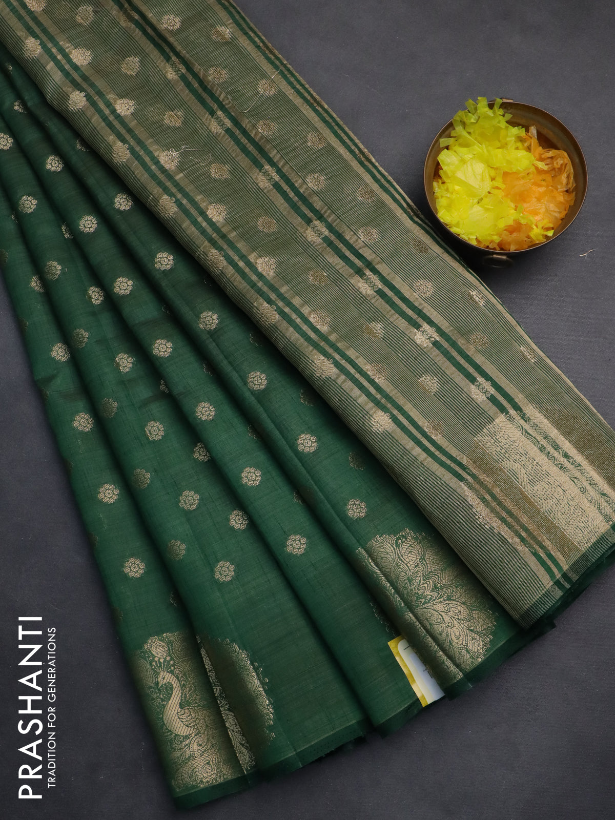 Semi raw silk saree dark green with allover zari woven floral design 1000 buttas and zari woven butta border