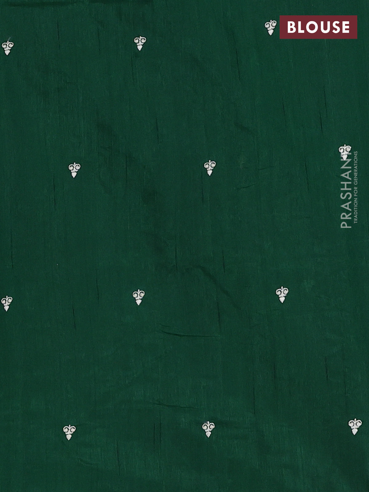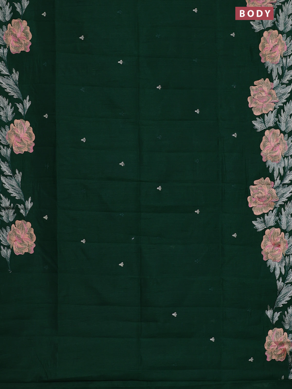 Semi raw silk saree dark green with embroidery work buttas and floral embroidery border