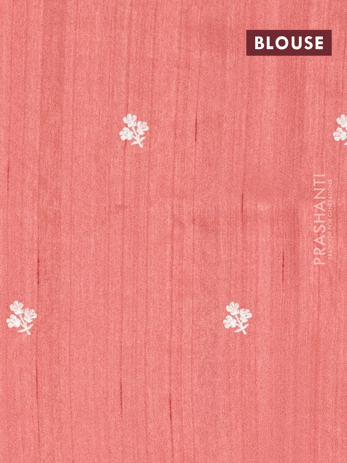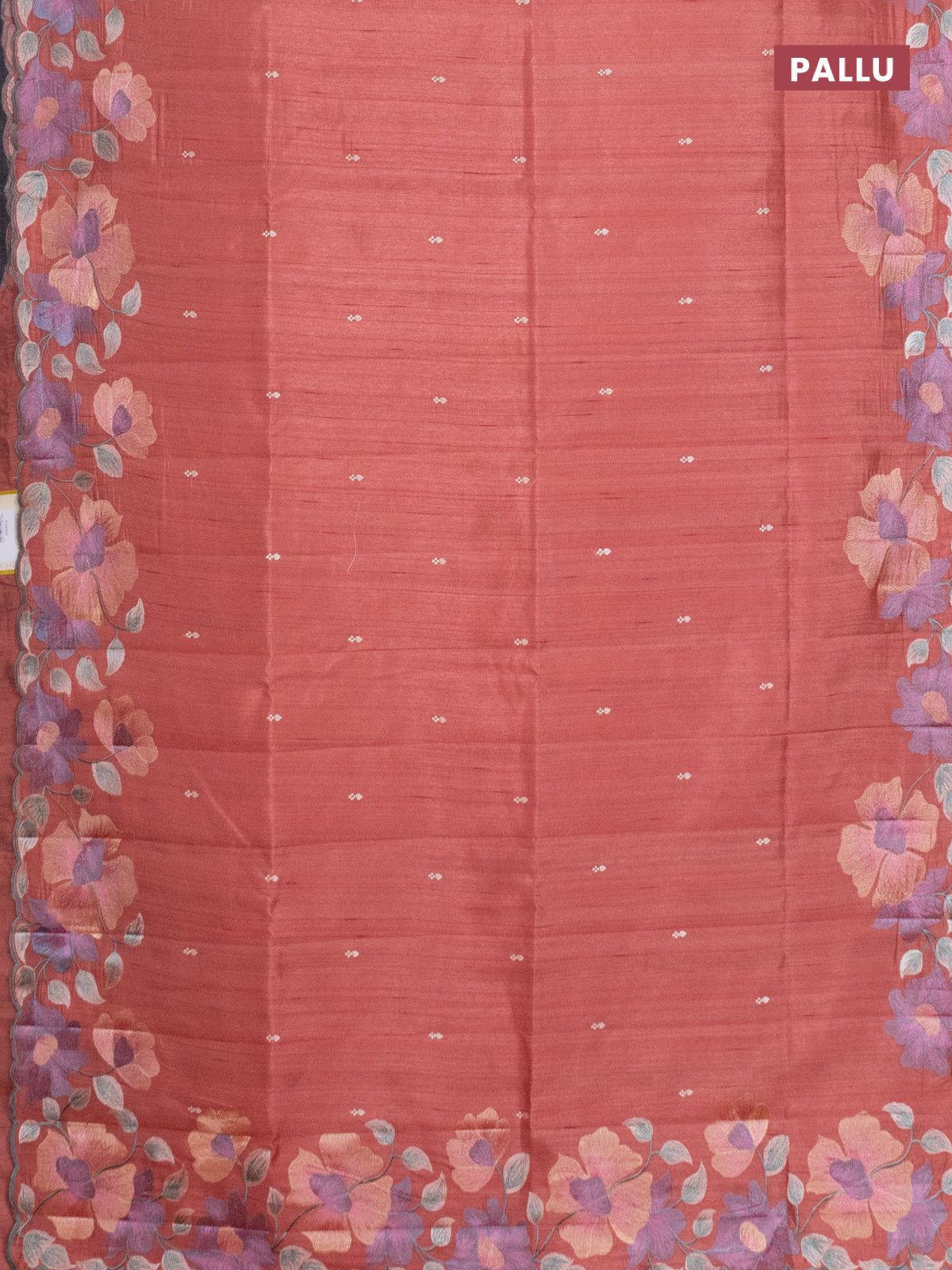 Semi raw silk saree dark peach with embroidery work buttas and floral embroidery border