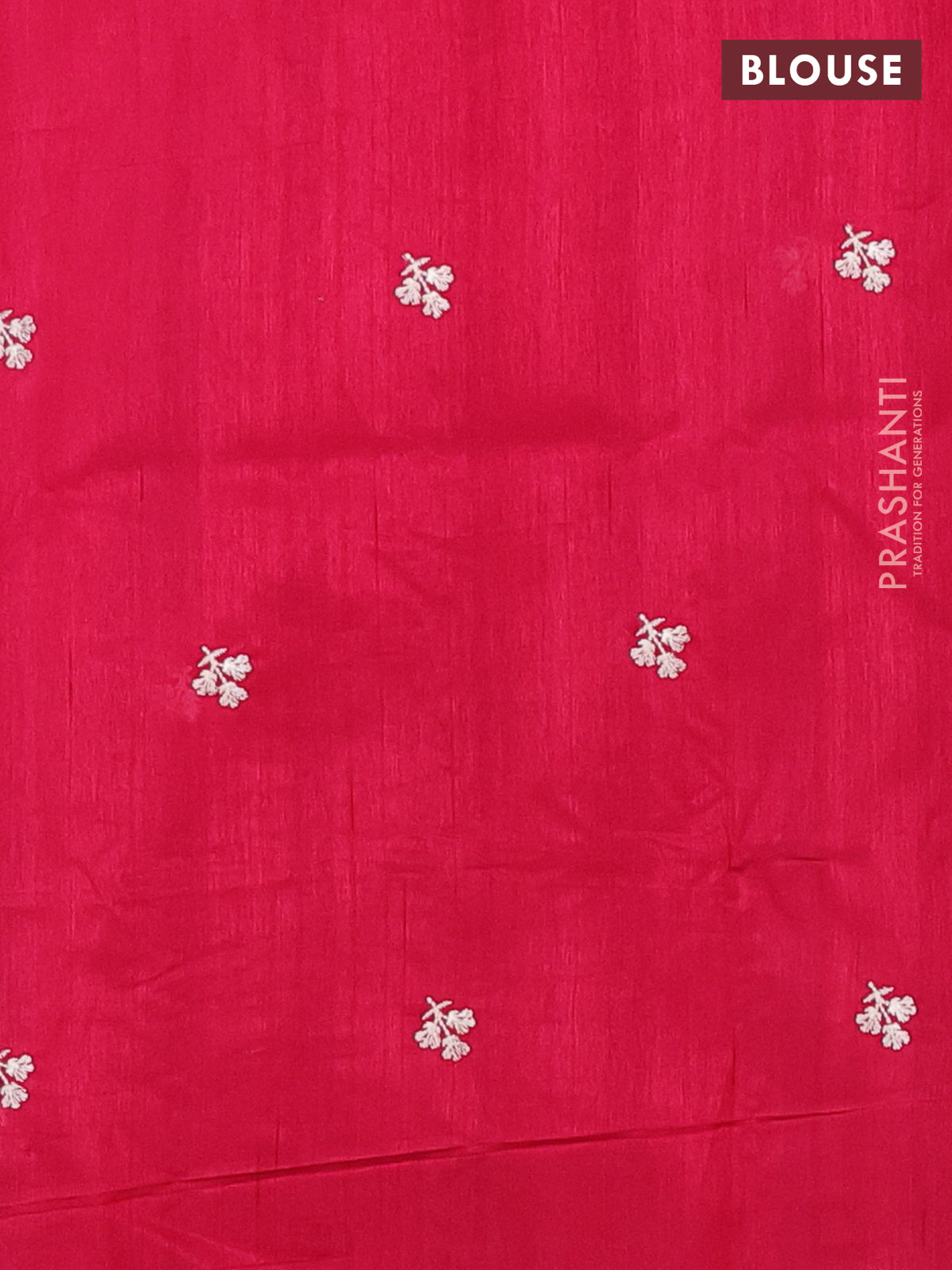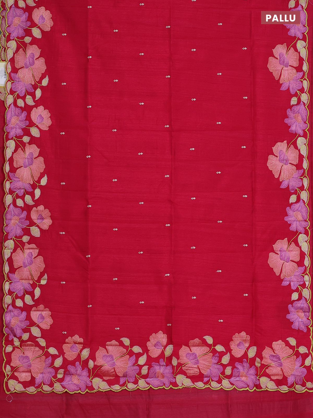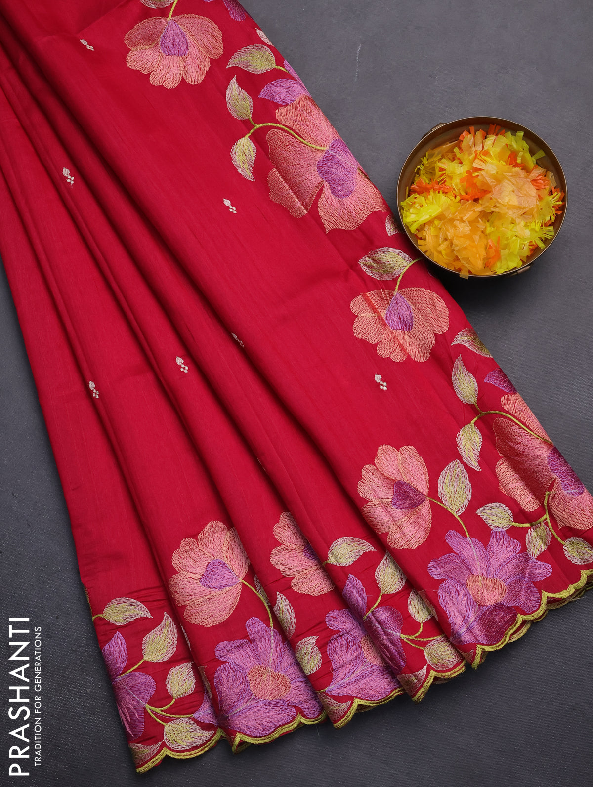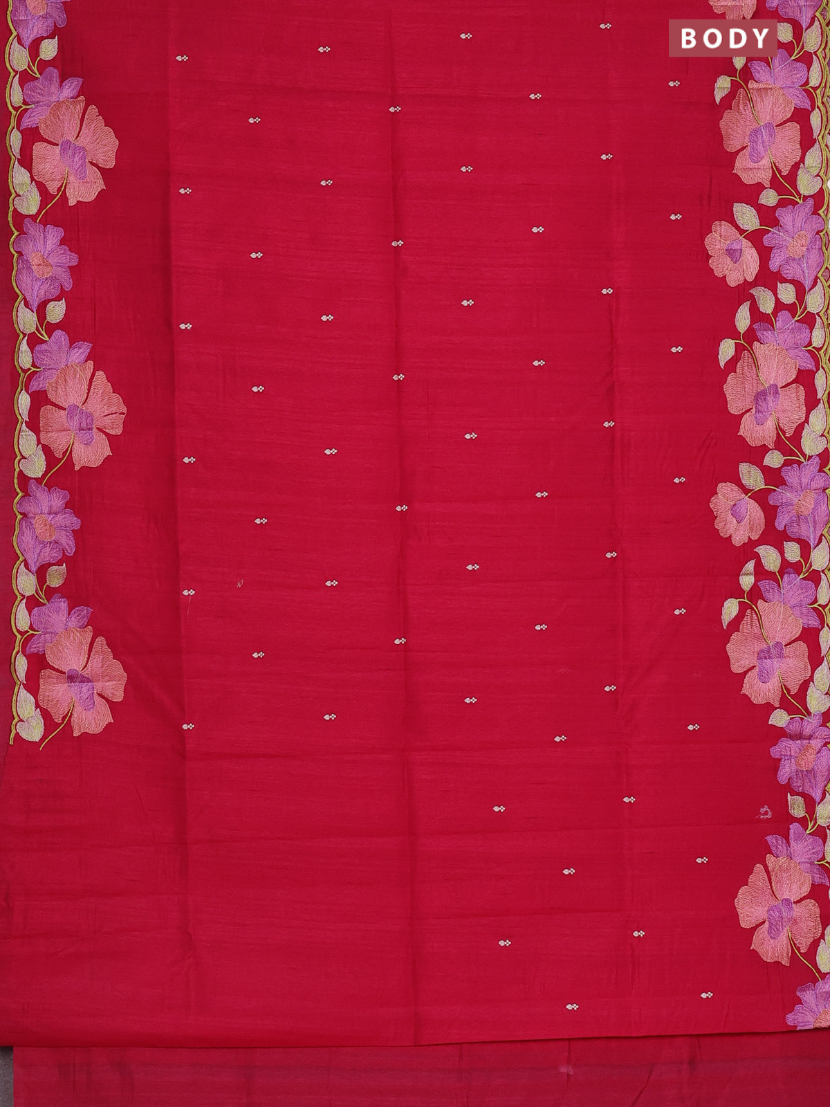 Semi raw silk saree dark pink with embroidery work buttas and floral embroidery border