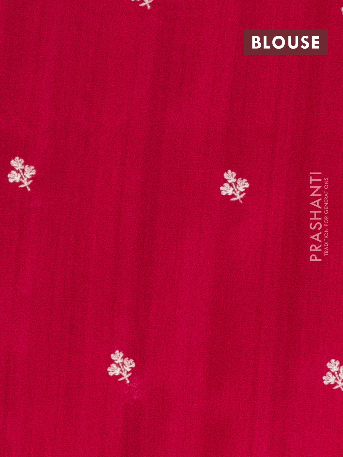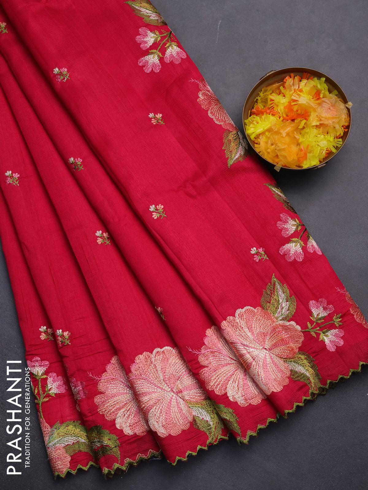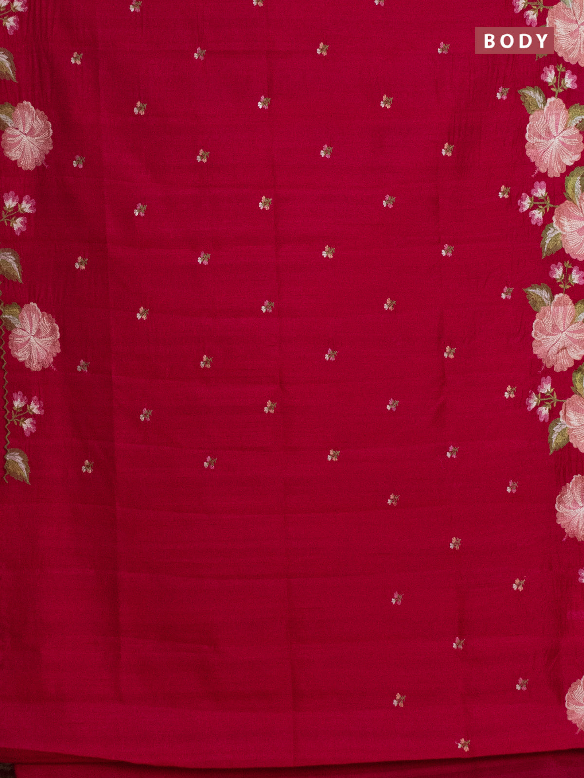 Semi raw silk saree dark pink with embroidery work buttas and floral embroidery border