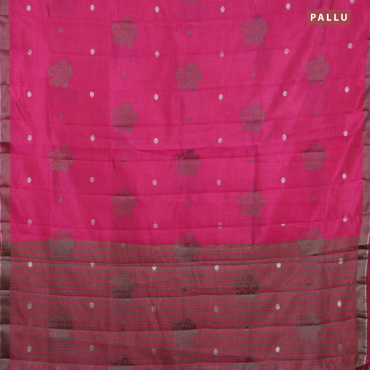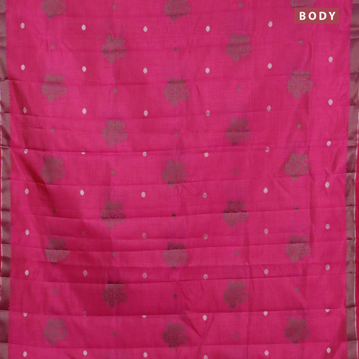 Semi raw silk saree dark pink with thread & silver zari woven buttas and woven border