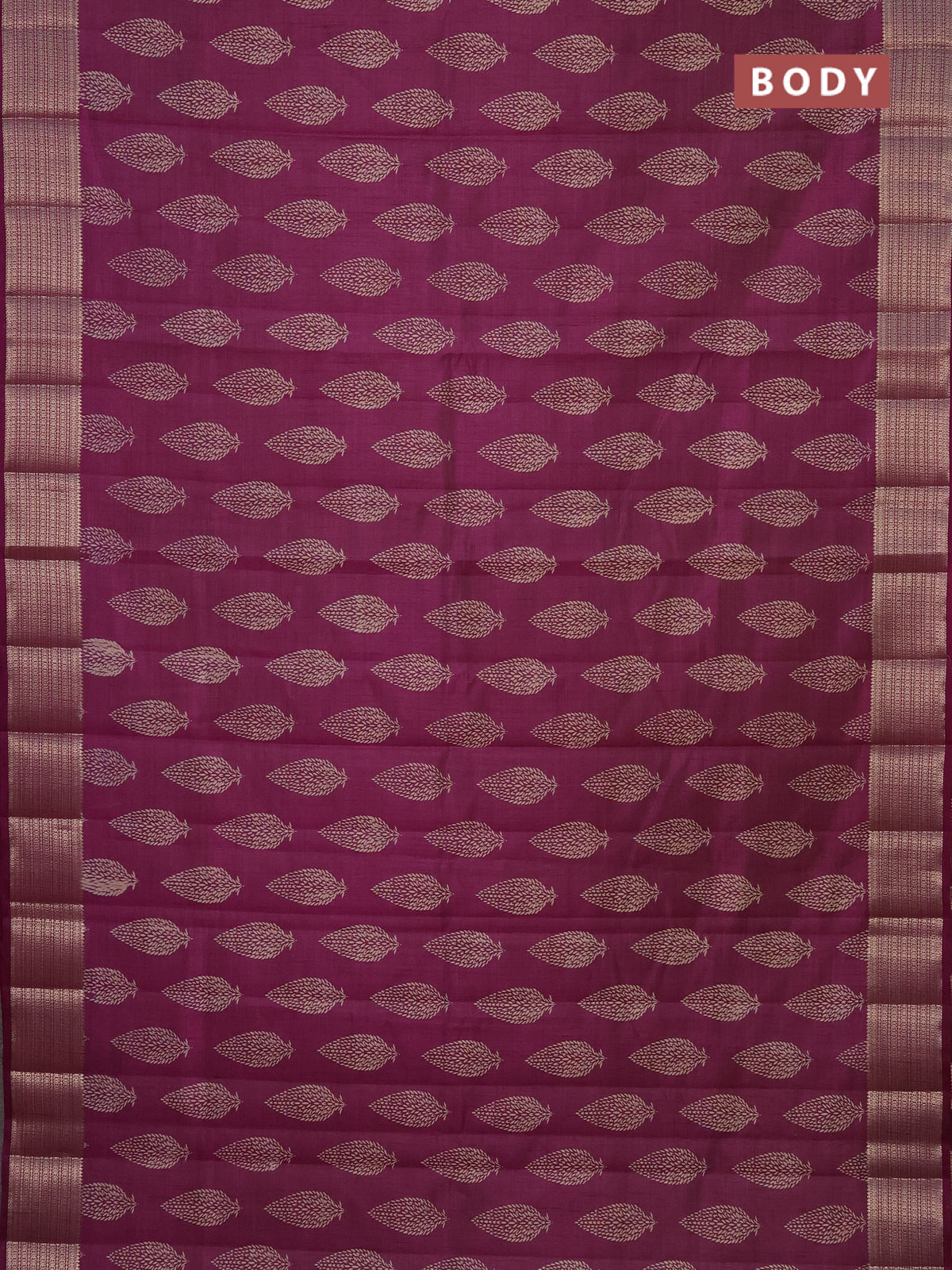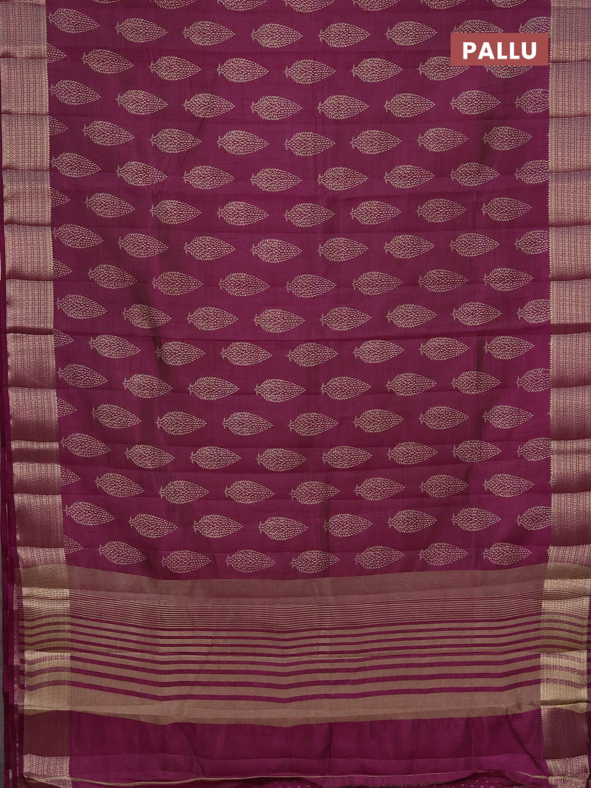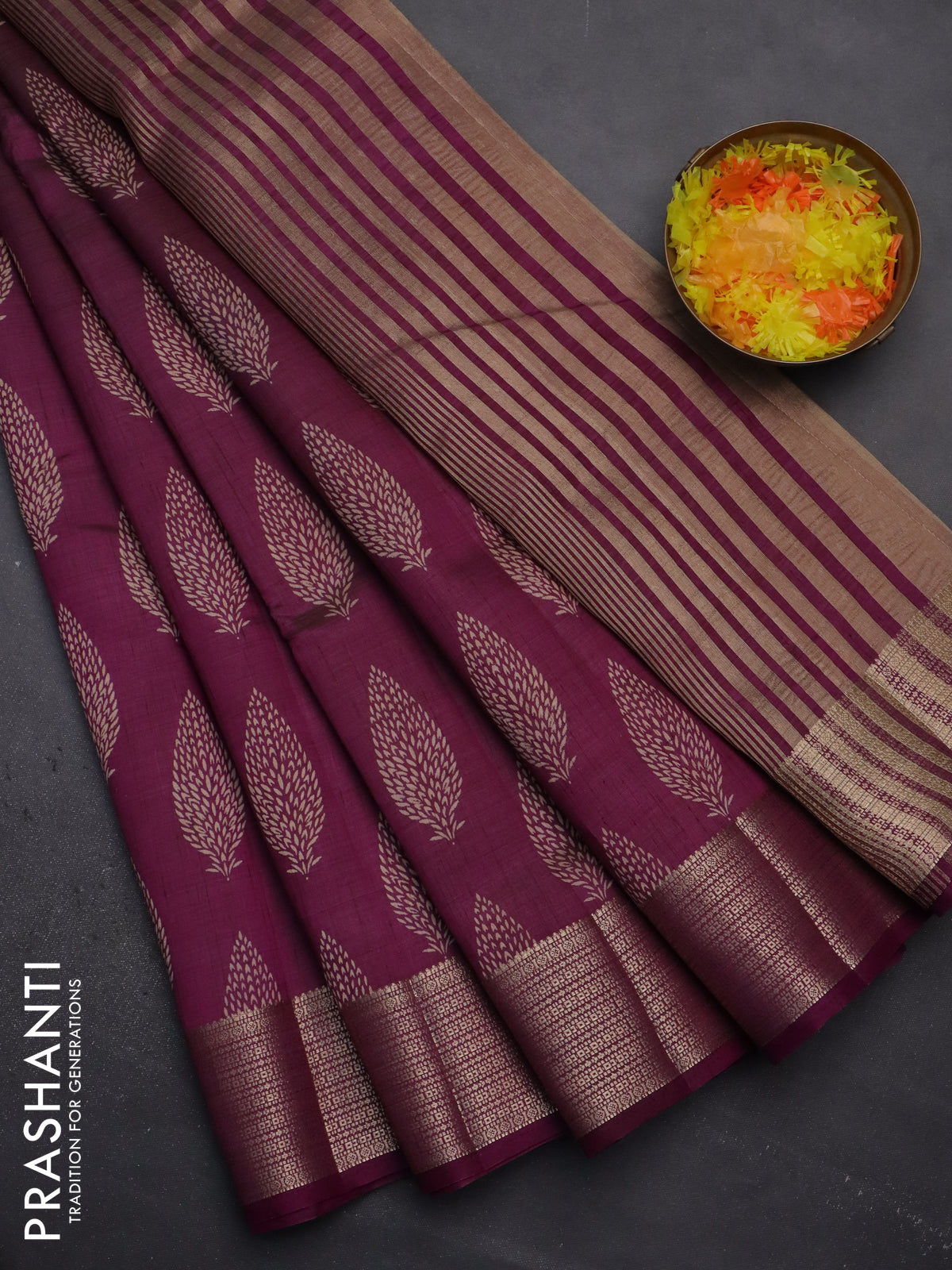 Semi raw silk saree deep purple with butta prints and zari woven border