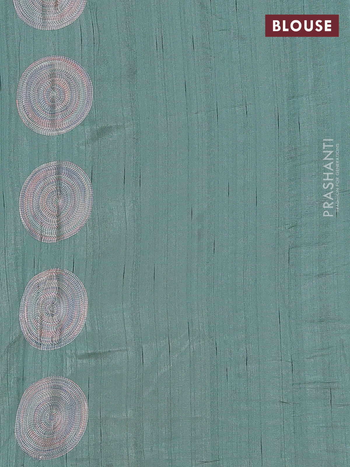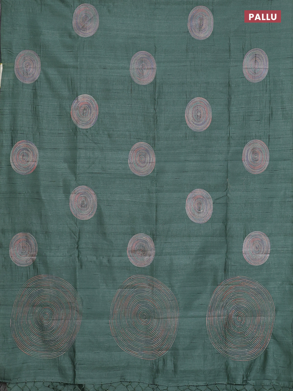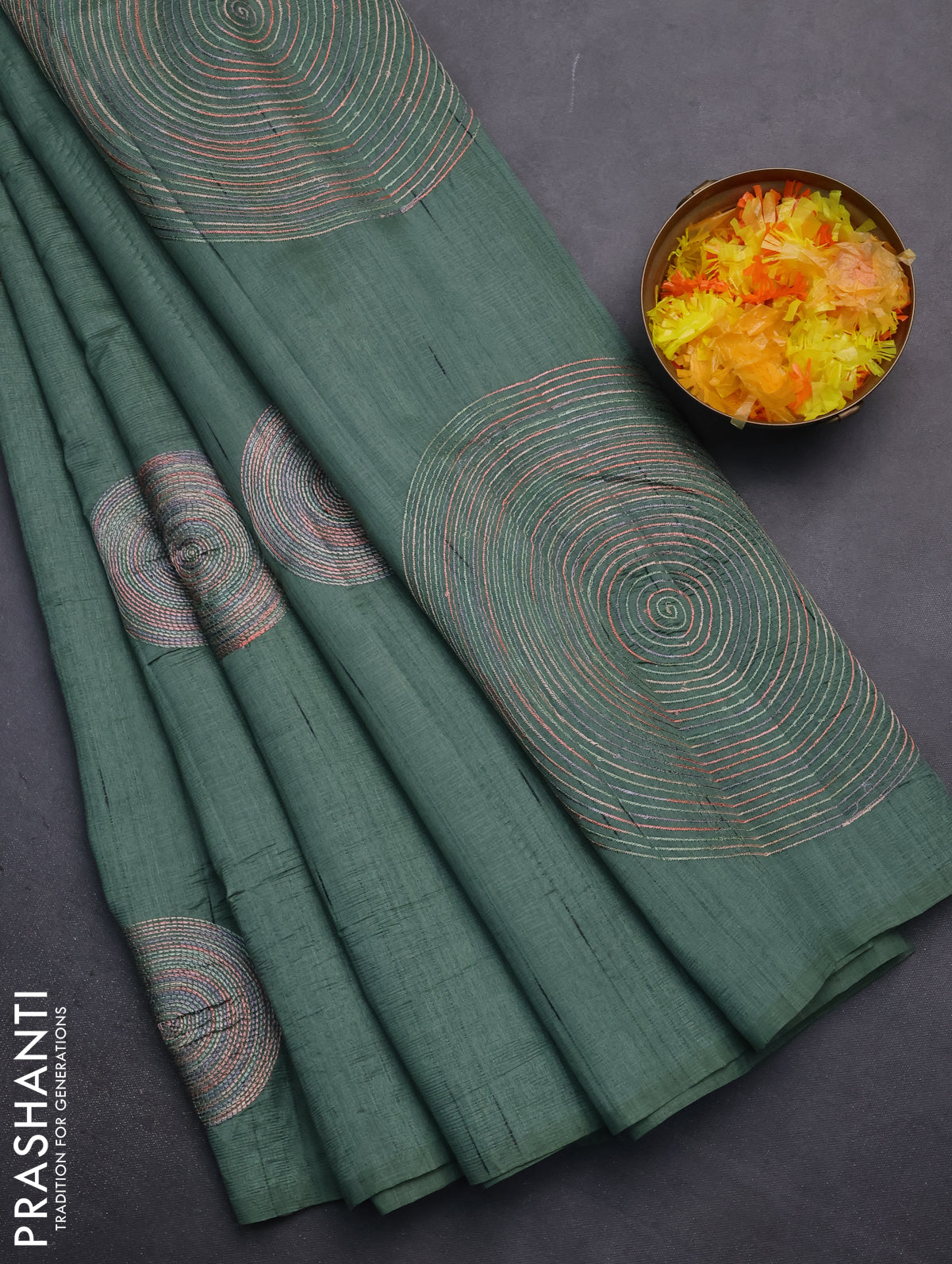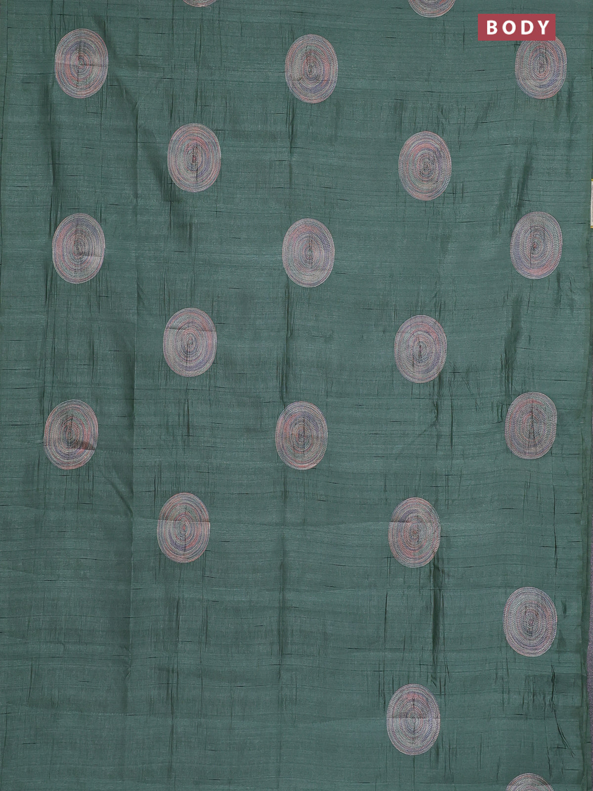Semi raw silk saree green with embroidery work buttas and geometric embroidery butta border