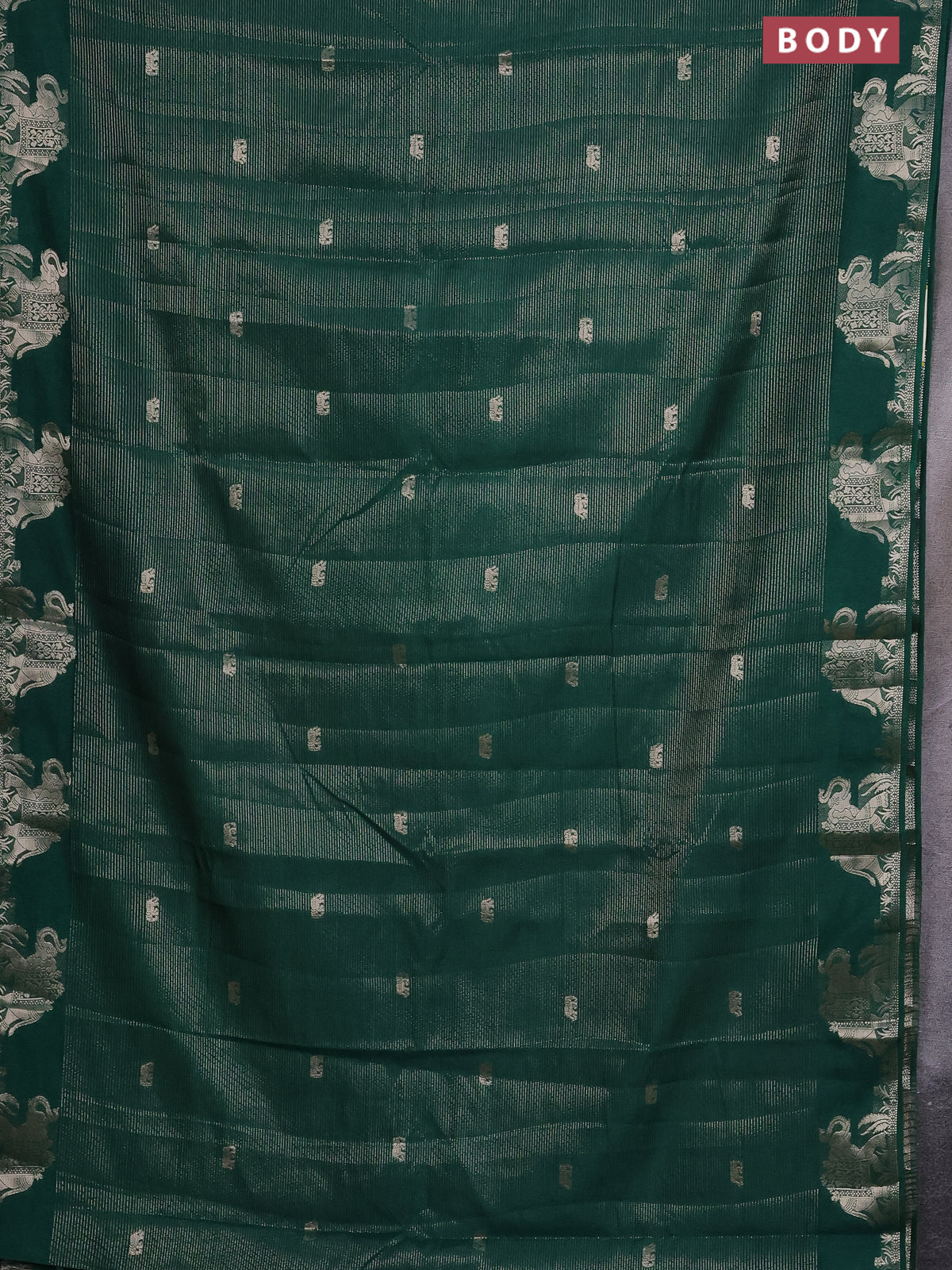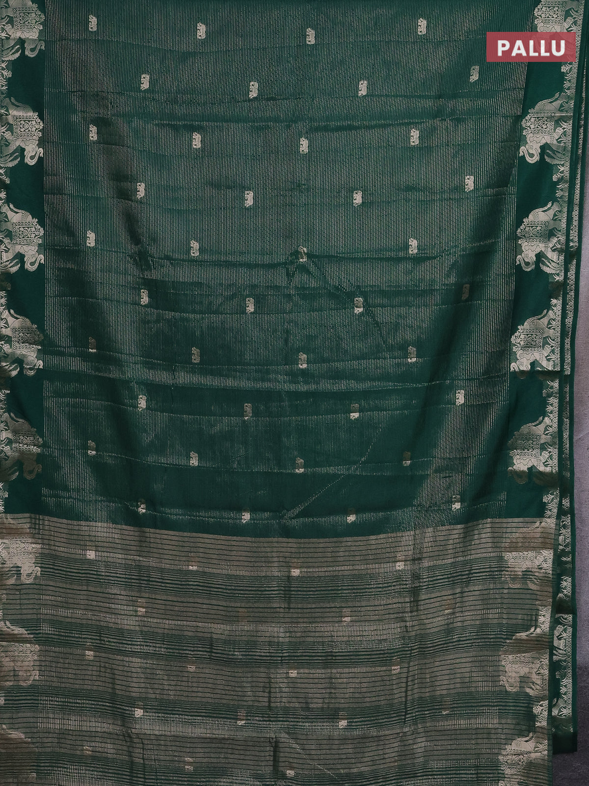 Semi raw silk saree green with zari weaves & elephant buttas and elephant design zari woven border