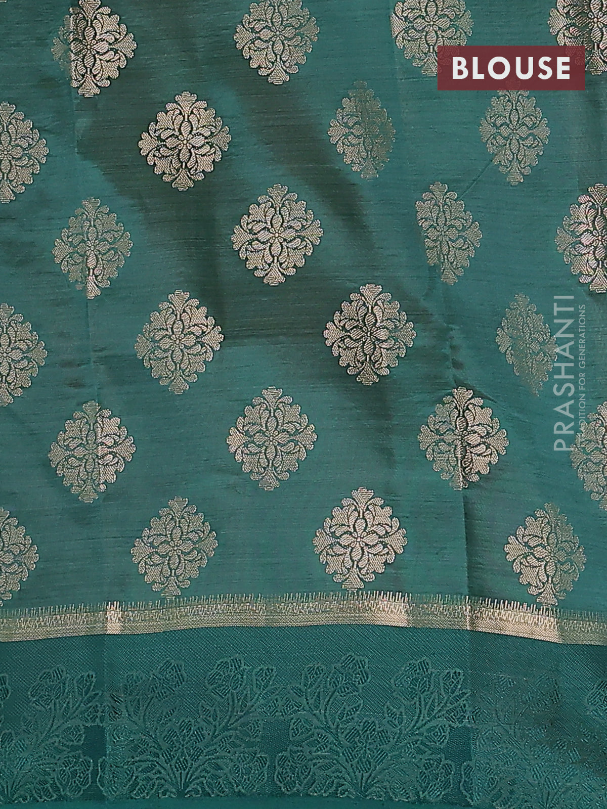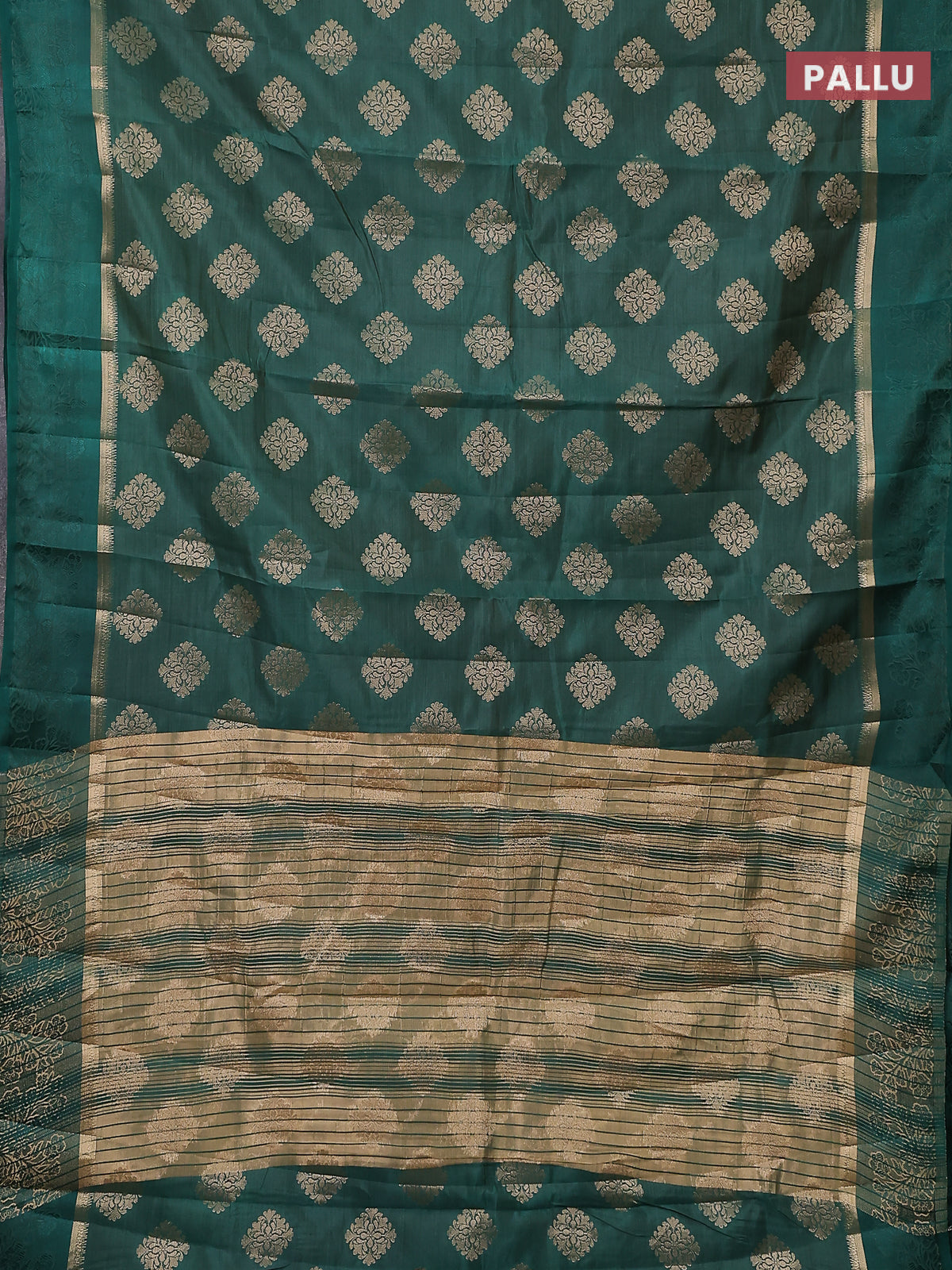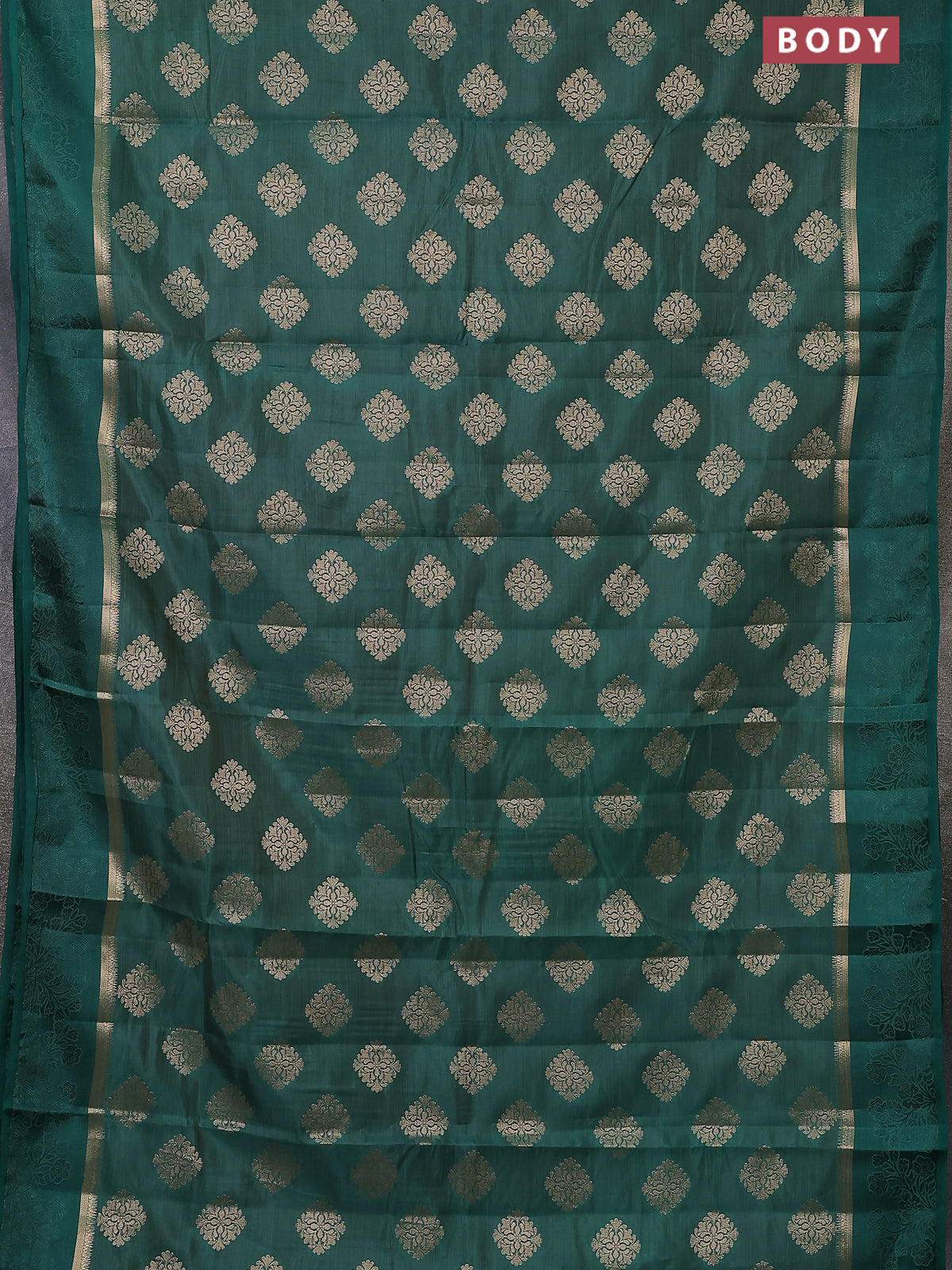 Semi raw silk saree green with zari woven buttas and zari woven simple border