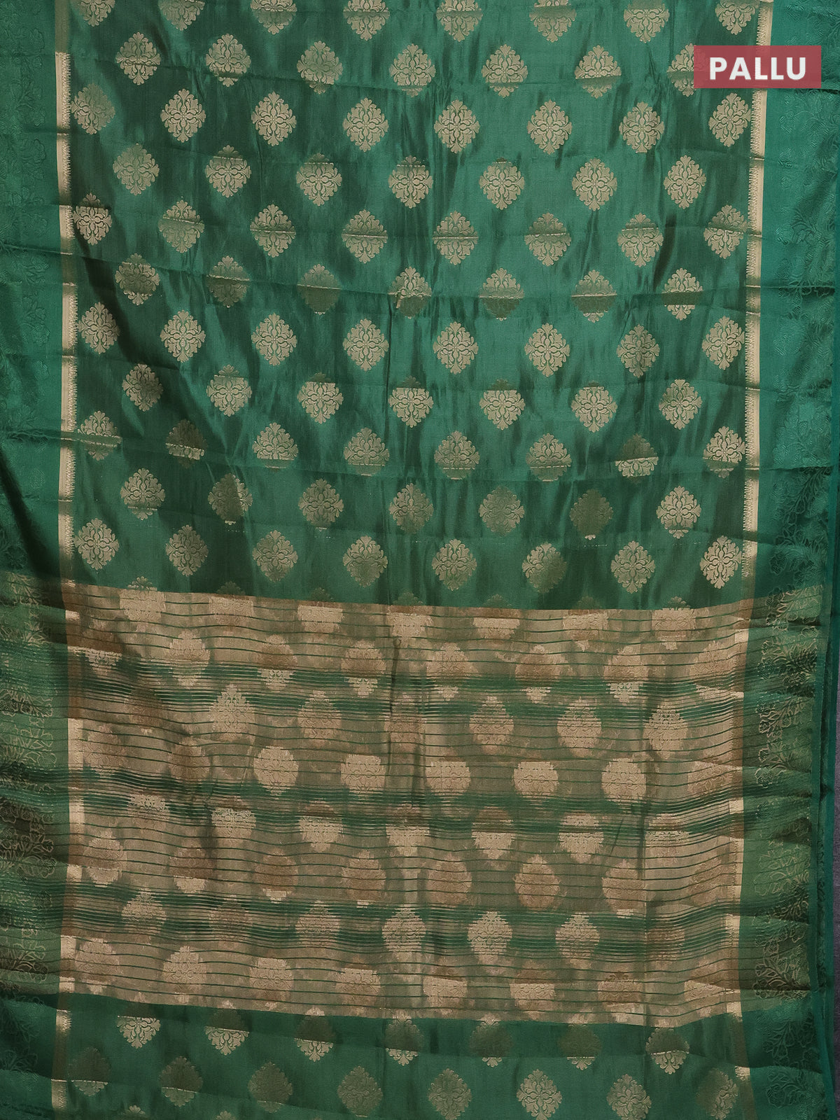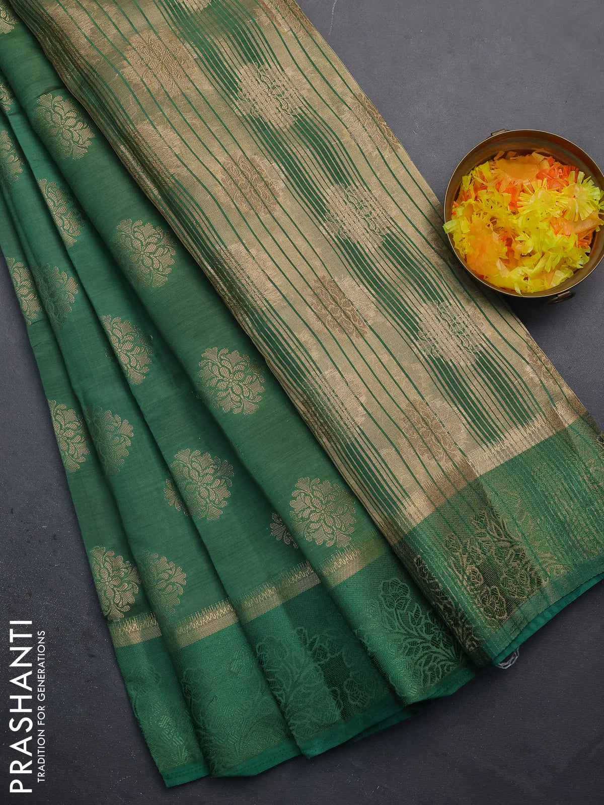 Semi raw silk saree green with zari woven buttas and zari woven simple border