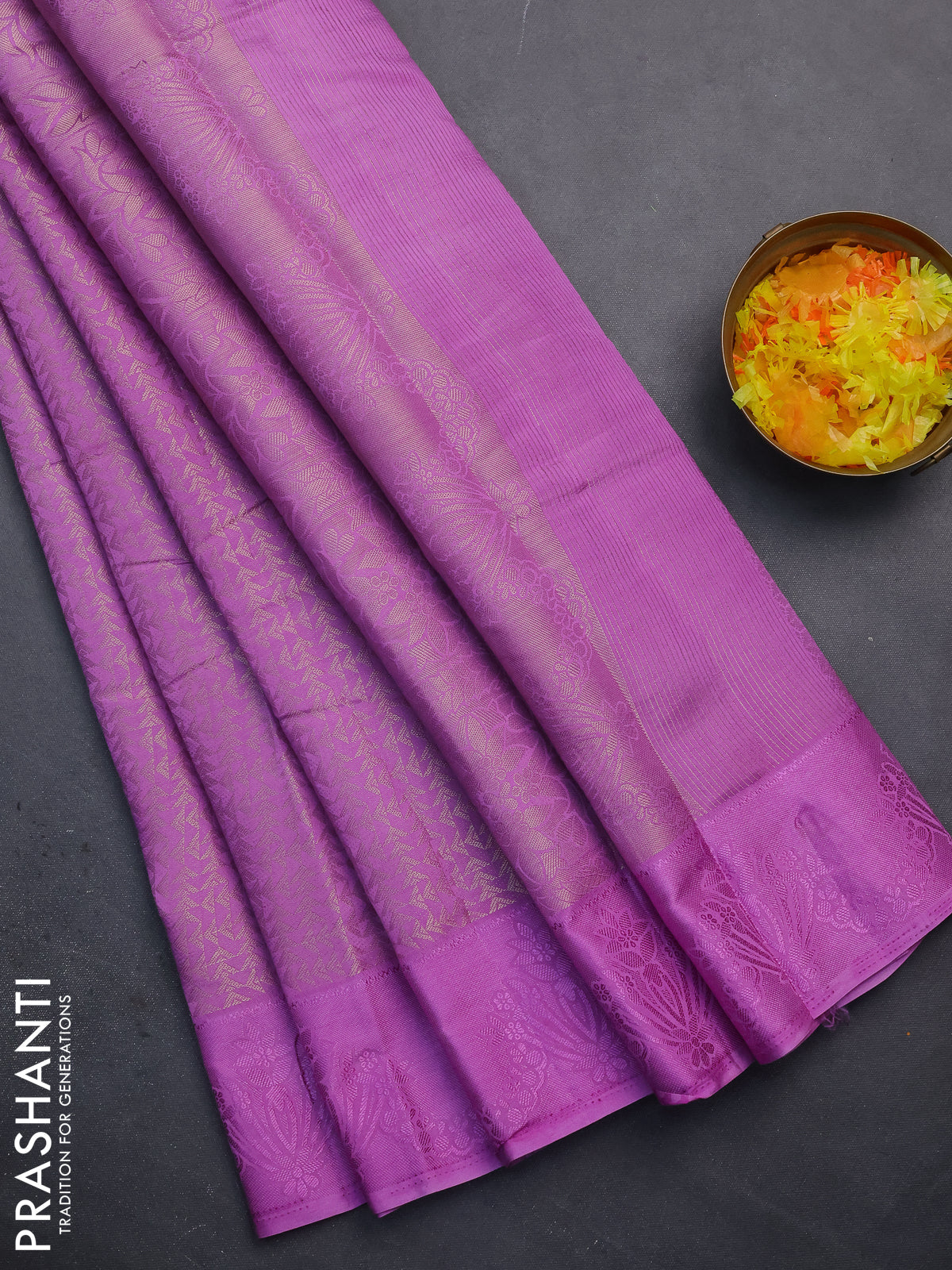 Semi raw silk saree lavender with allover zari weaves and simple border