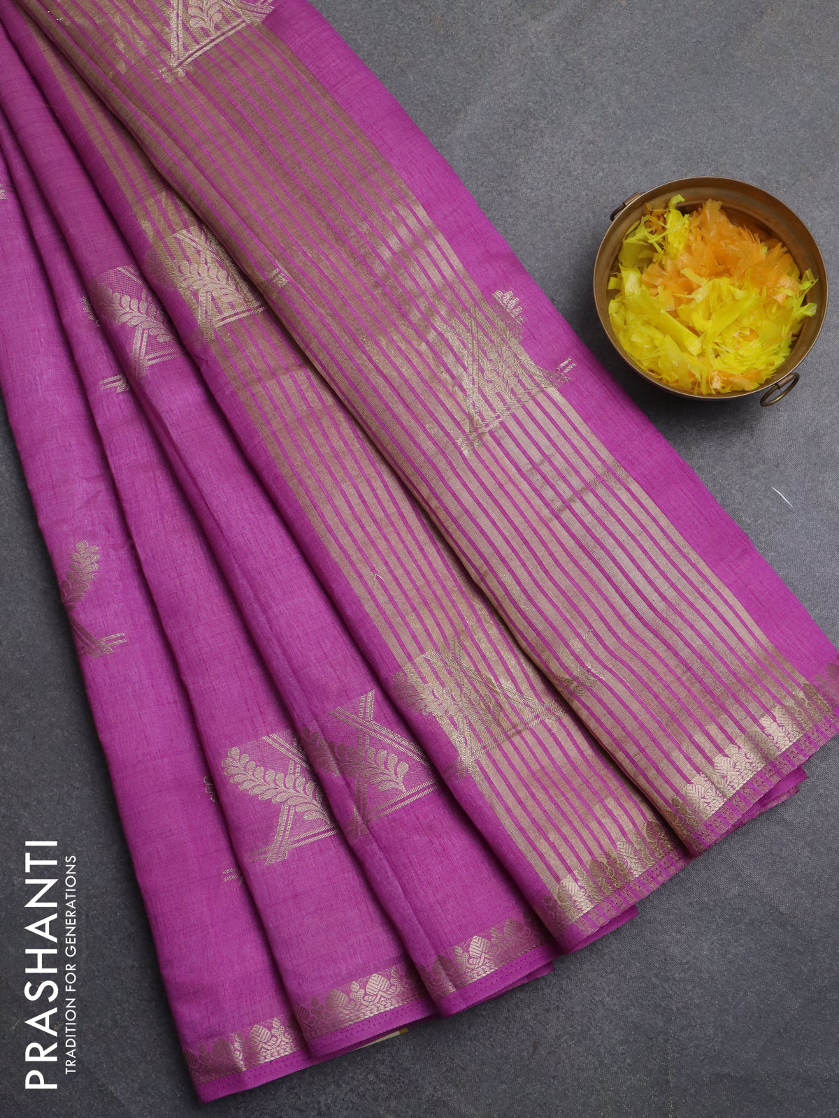 Semi raw silk saree lavender with zari woven buttas and zari woven border