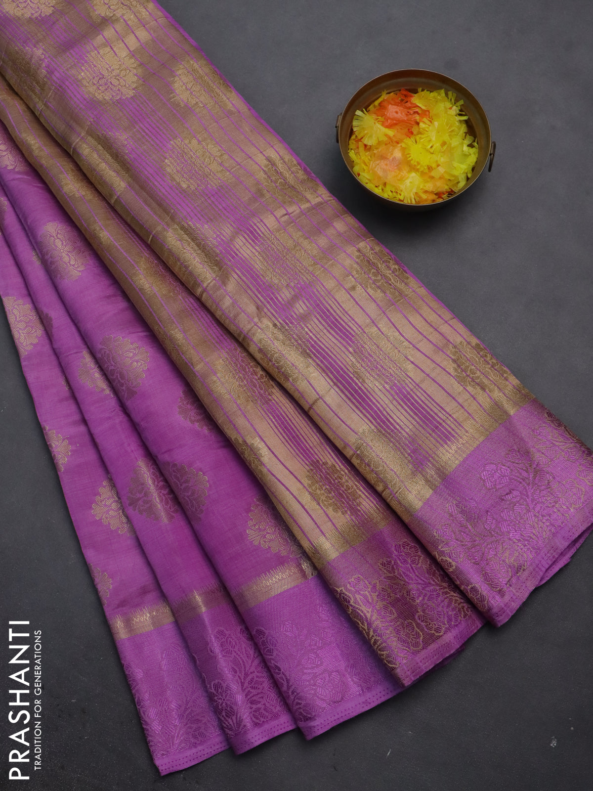 Semi raw silk saree lavender with zari woven buttas and zari woven simple border