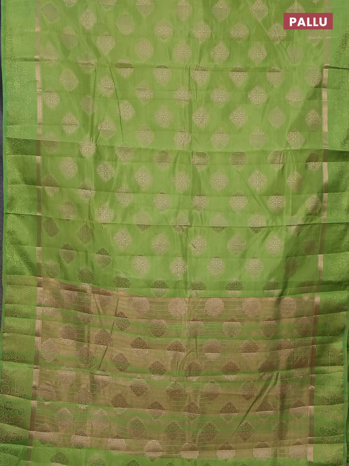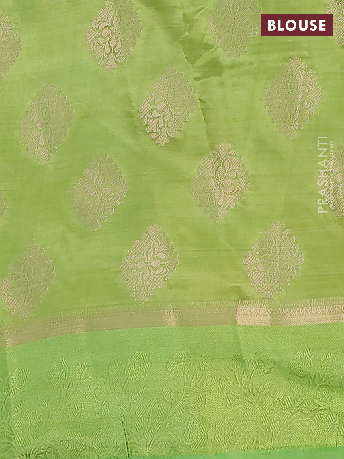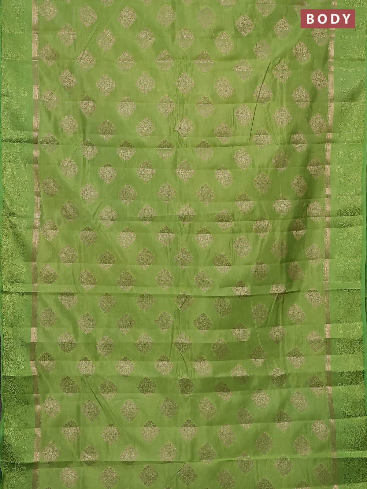 Semi raw silk saree light green with zari woven buttas and zari woven simple border