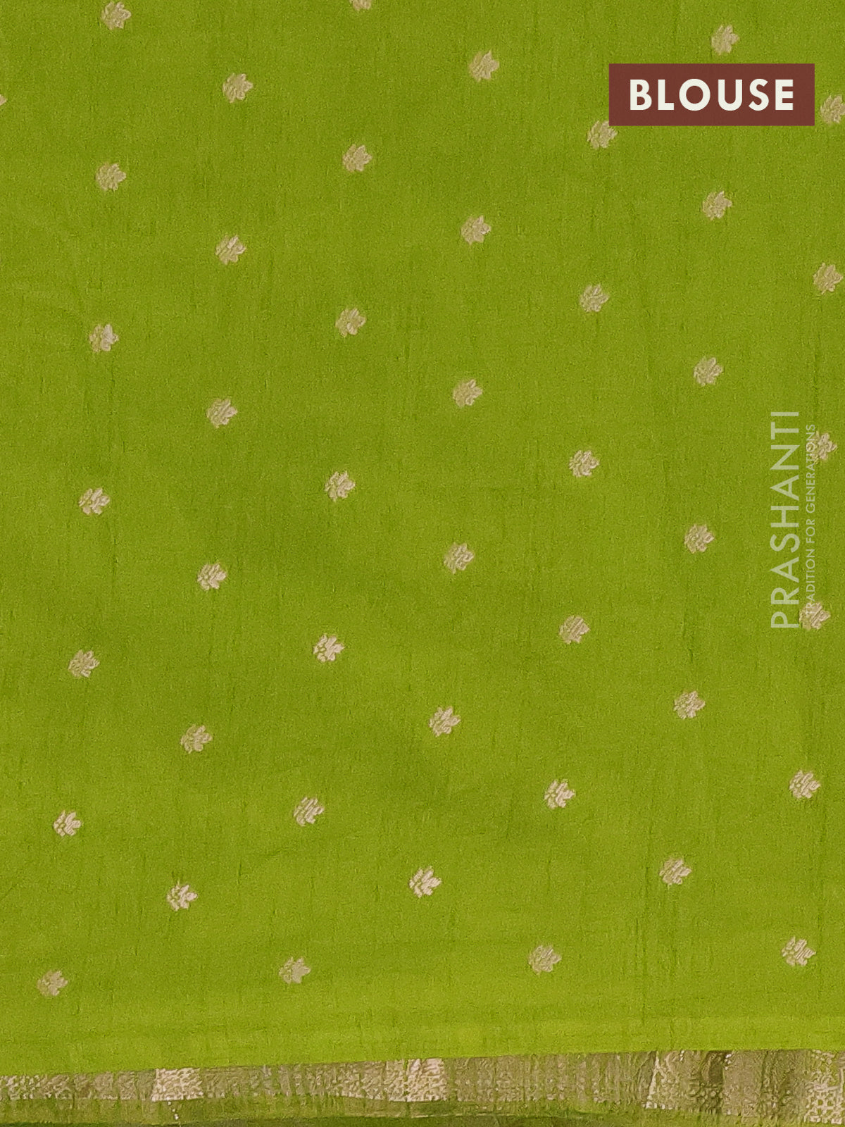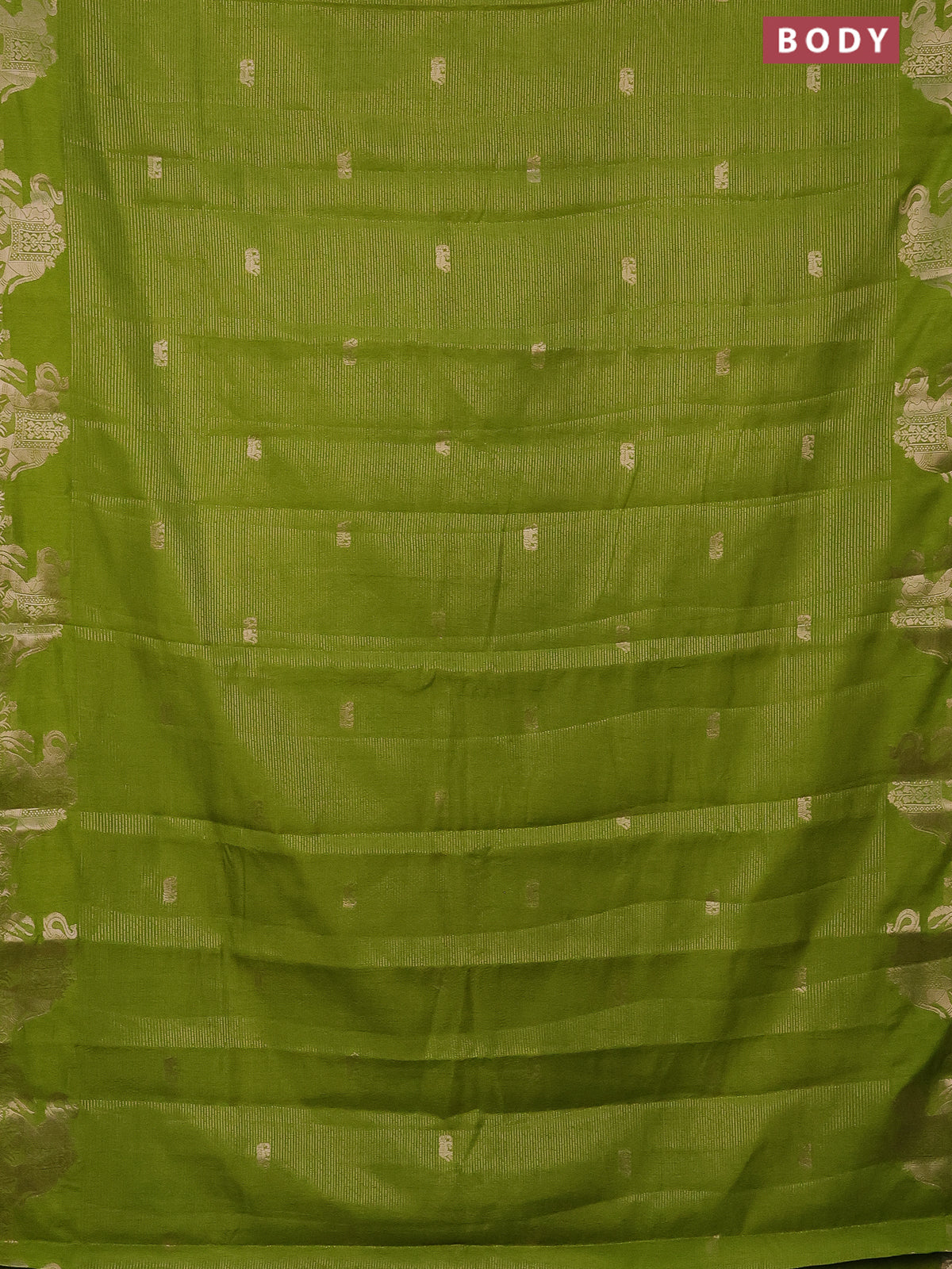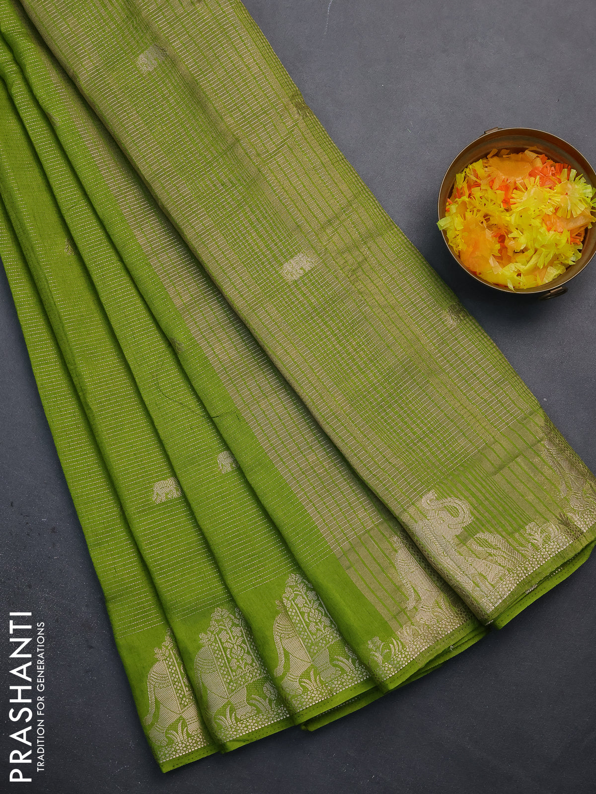 Semi raw silk saree lime green with zari weaves & elephant buttas and elephant design zari woven border