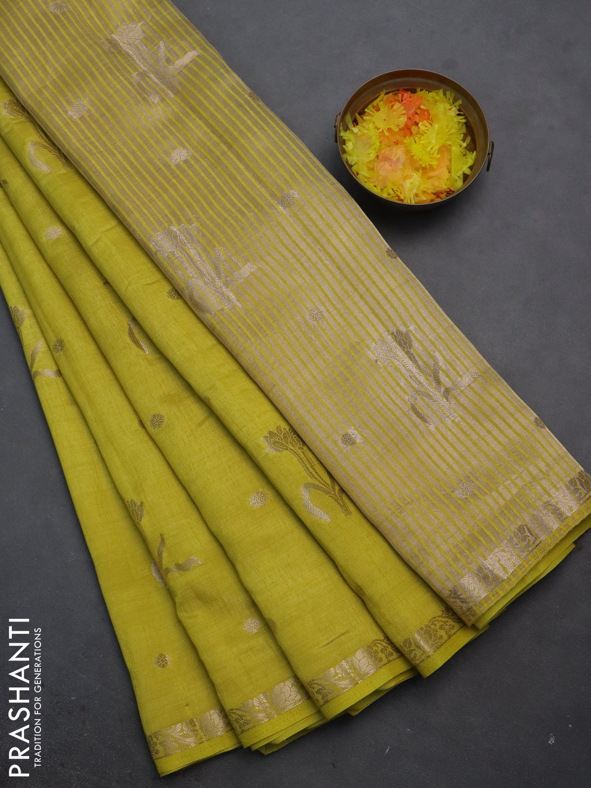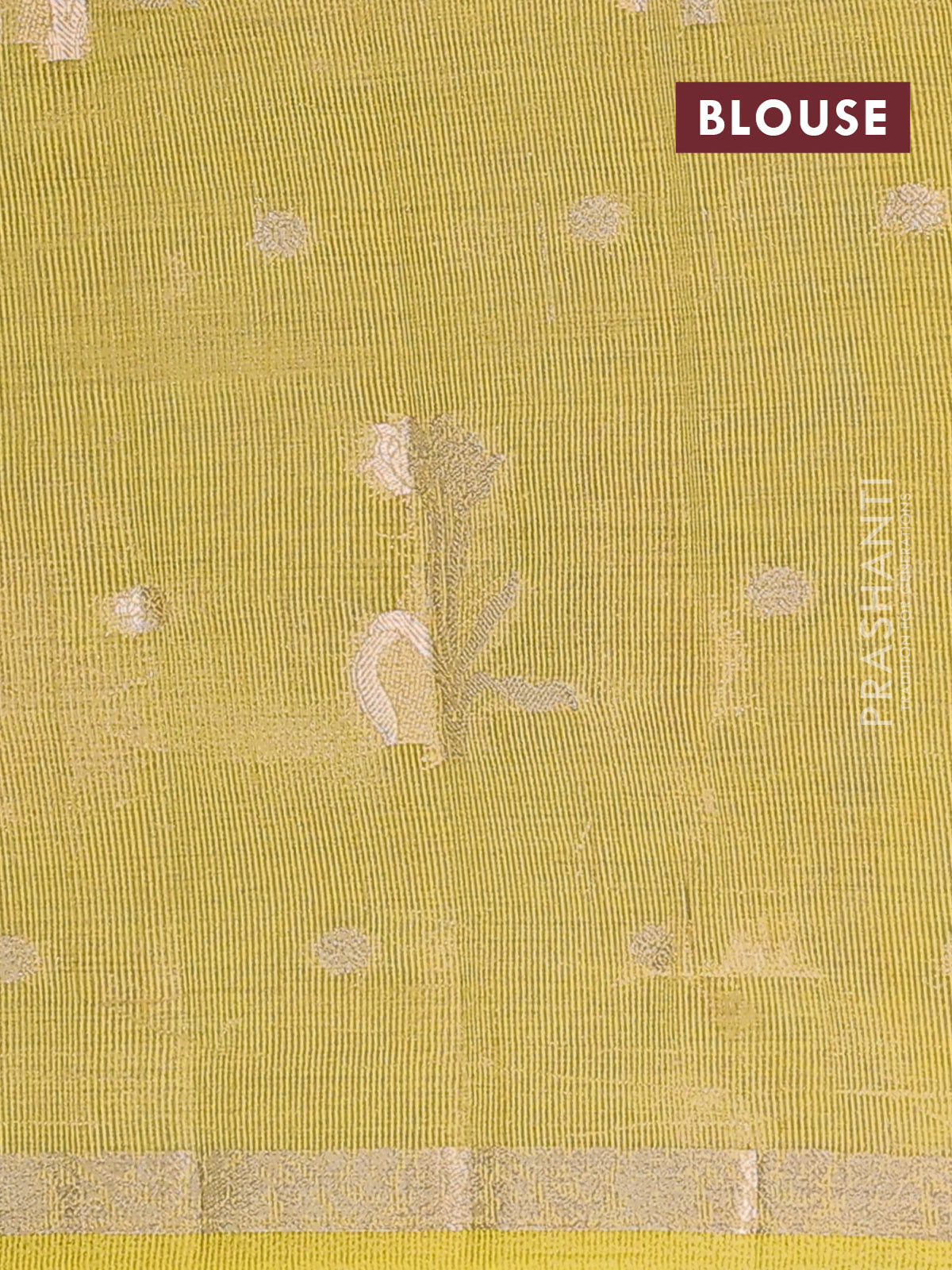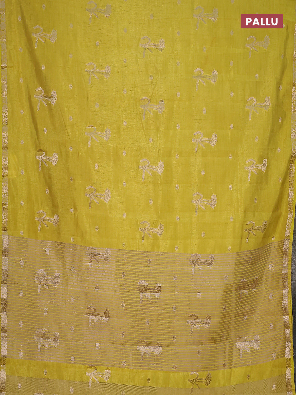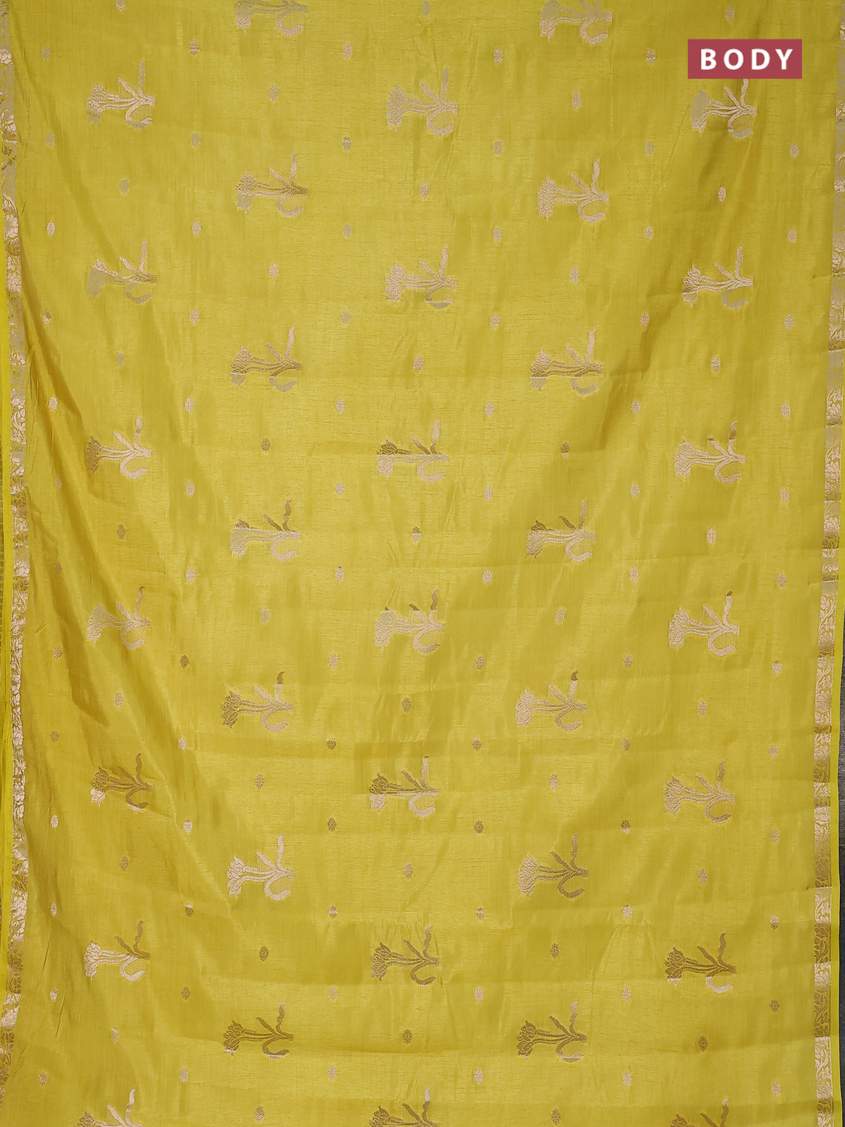 Semi raw silk saree lime yellow with zari woven floral buttas and small zari woven border