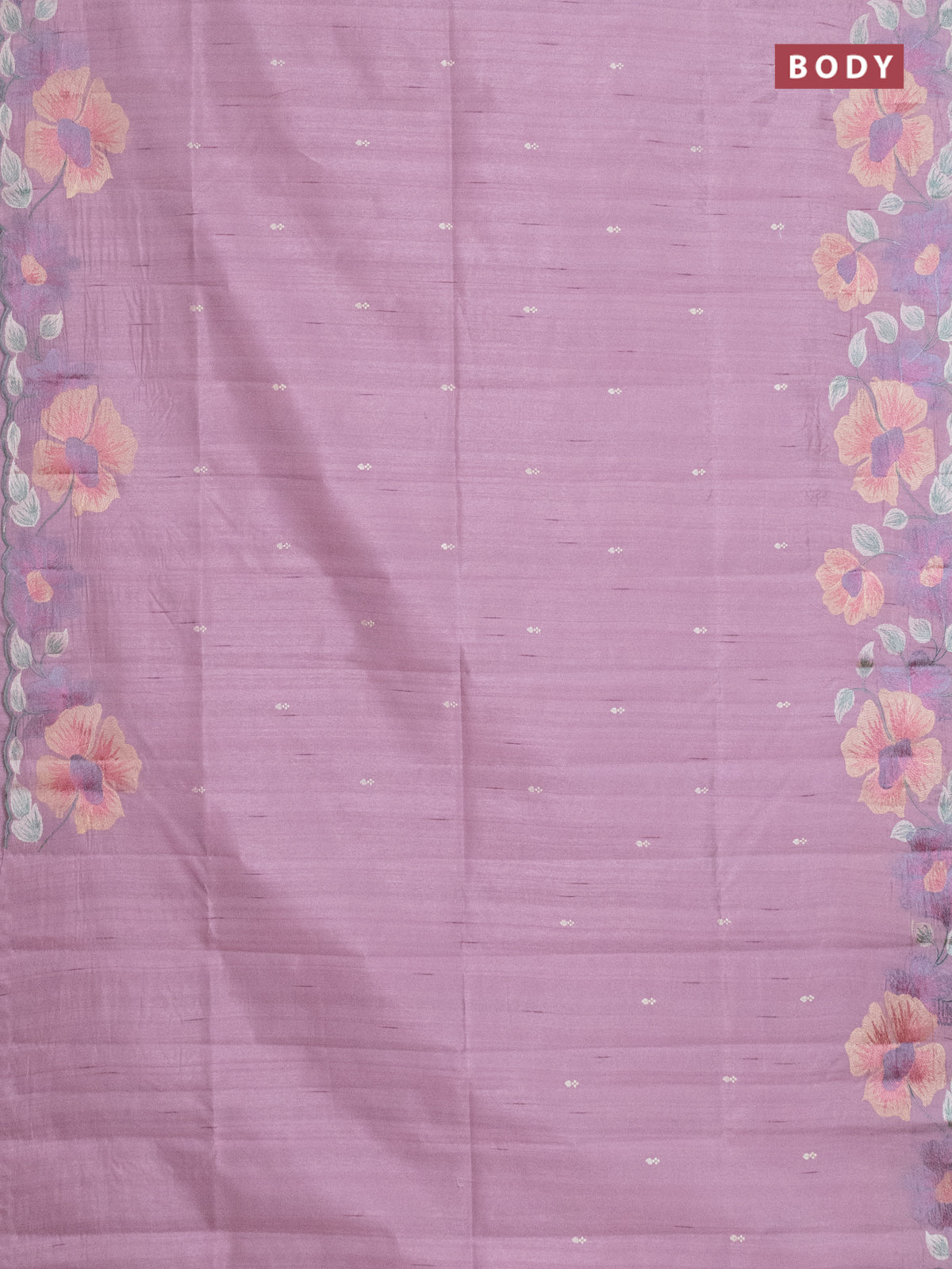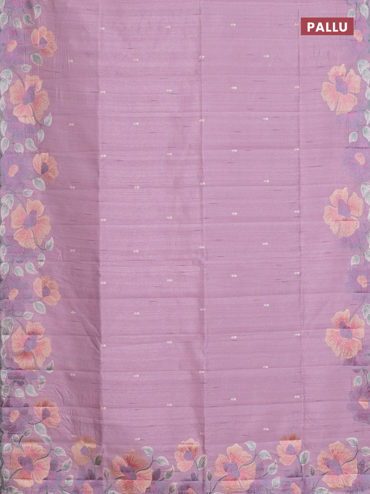 Semi raw silk saree lotus pink with embroidery work buttas and floral embroidery border